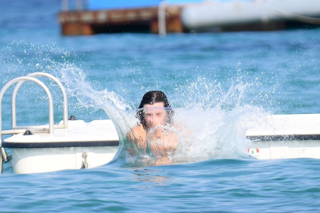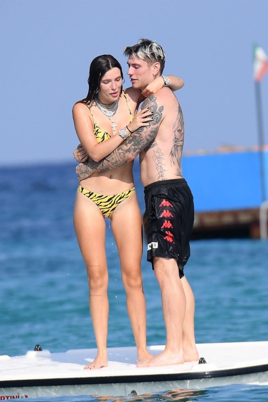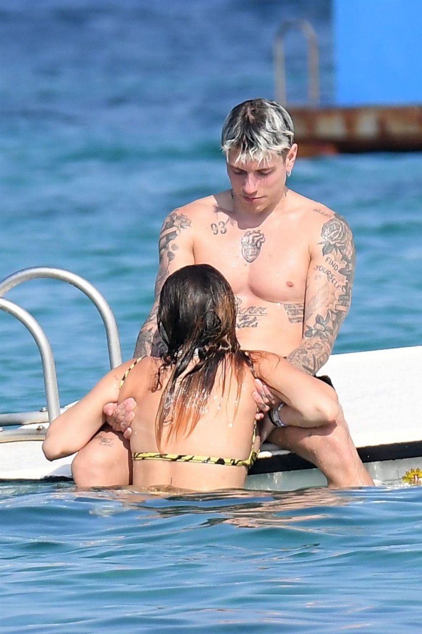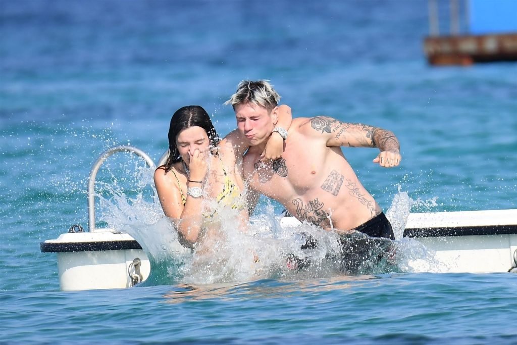 Bella Thorne y Benjamin Mascolo se dan un chapuzón juntos mientras continúan sus vacaciones románticas en Cerdeña, Italia, 24/08/2019. La pareja mostró una gran demostración pública de afecto y se les pudo ver zambulléndose juntos y besándose en el agua.