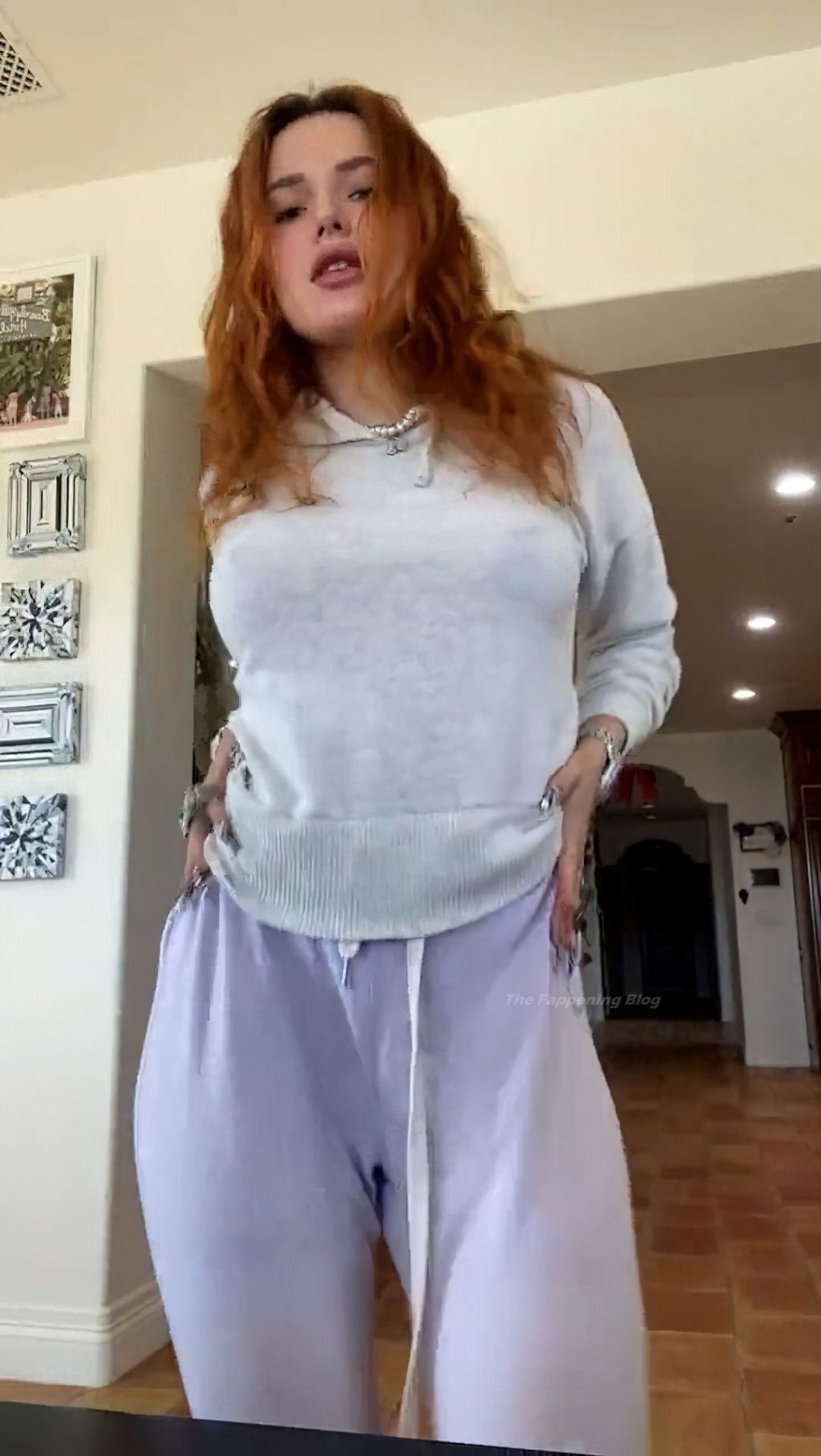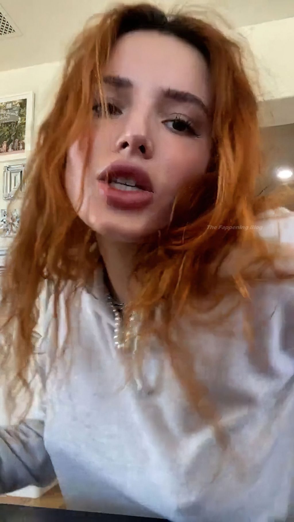 Sin sujetador La estrella de The Fappening Bella Thorne muestra sus pechos con pezones perforados y mueve su trasero en el video en vivo de Instagram, 03/04/2021.