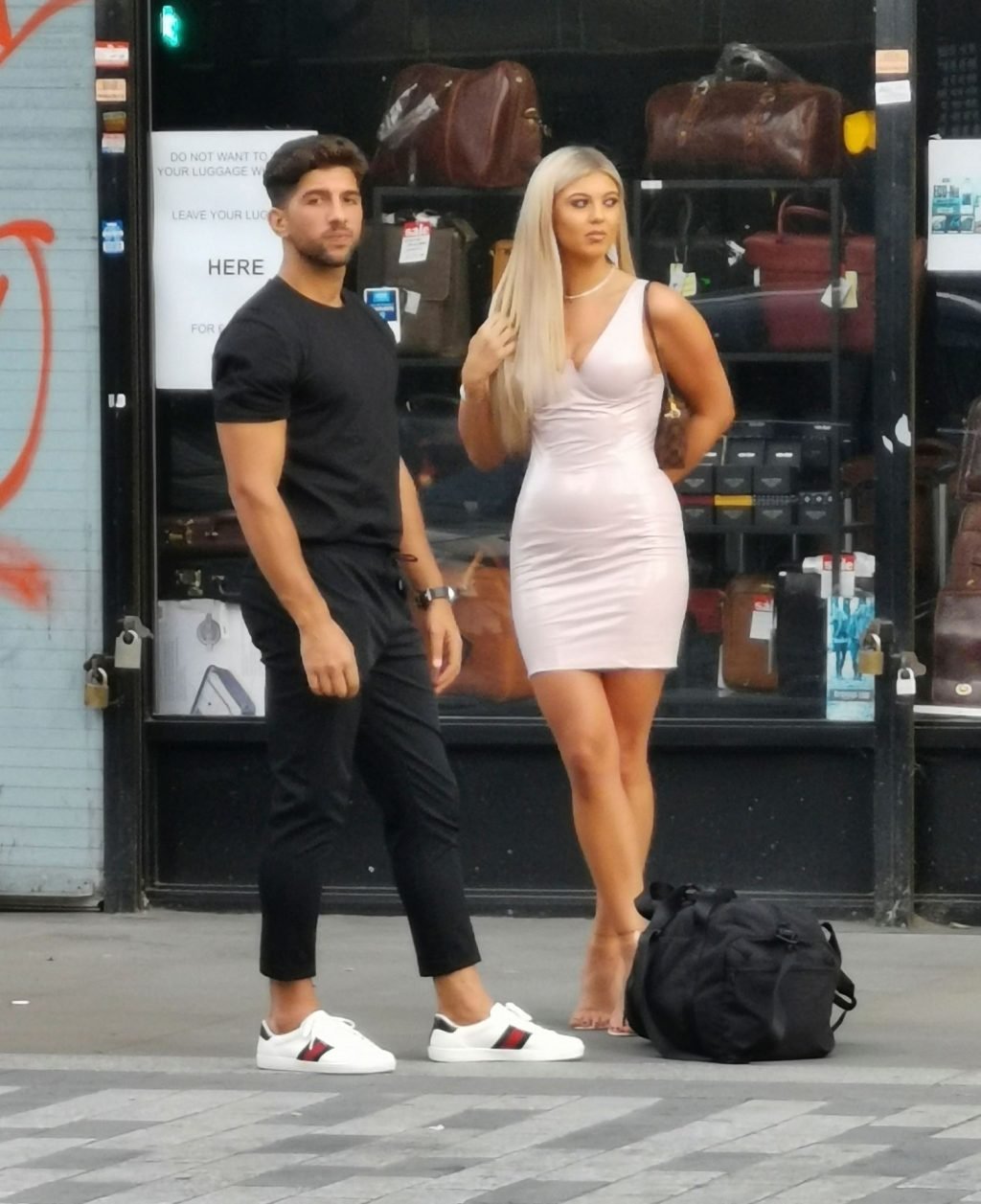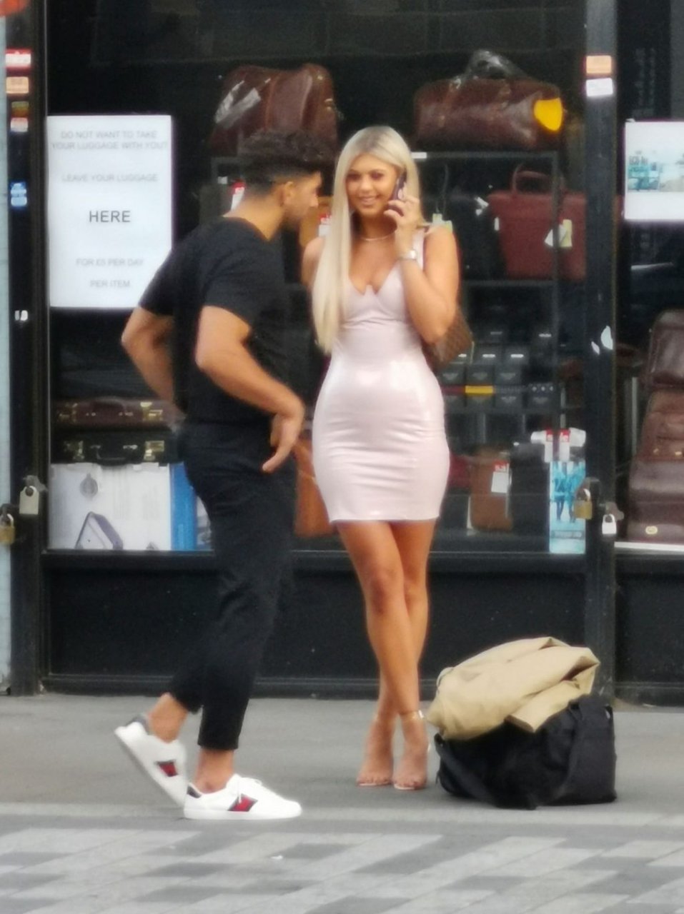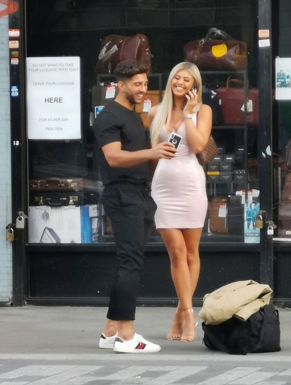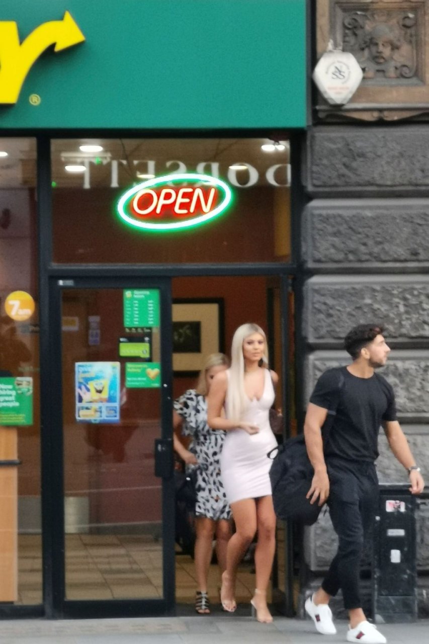 Belle tuvo que pedir ayuda para coser la parte trasera de su vestido y entró en un restaurante para arreglarlo, pero luego salió sonriendo acompañada por su compañero de Love Island, Marvin Brooks.