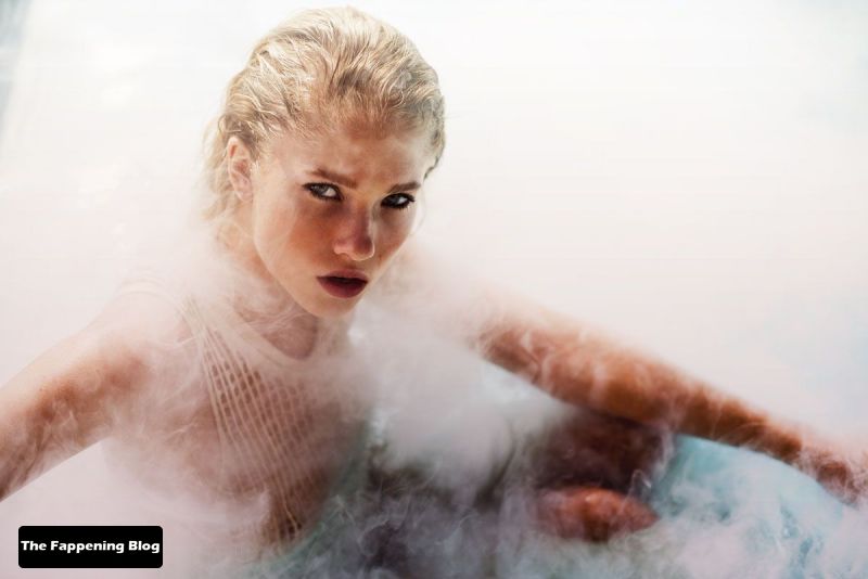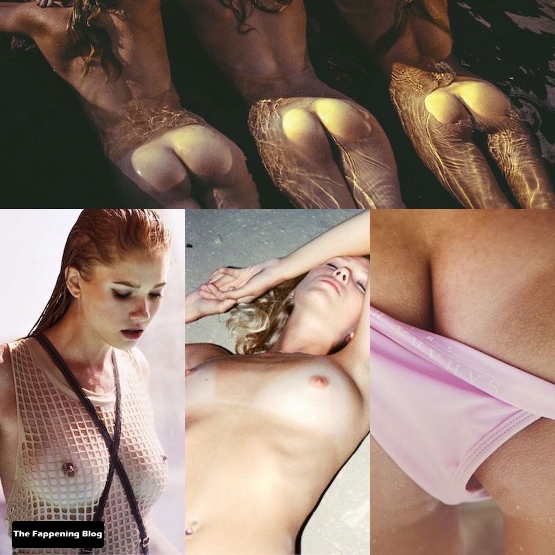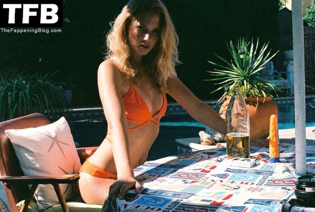 Model Berit Birkeland muestra sus pechos desnudos y posa en bikinis en una sesión de fotos promocional de Matthew Comer para Drench Swim (2016).