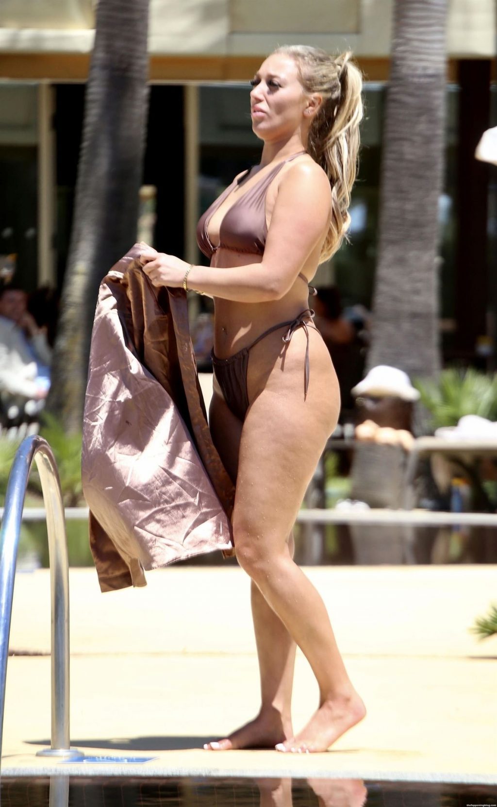 Bethan lució espectacular con su bikini marrón junto a la piscina mientras disfrutaba del calor sofocante durante sus vacaciones en Portugal (mayo de 2021).