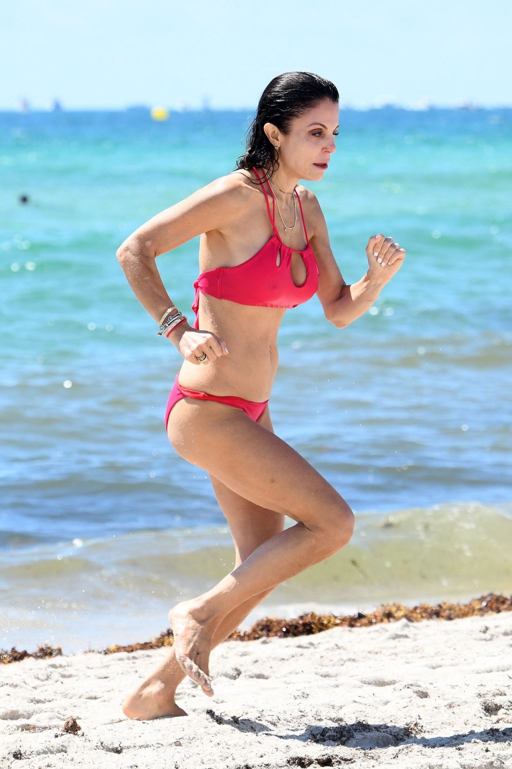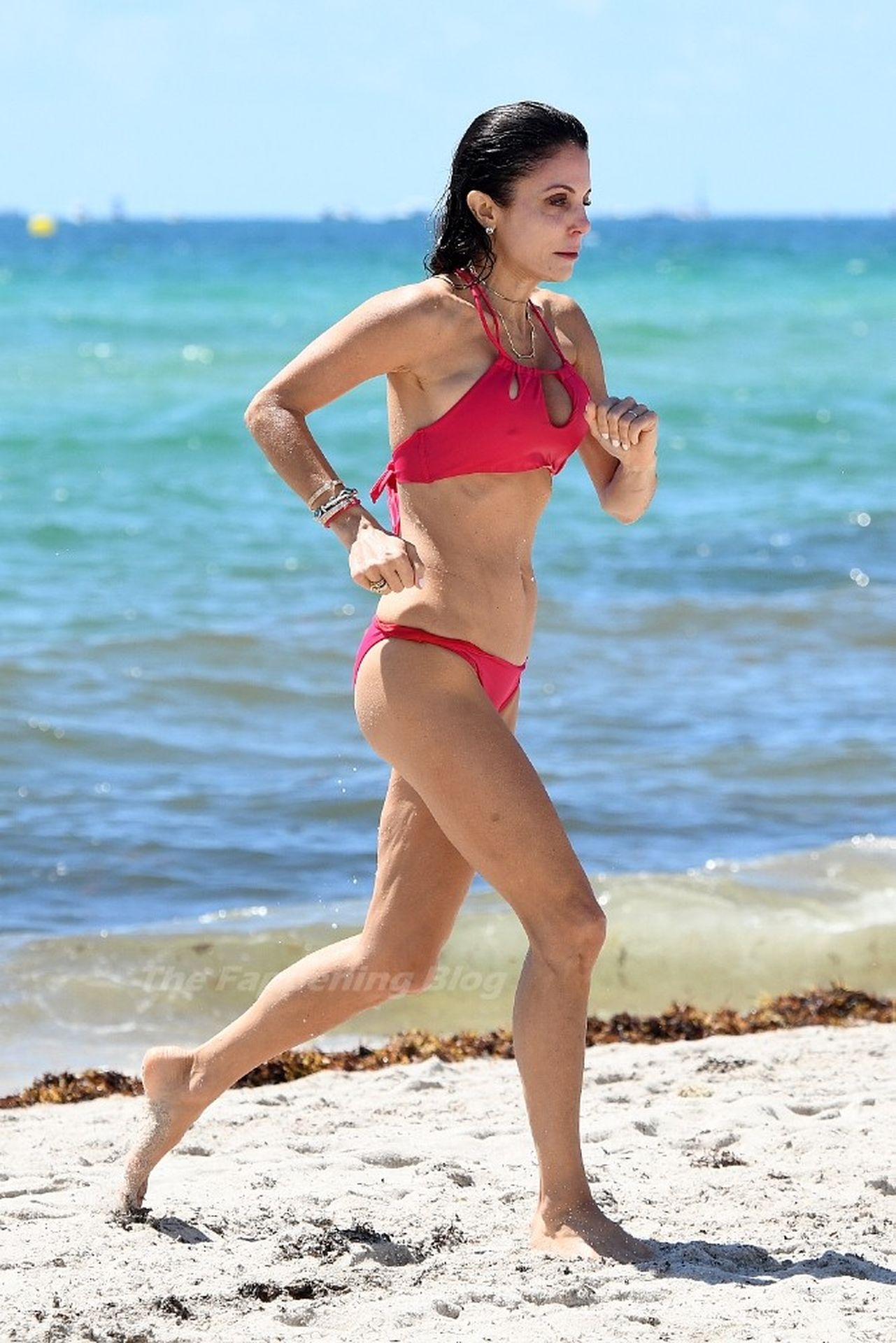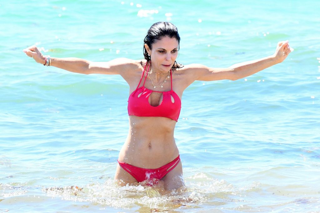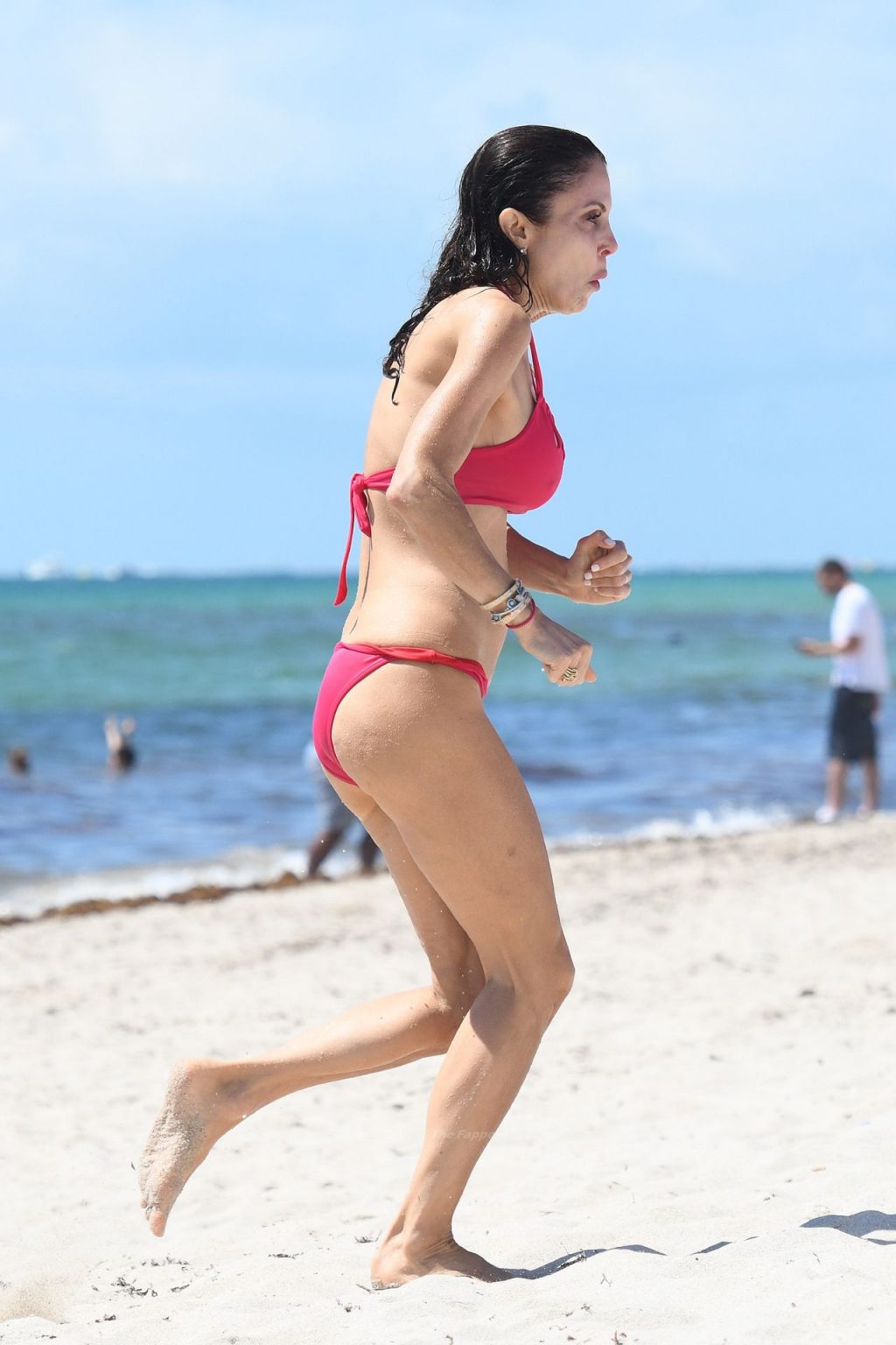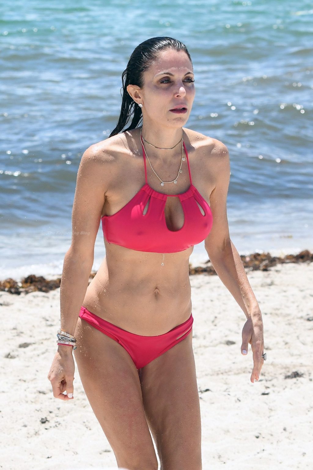 Empresaria, escritora y estrella de reality TV Bethenny Frankel lleva un bikini rosa intenso y su enorme anillo de compromiso mientras disfruta de la playa en Miami, 29/05/2021.