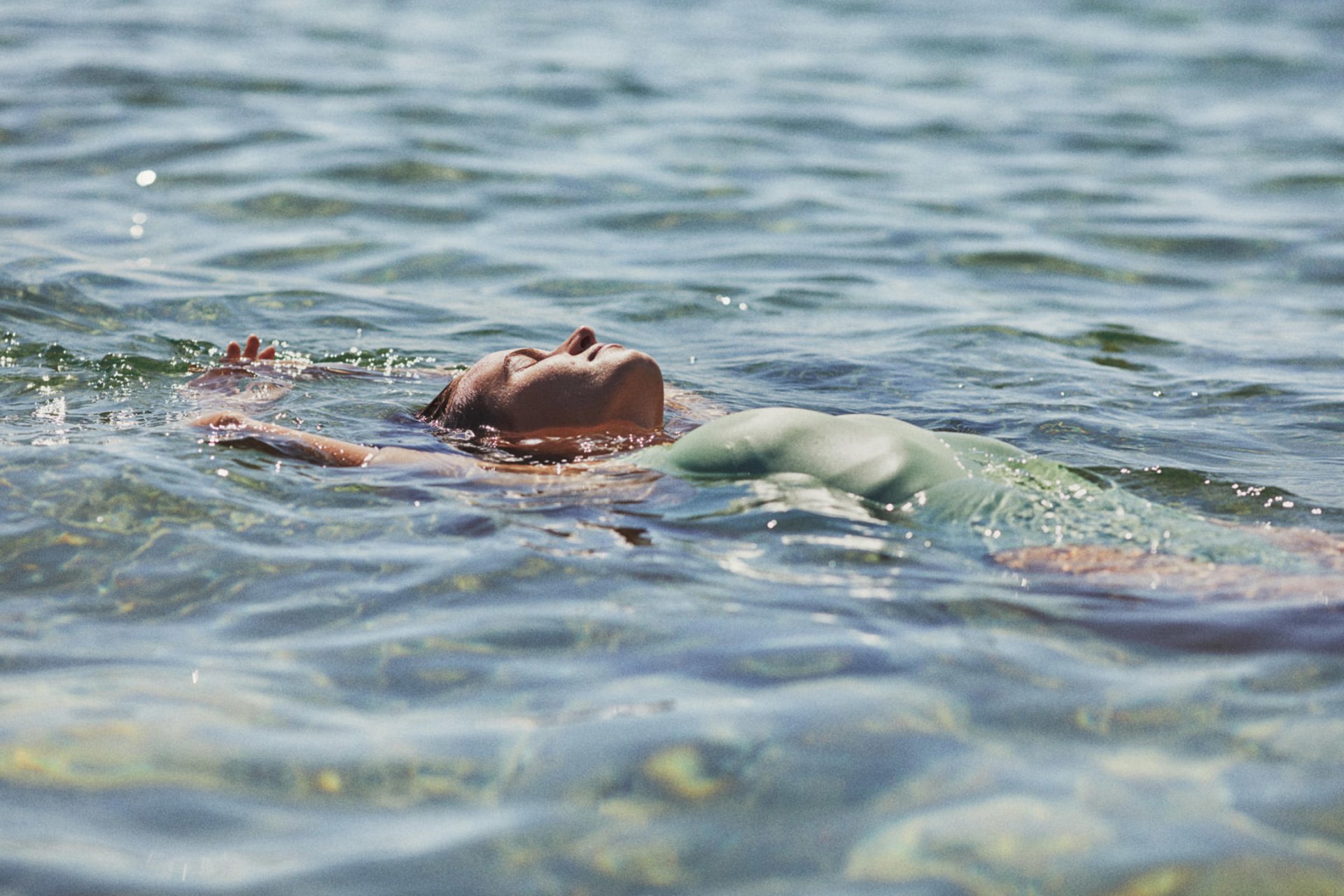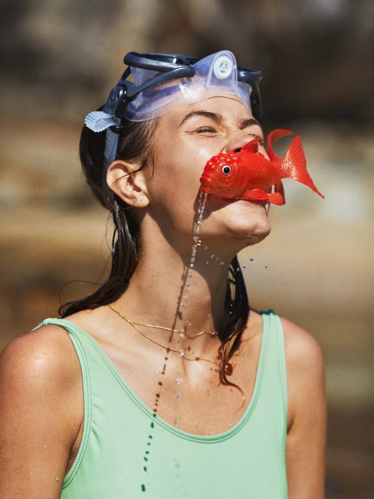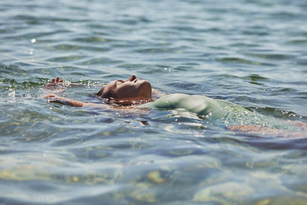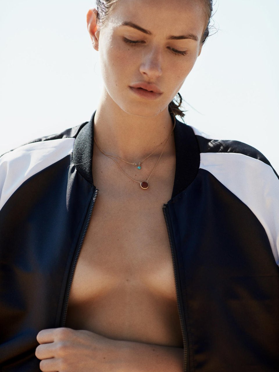 La chica delgada posó desnuda de pecho y en trajes de baño para una sesión de fotos caliente. Mostró sus pequeños pechos, piernas delgadas y bronceadas, y trasero.