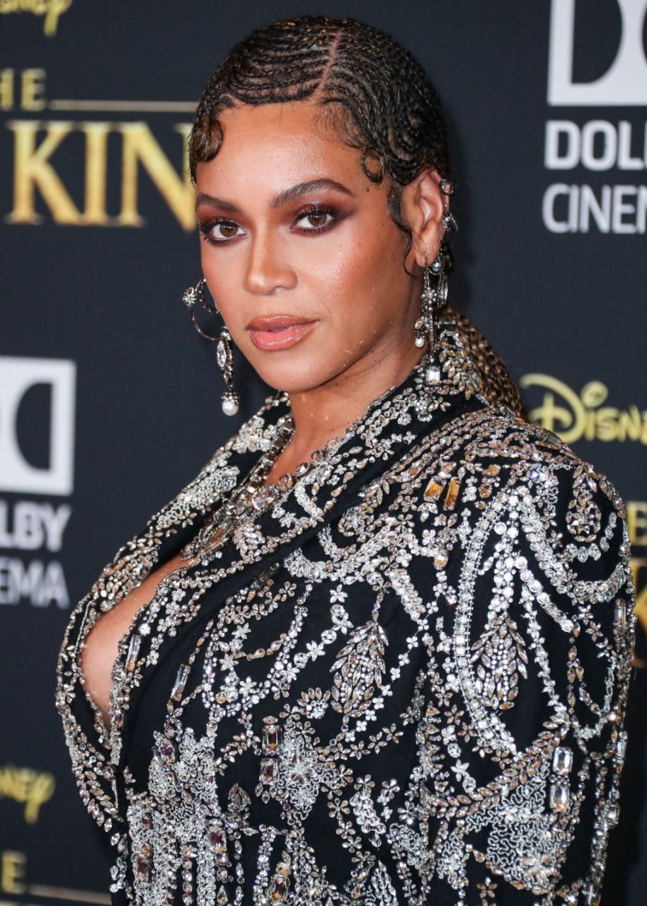 La cantante Beyonce Knowles Carter, vestida con un conjunto de Alexander McQueen y joyas de Lorraine Schwartz, llega al estreno mundial de “El Rey León” de Disney, celebrado en el Dolby Theatre en Hollywood, Los Ángeles, 07/09/2019.