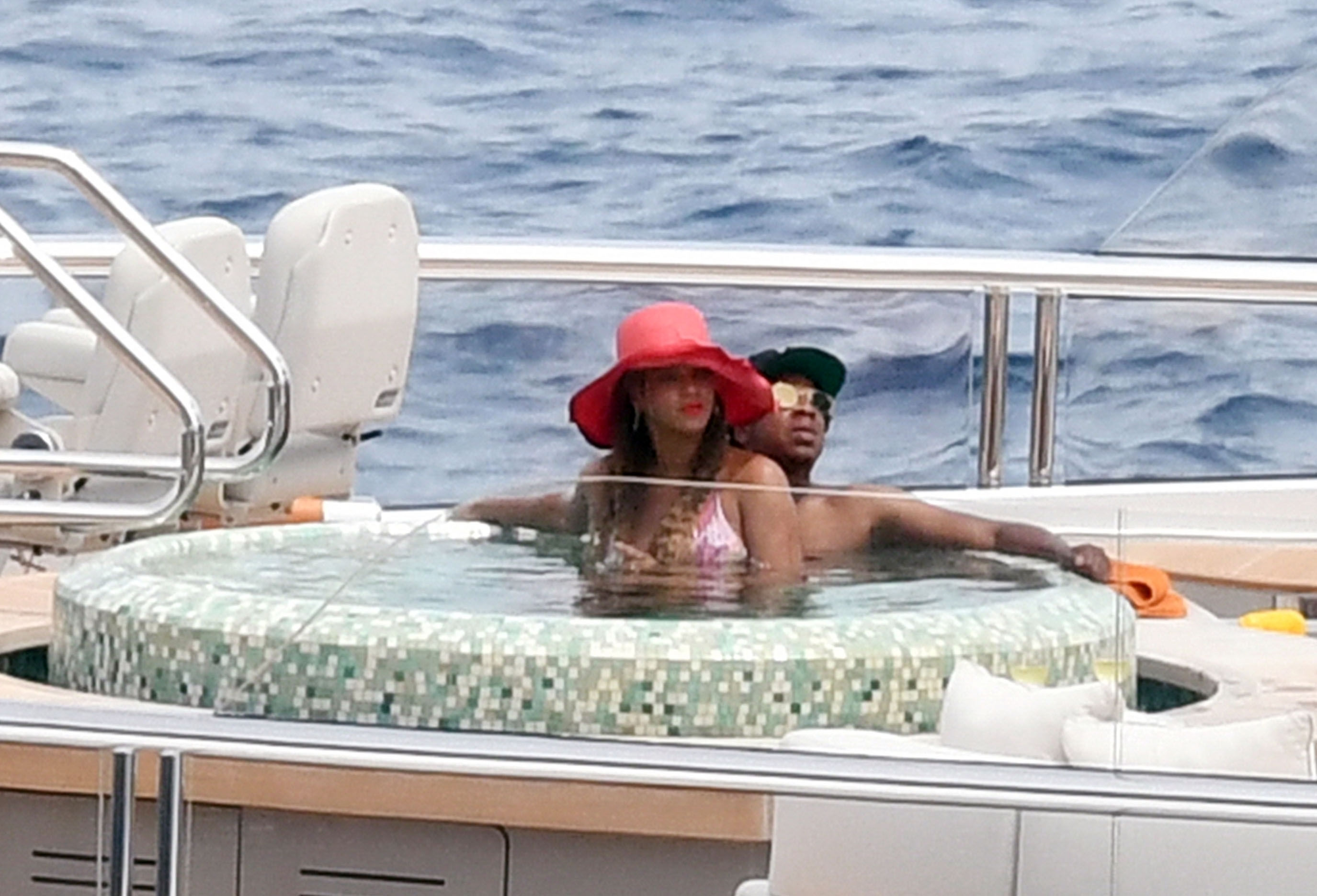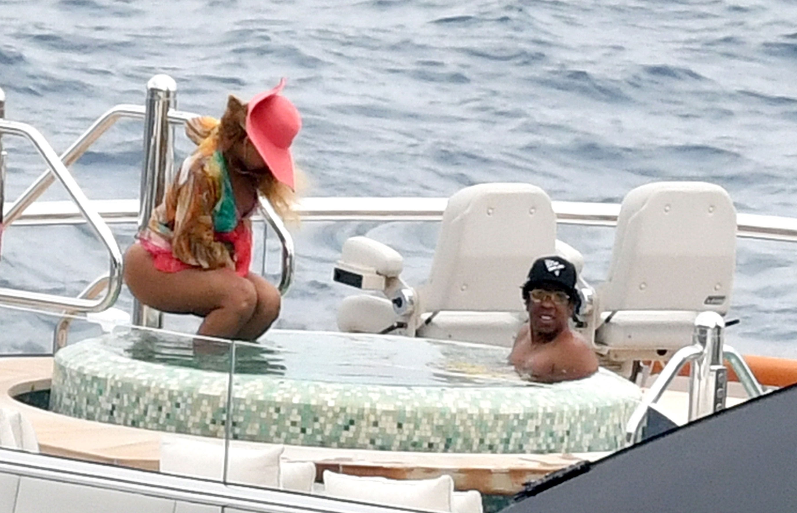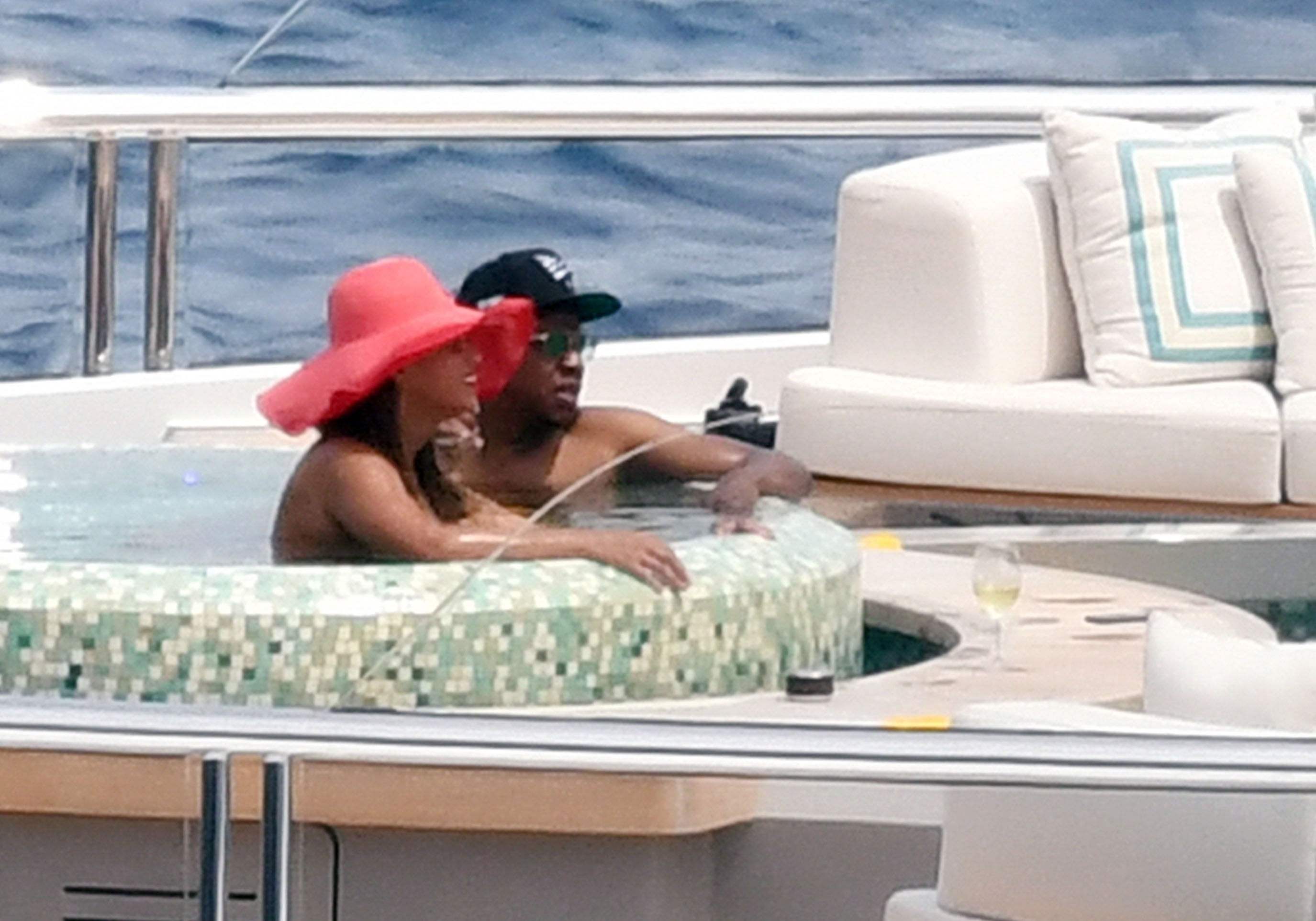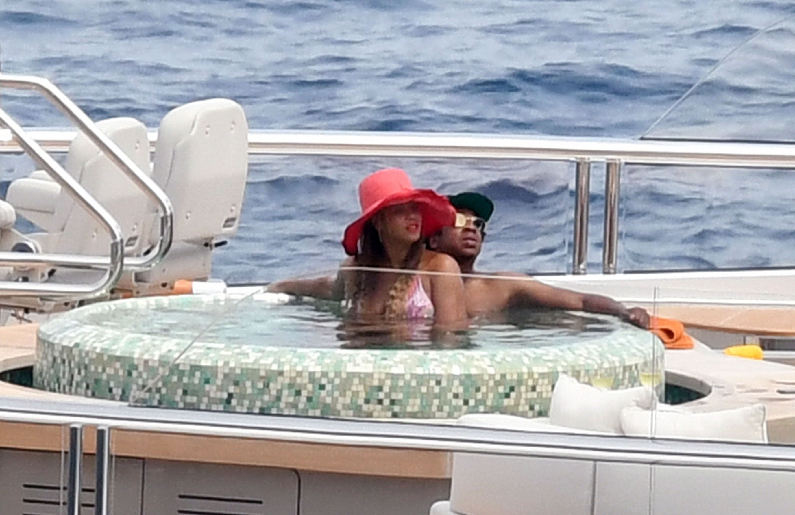 La cantante Beyoncé y su esposo, el rapero Jay Z, fueron vistos relajándose juntos en el jacuzzi de su yate de lujo mientras estaban de vacaciones en Capri, Italia, 23/07/2018.