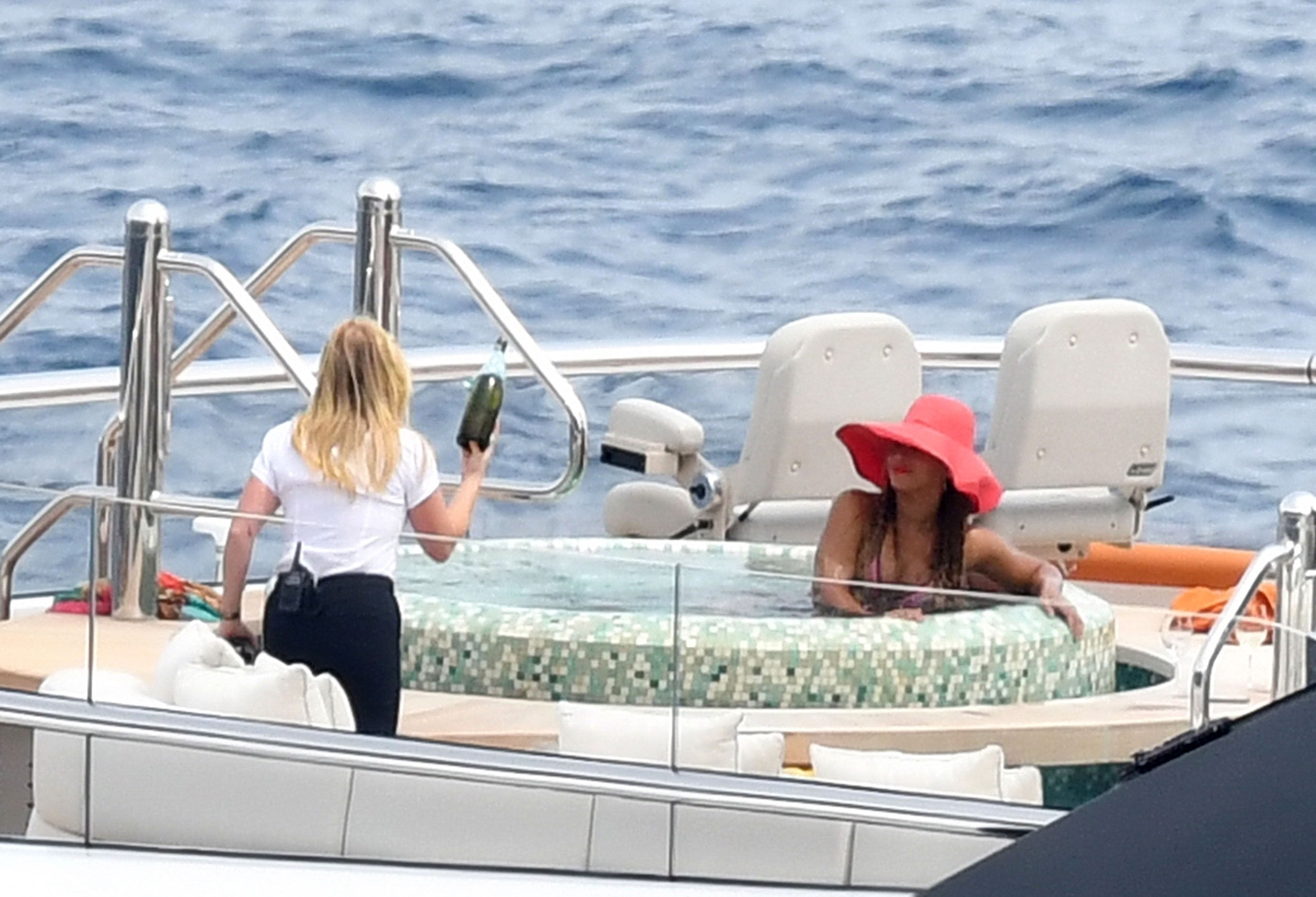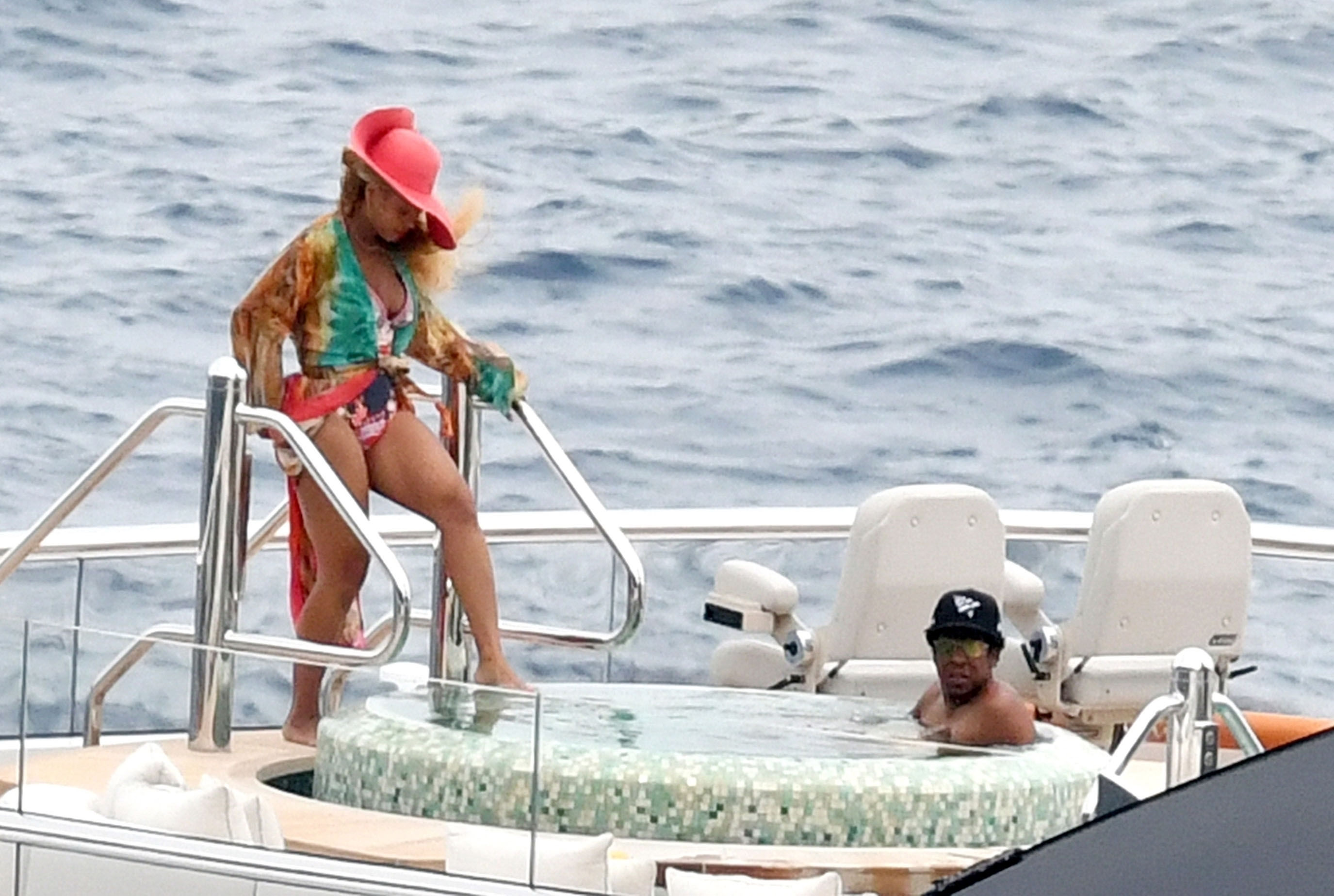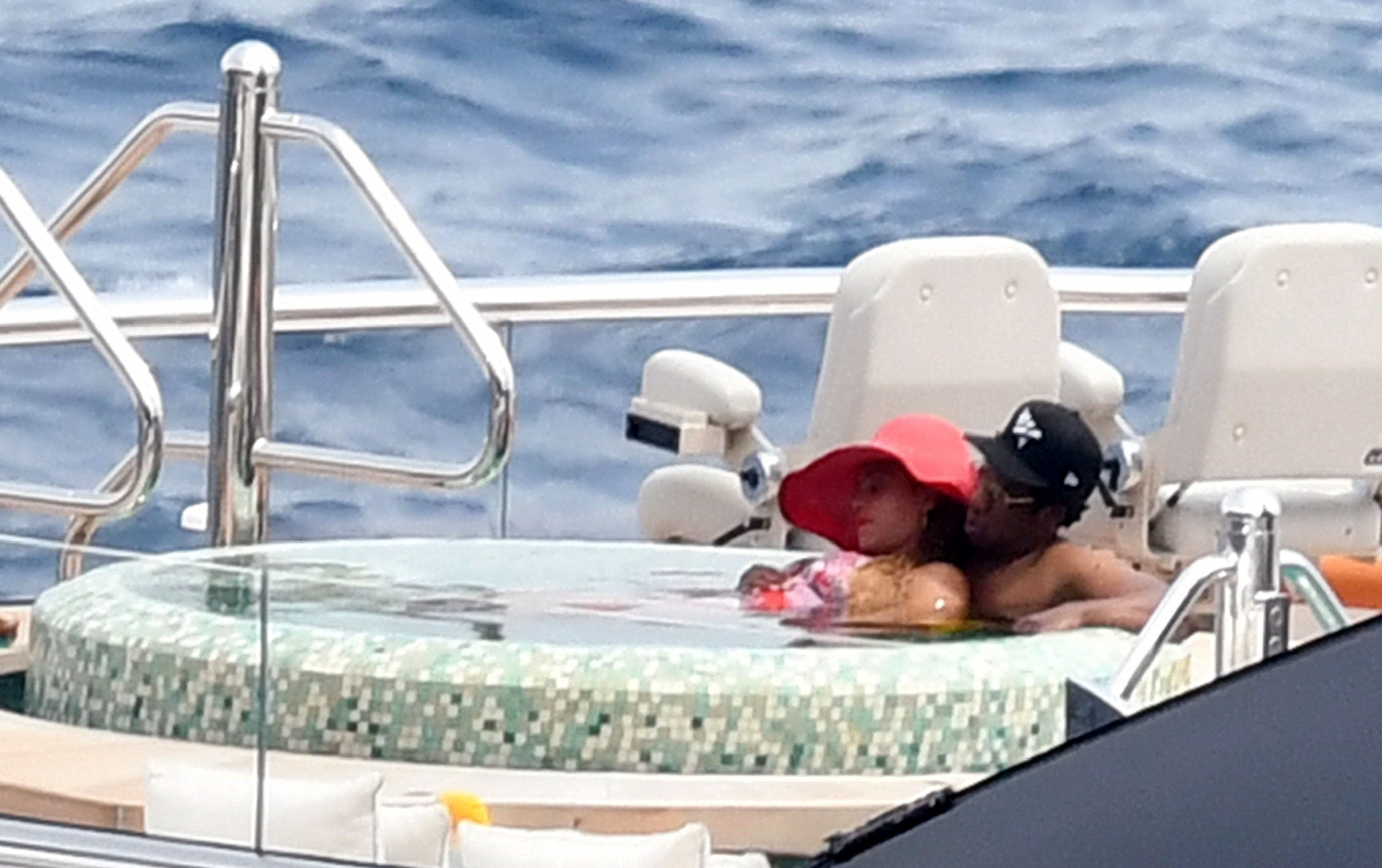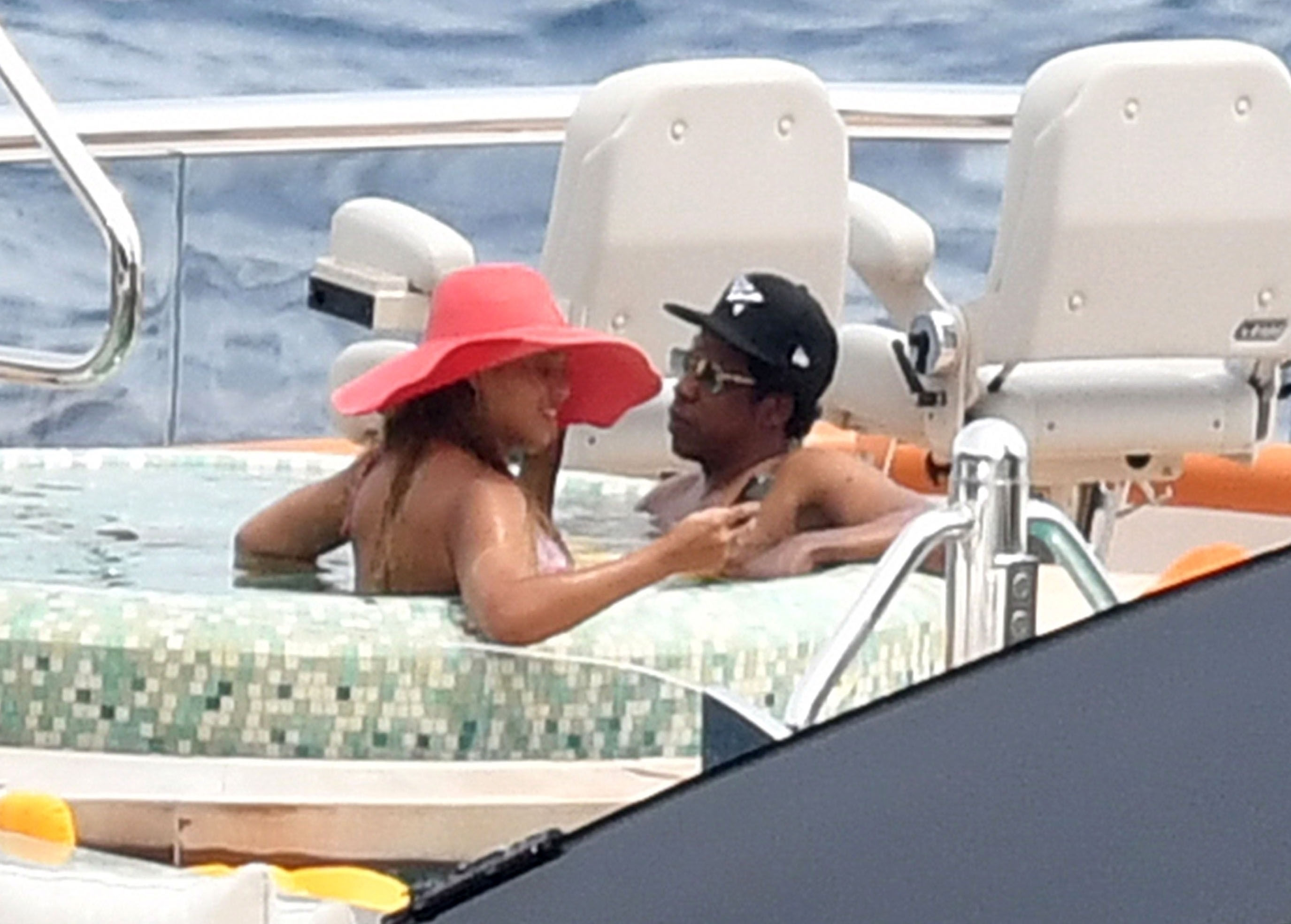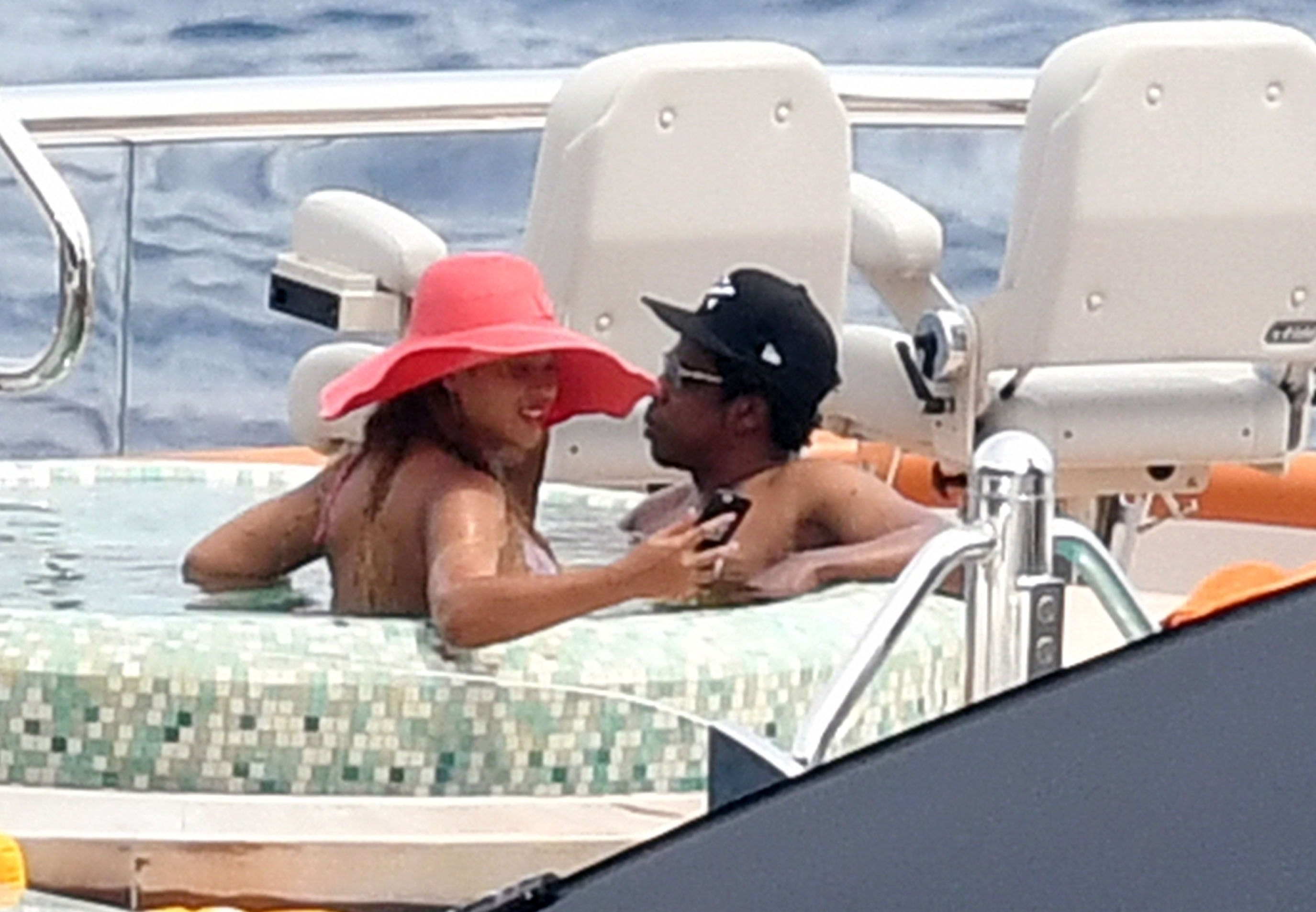 La cantante Beyoncé y su esposo, el rapero Jay Z, fueron vistos relajándose juntos en el jacuzzi de su yate de lujo mientras estaban de vacaciones en Capri, Italia, 23/07/2018.