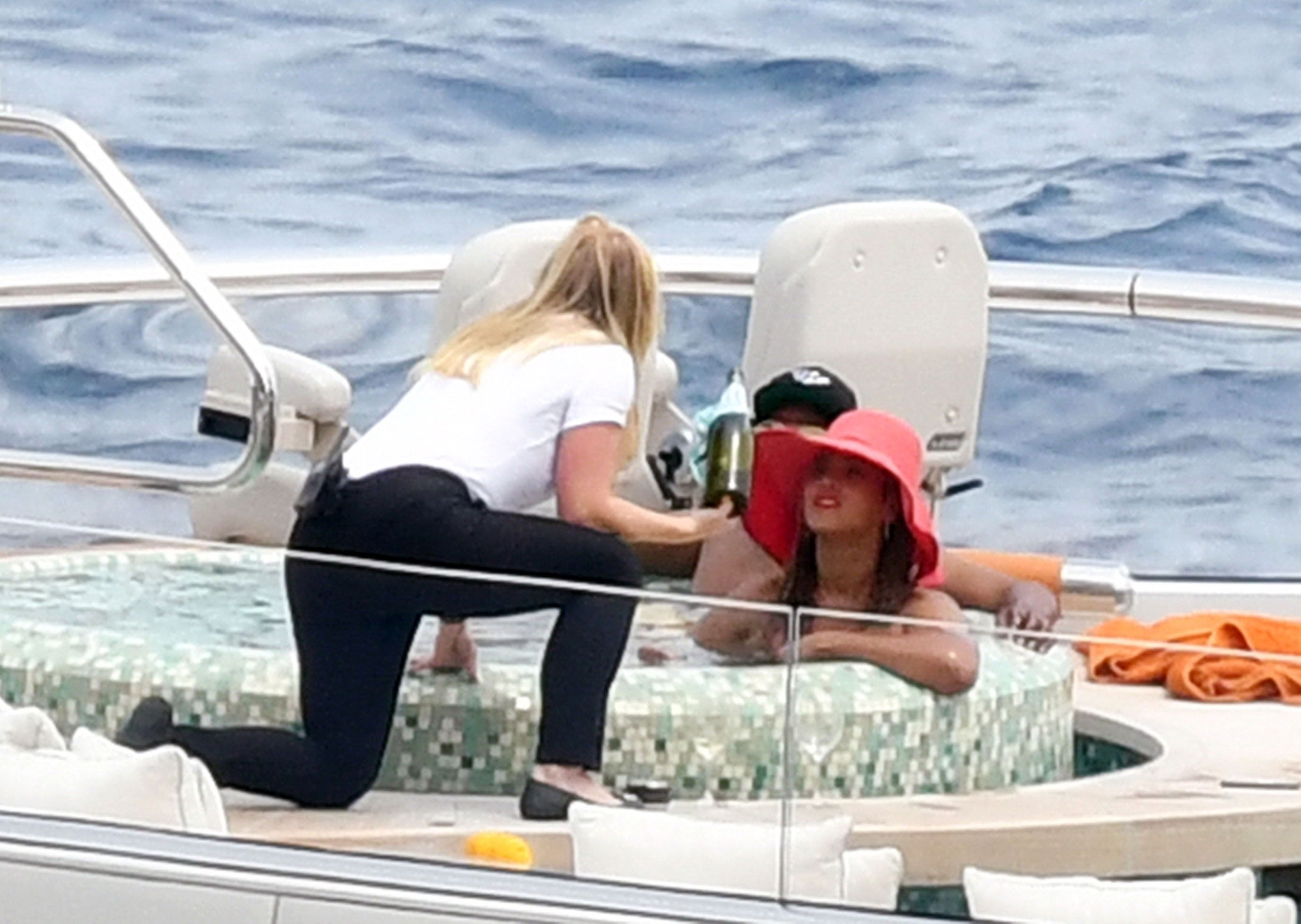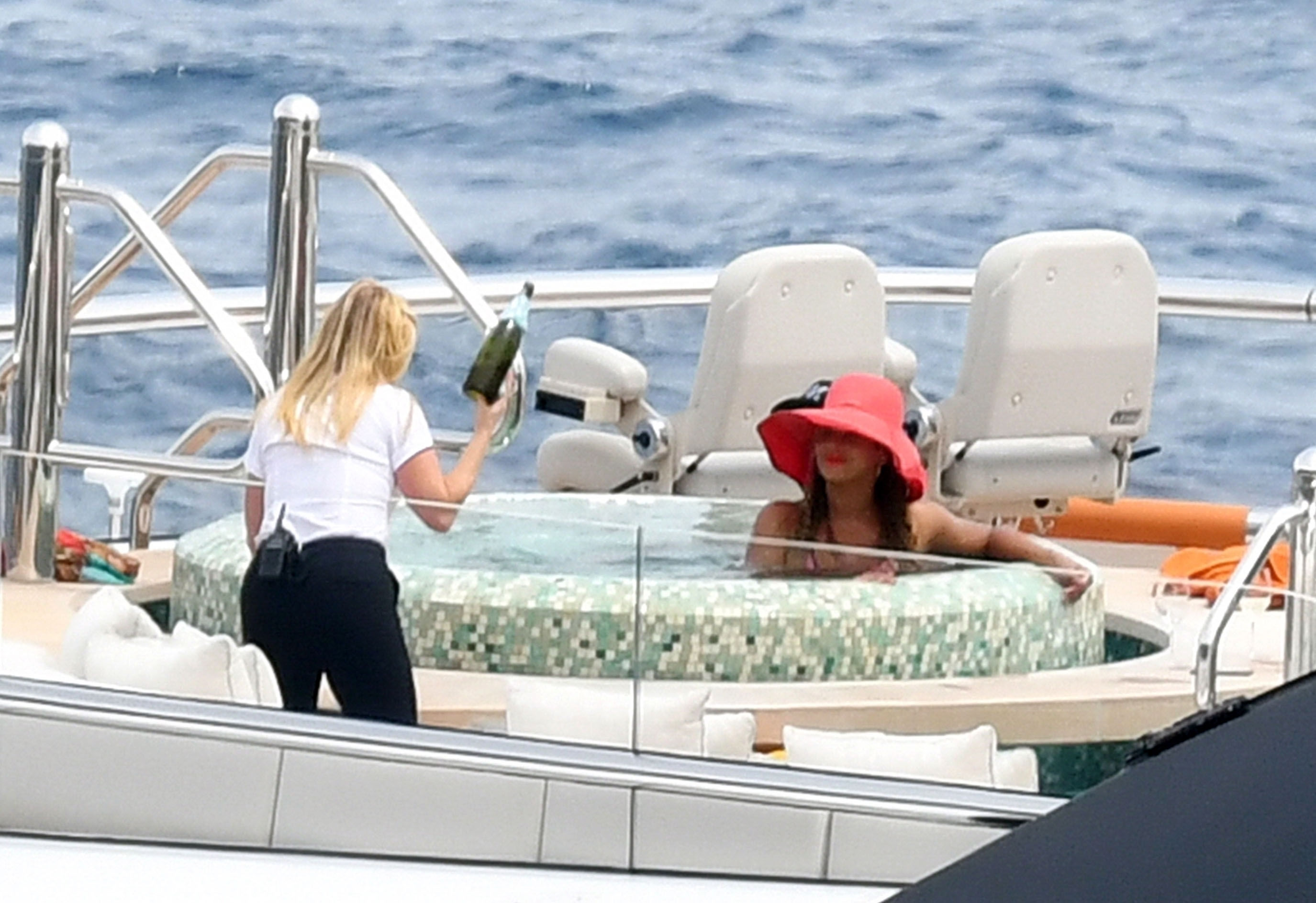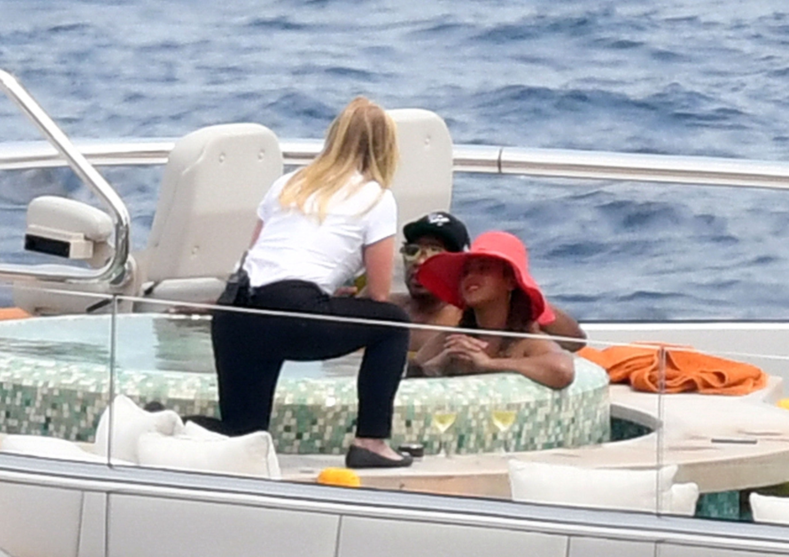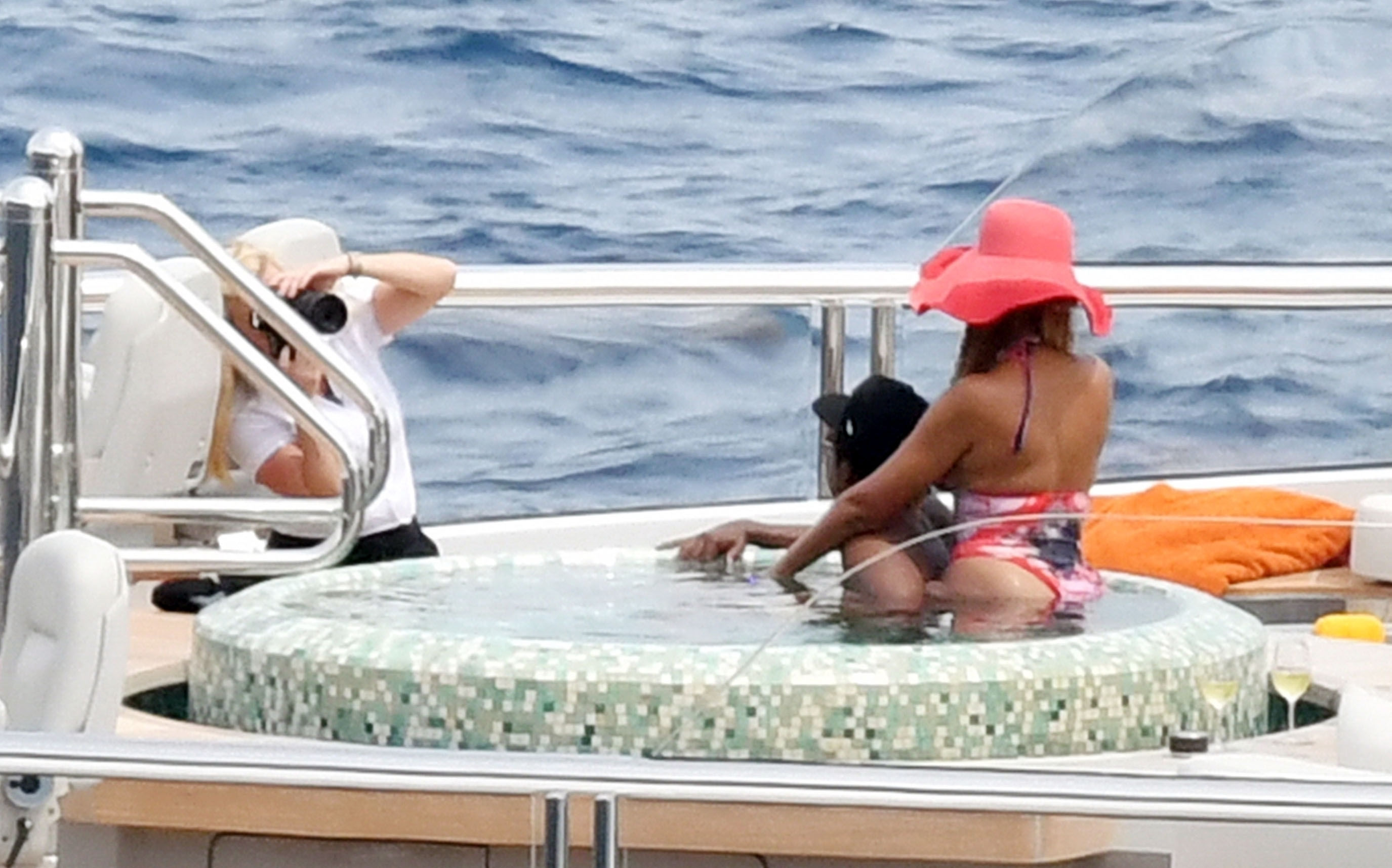 La cantante Beyoncé y su esposo, el rapero Jay Z, fueron vistos relajándose juntos en el jacuzzi de su yate de lujo mientras estaban de vacaciones en Capri, Italia, 23/07/2018.