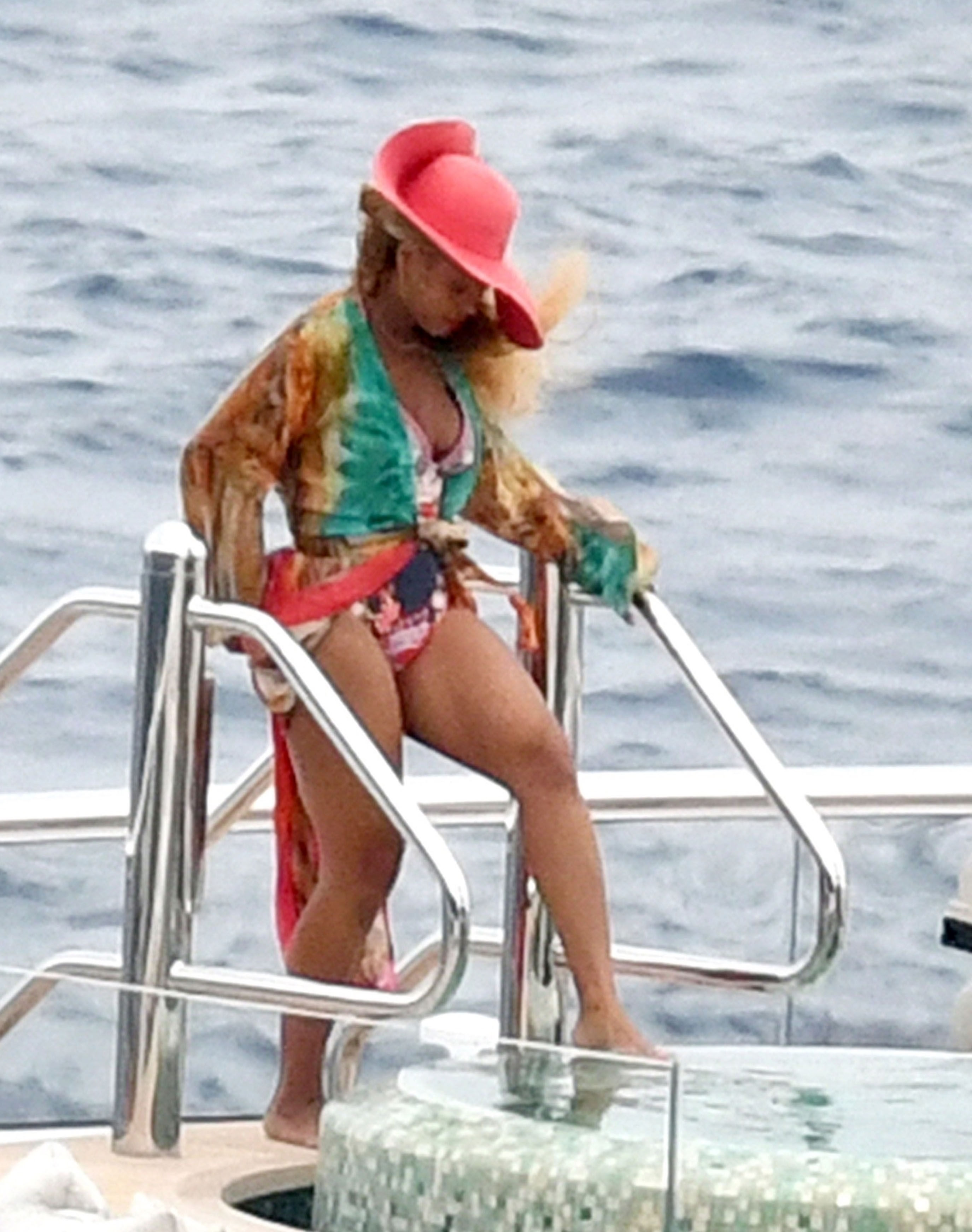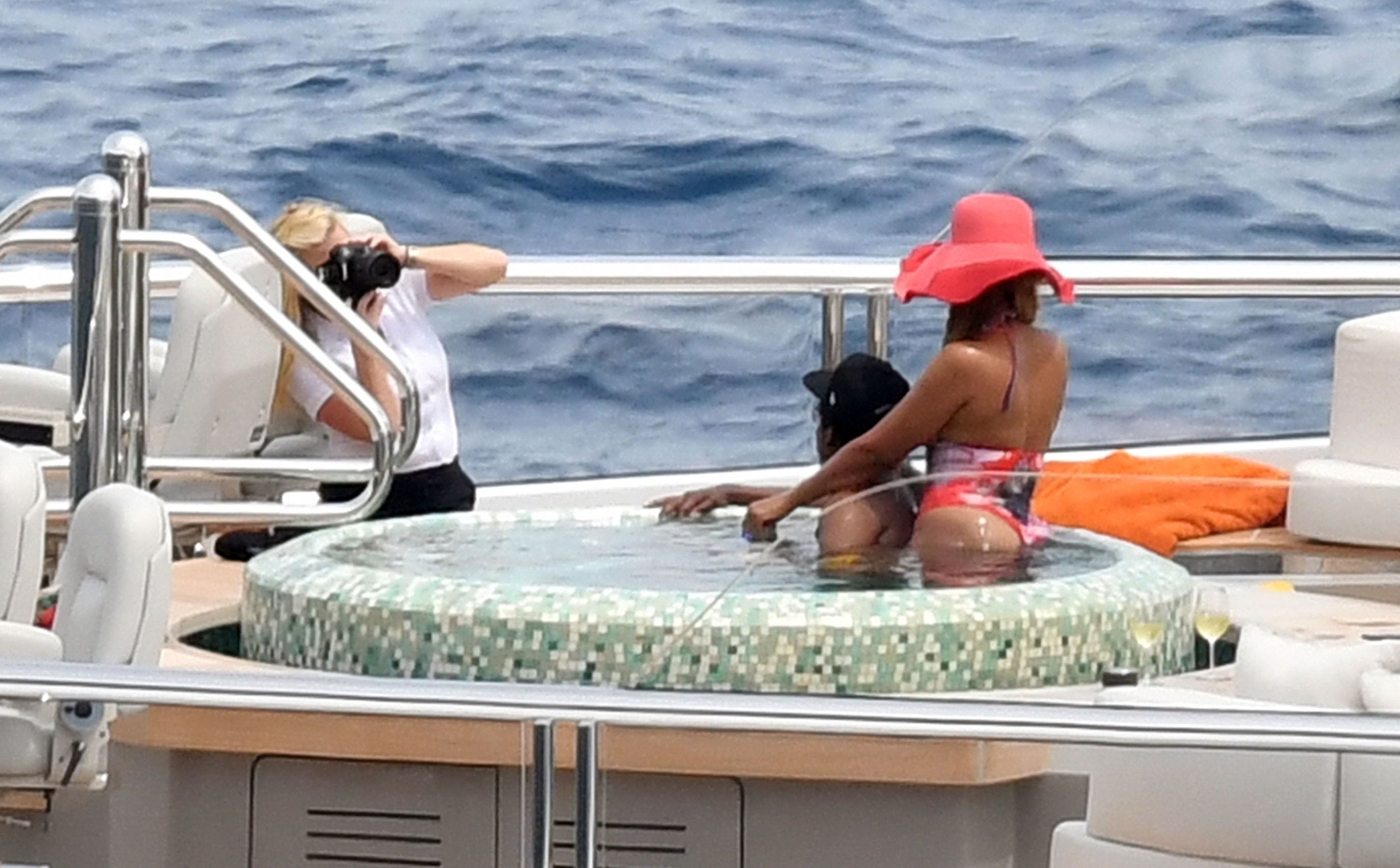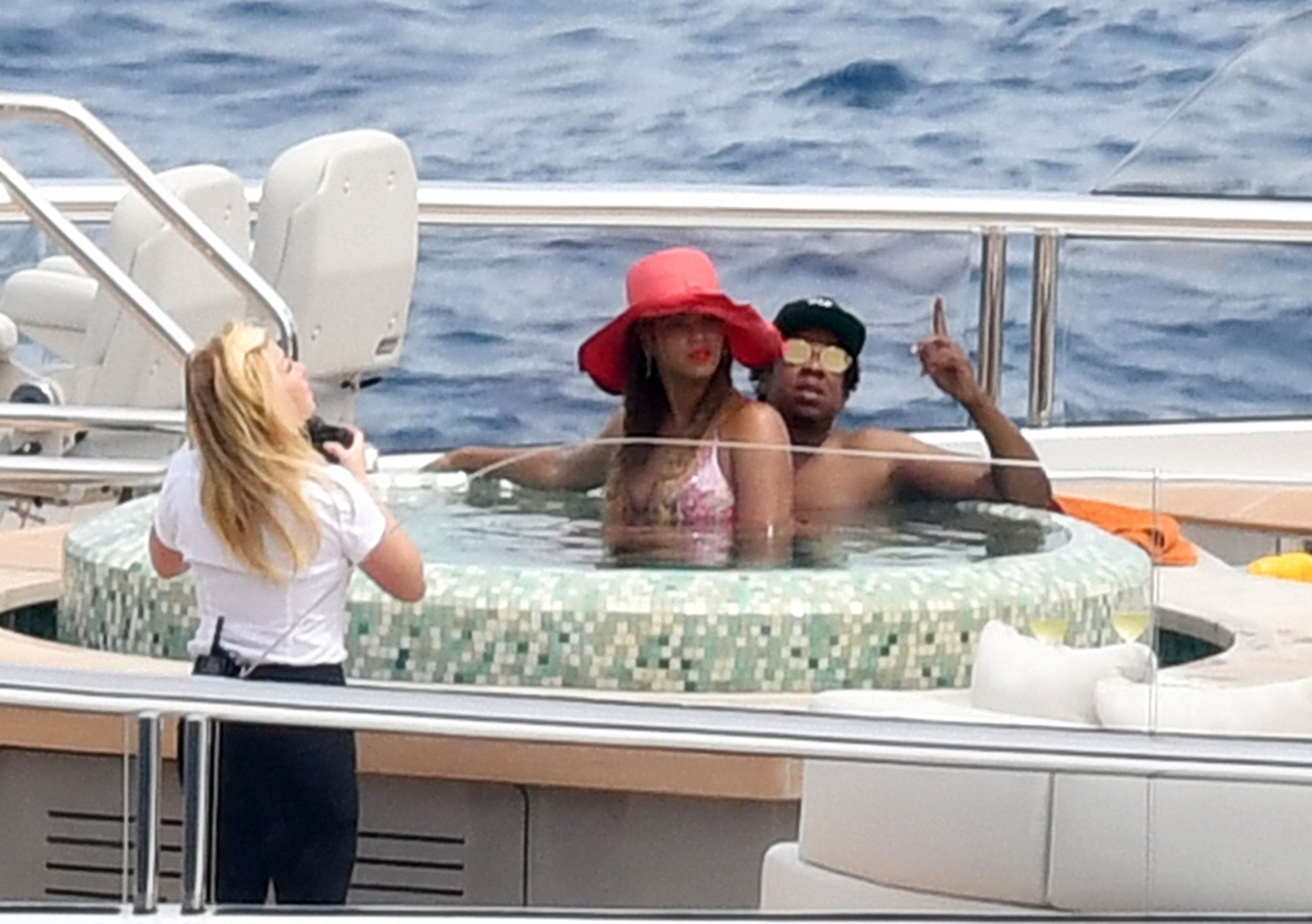 Los Carter fueron vistos tomando un baño en el jacuzzi y tomando algunas fotos para el álbum familiar mientras disfrutaban de un buen champán antes de que se uniera su hija bebé en el jacuzzi. Luego Beyoncé se fue y más tarde se unió su esposo Jay para un almuerzo familiar donde se veían muy relajados.