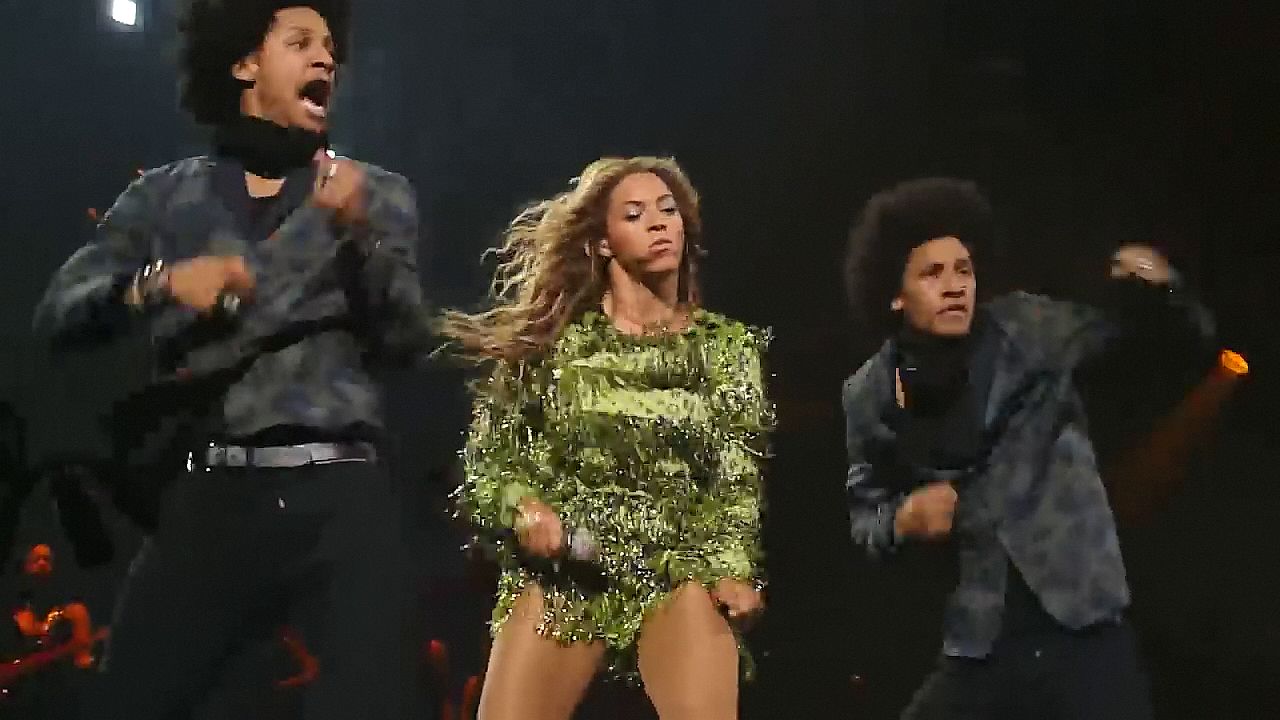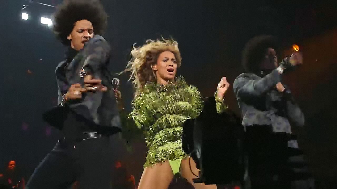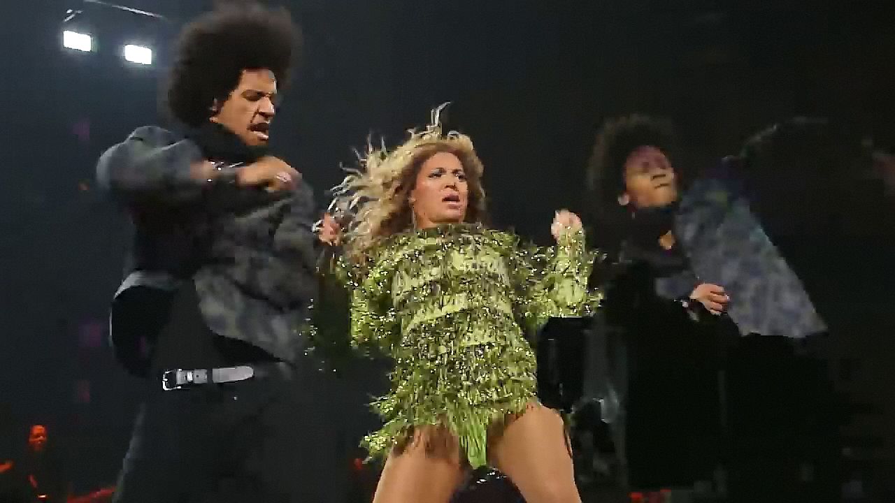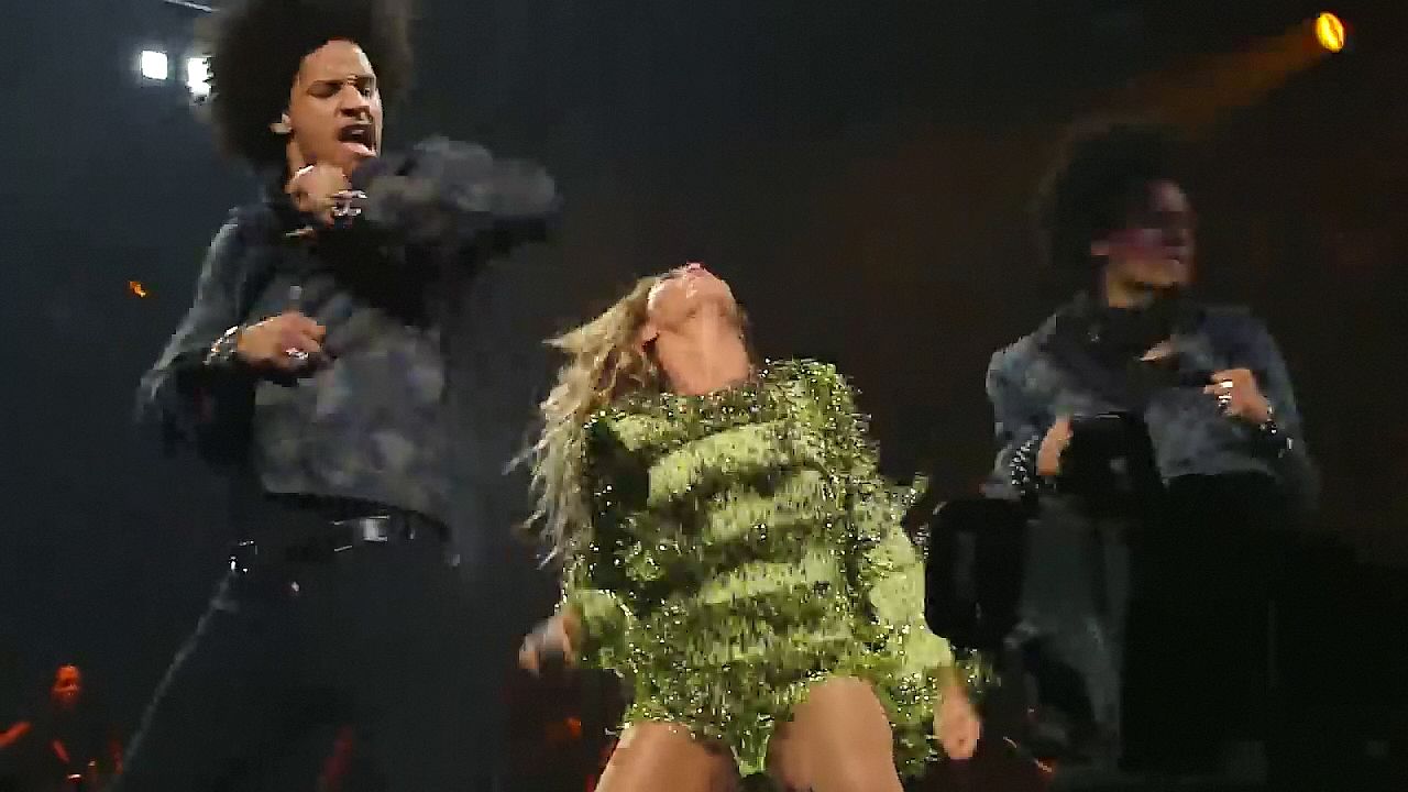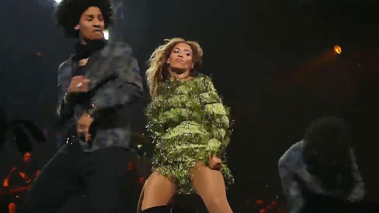 Aquí hay algunas capturas de pantalla de baja calidad del video de Beyoncé en el Mrs. Carter Show WT en Nueva York, 23/07/2013. Tal vez viste bragas verdes y los labios de su vagina durante la actuación.