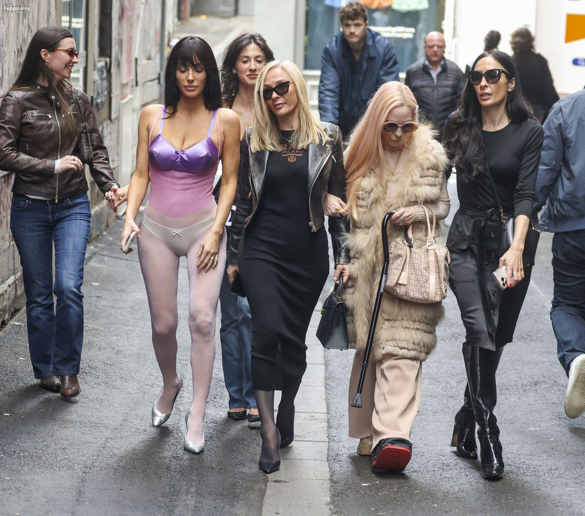 Bianca Censori fue vista en Melbourne, Australia, en una salida de compras familiar, vistiendo un body transparente morado que mostraba sus atributos. Lo combinó con un sujetador metálico morado y ropa interior blanca, caminando con su madre Alexandra, su hermana Angelina y algunos familiares. Fueron a Mecca para una compra de productos de belleza y pasearon por los callejones del CBD, luciendo relajadas a pesar de la lluvia.