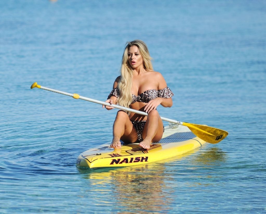 Bianca Gascoigne fotografiada mostrando su cuerpo caliente con bikini de estampado animal en Ibiza, 24/05/2017. Bianca Gascoigne es una modelo británica y ex estrella de Gran Hermano. Edad – 30.