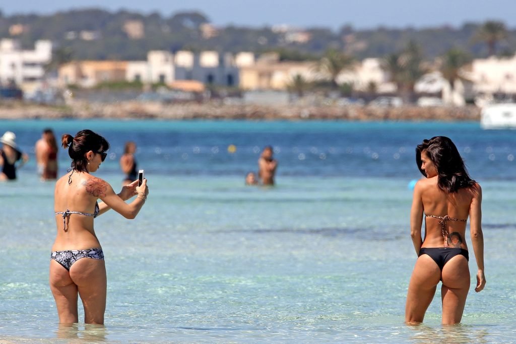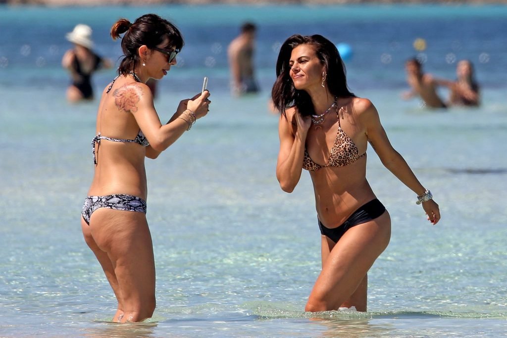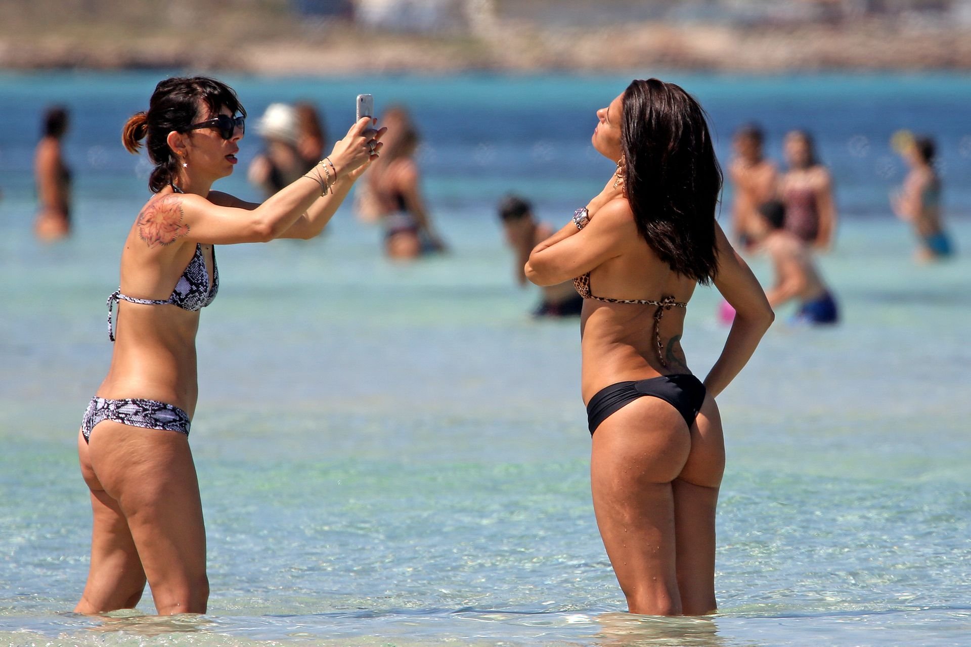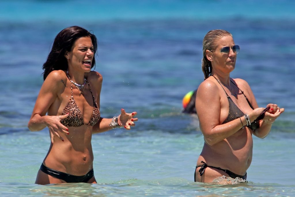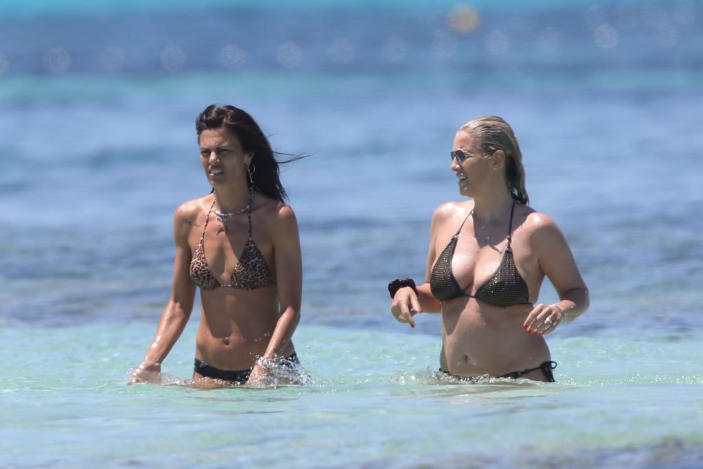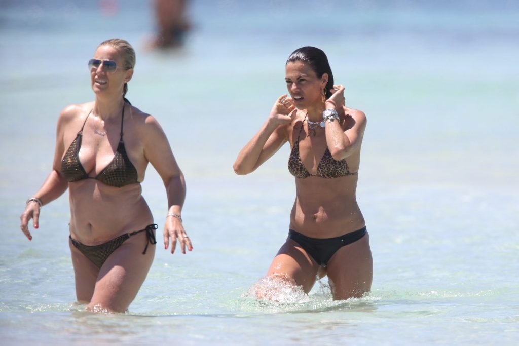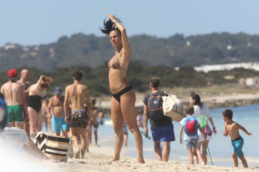 La actriz italiana Bianca Guaccero (38) fue vista disfrutando de las vacaciones con algunos amigos en la playa de Formentera, 18/06/2019.
