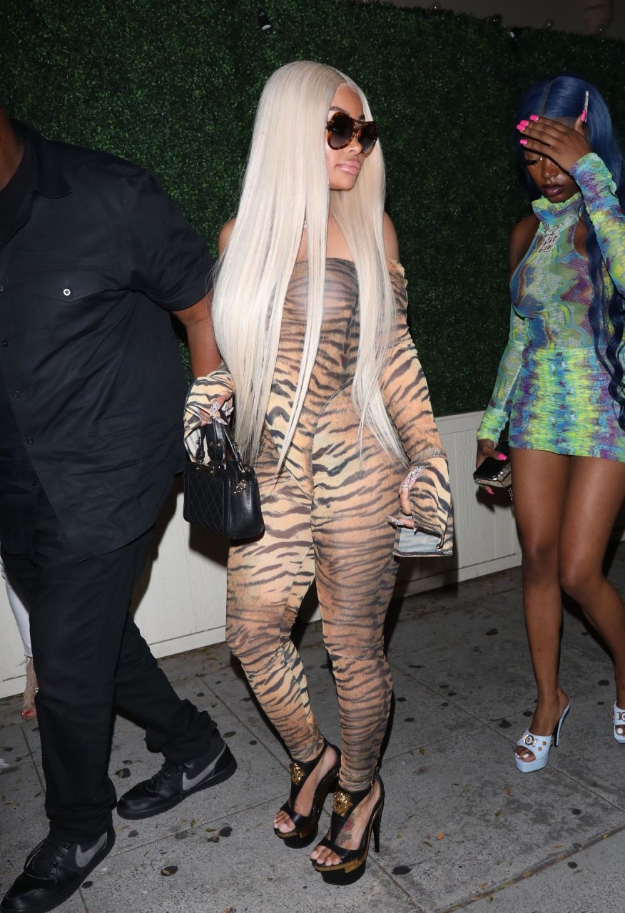 Blac Chyna (31) es vista llegando a Delilah con un body de estampado de leopardo para la fiesta previa a BET en Los Ángeles, 22/06/2019.
