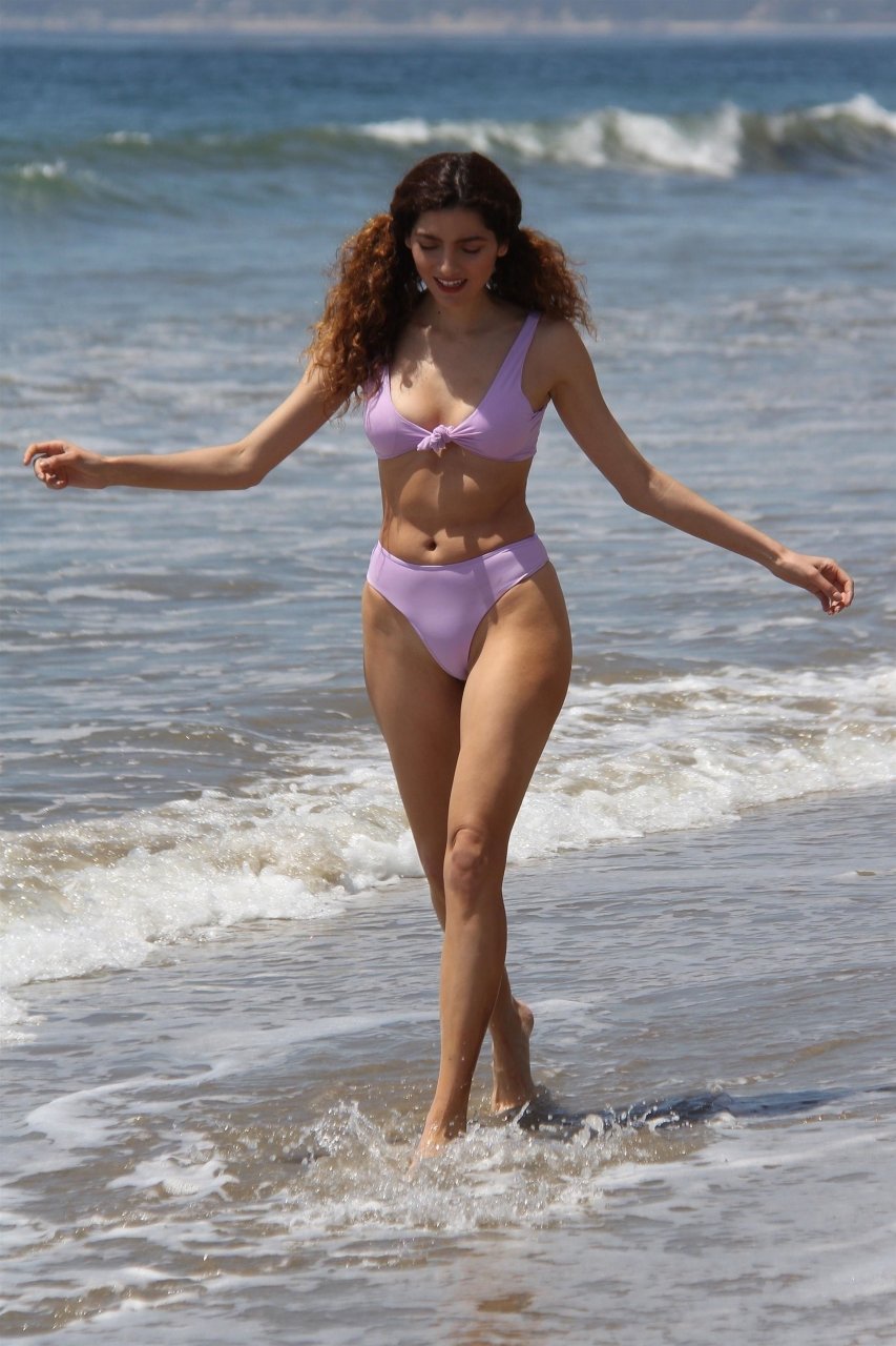 Blanca Blanco disfruta de un día divertido en la playa de Malibu con un lindo bikini rosa-violeta, 10/05/2018. La actriz de 37 años lució su dulce trasero y sus piernas delgadas.