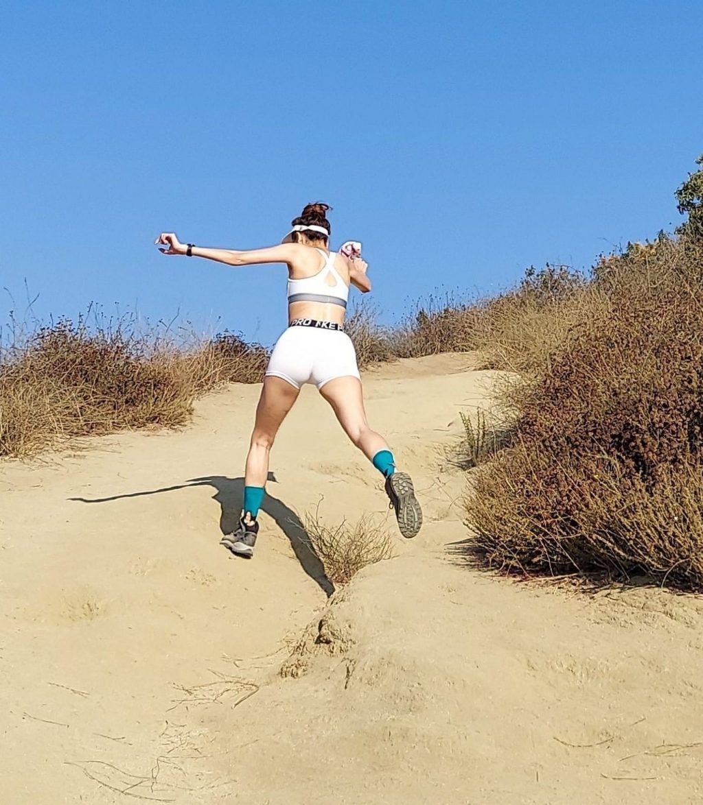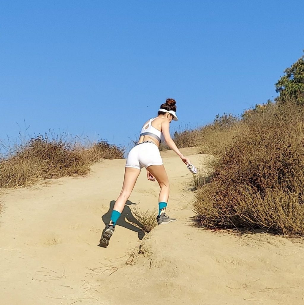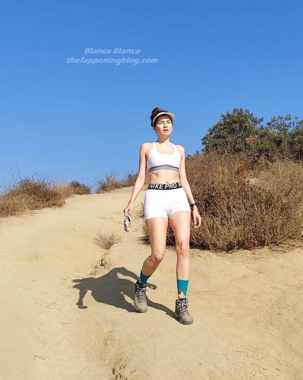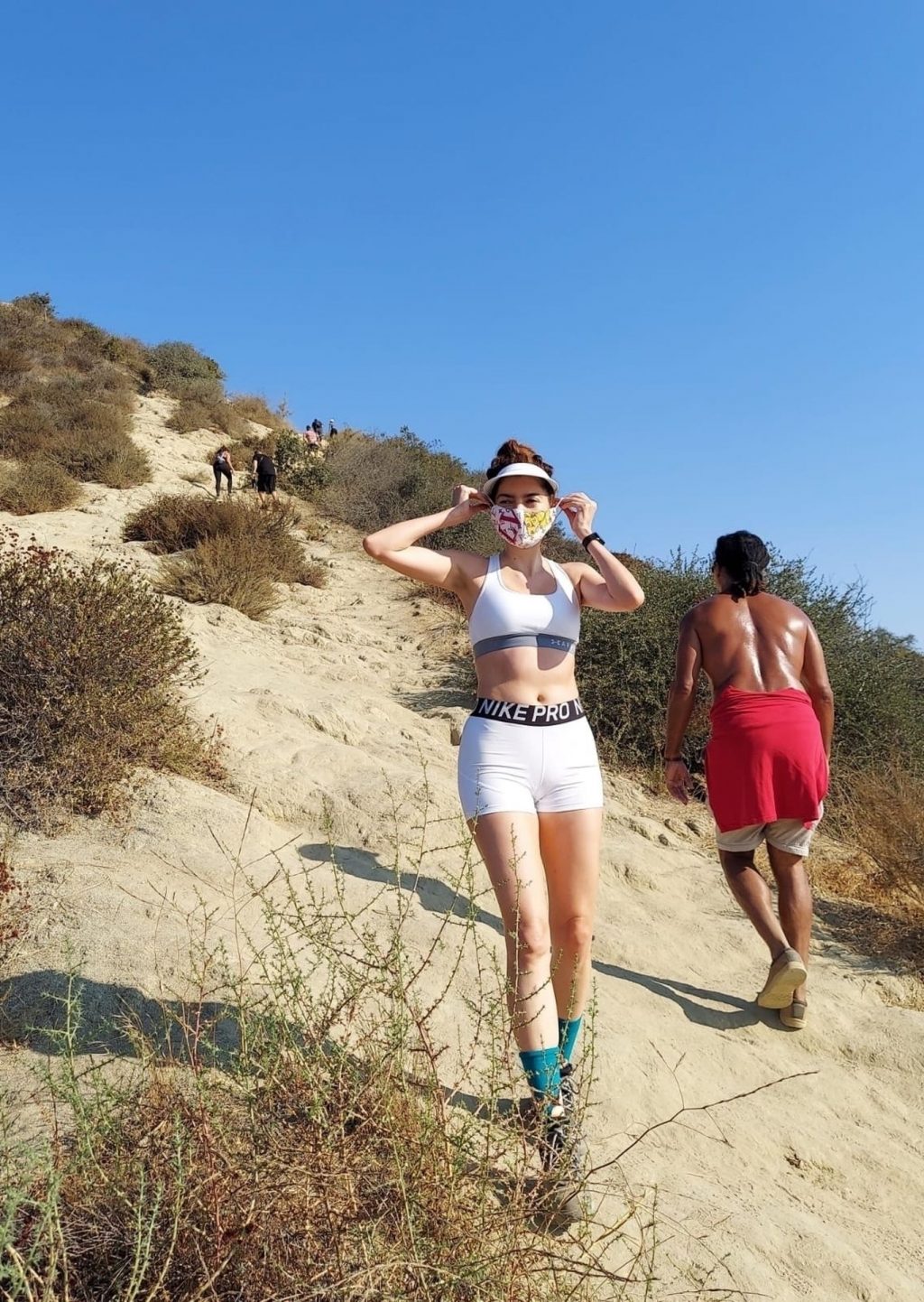 La actriz Blanca Blanco va de excursión en las colinas de Hollywood vistiendo un conjunto deportivo de Nike, 25/09/2020.
