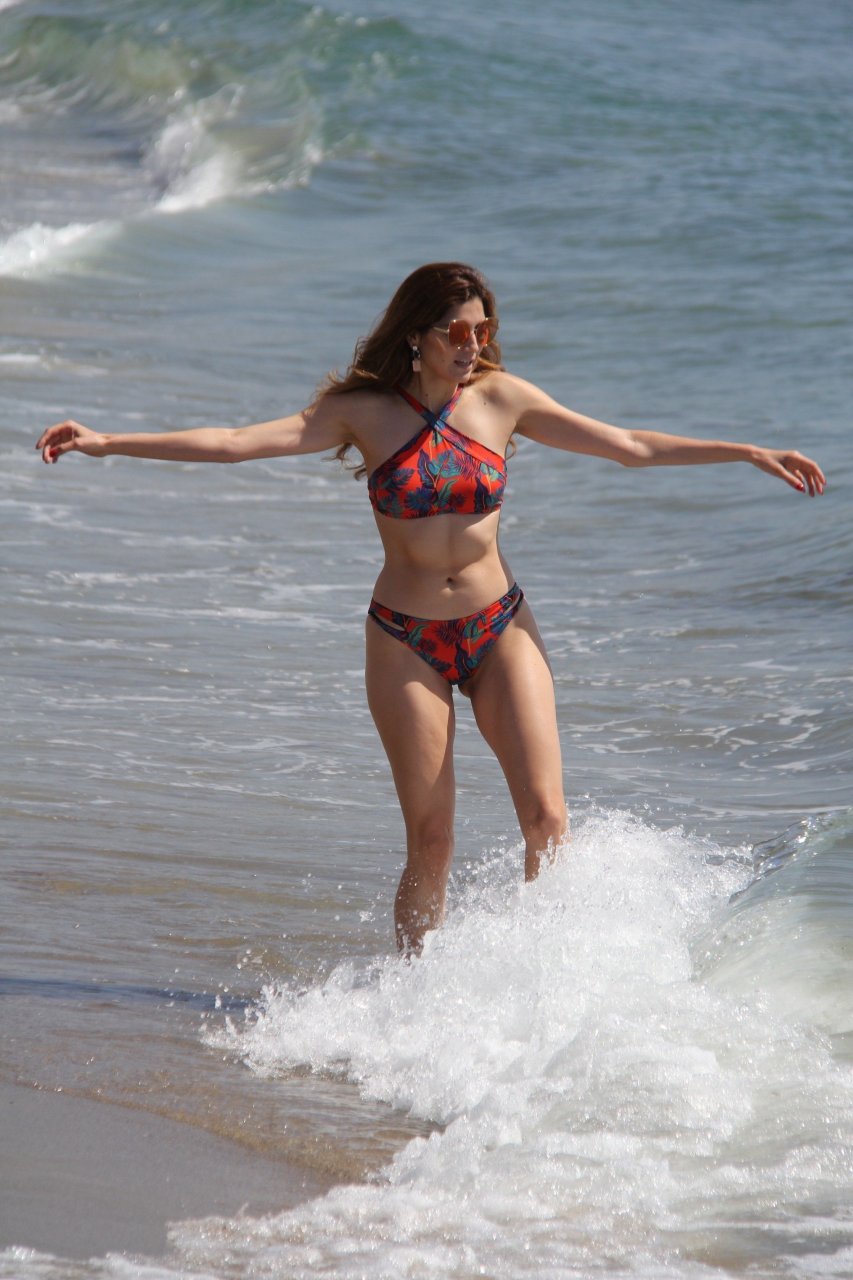 Blanca Blanco muestra su cuerpo en bikini mientras intenta disfrutar del primer día de otoño en la playa de Malibu, 22/09/2017. Blanca Blanco es una actriz estadounidense.