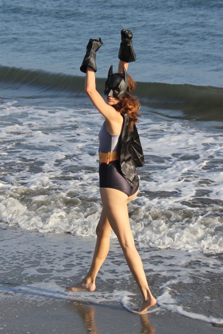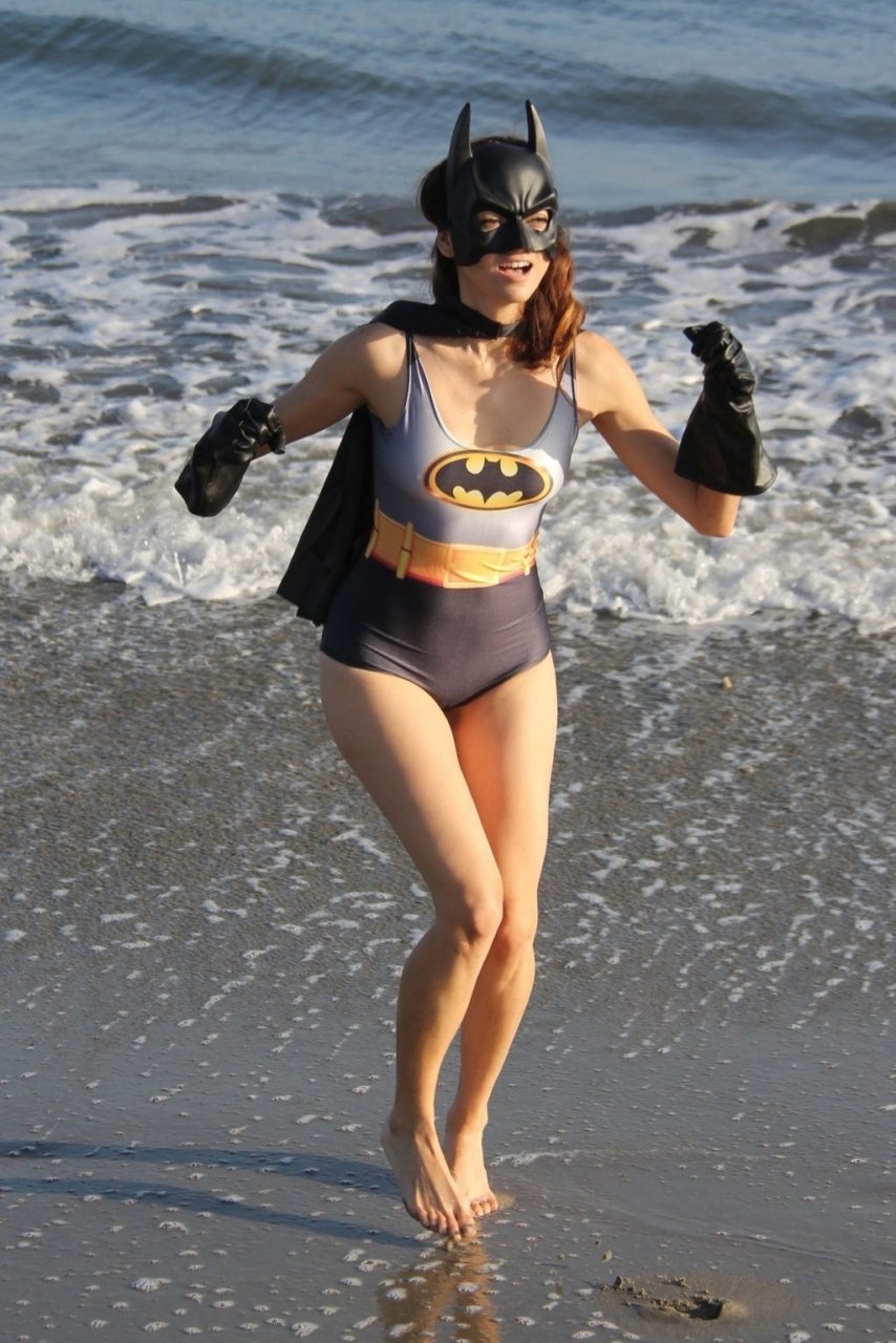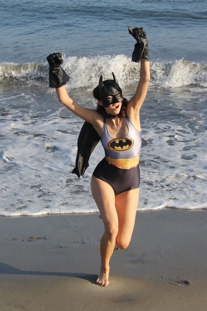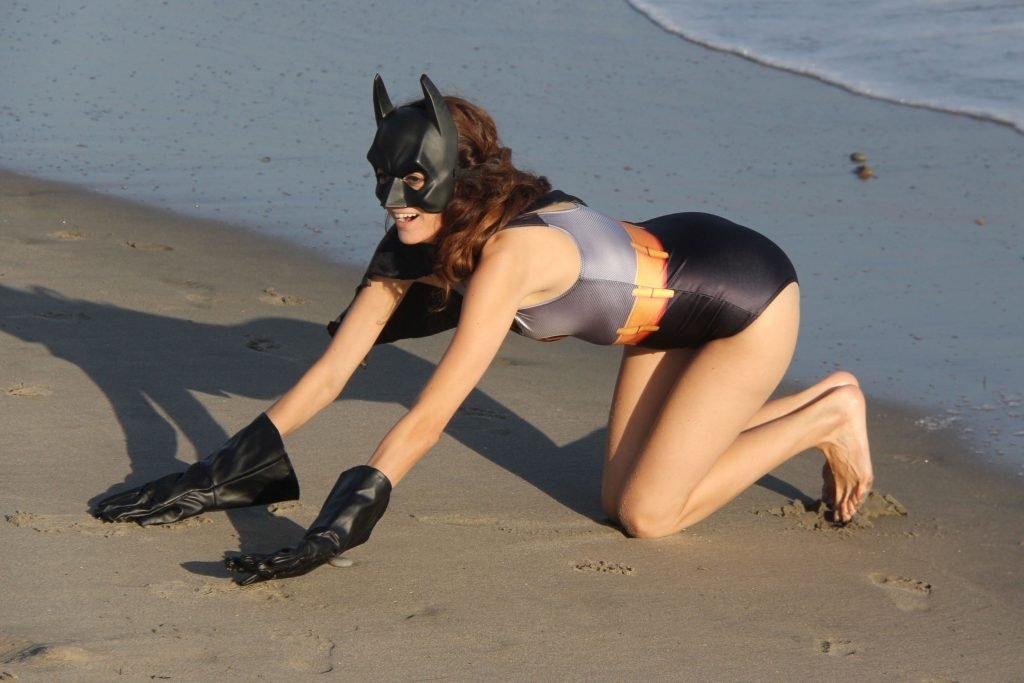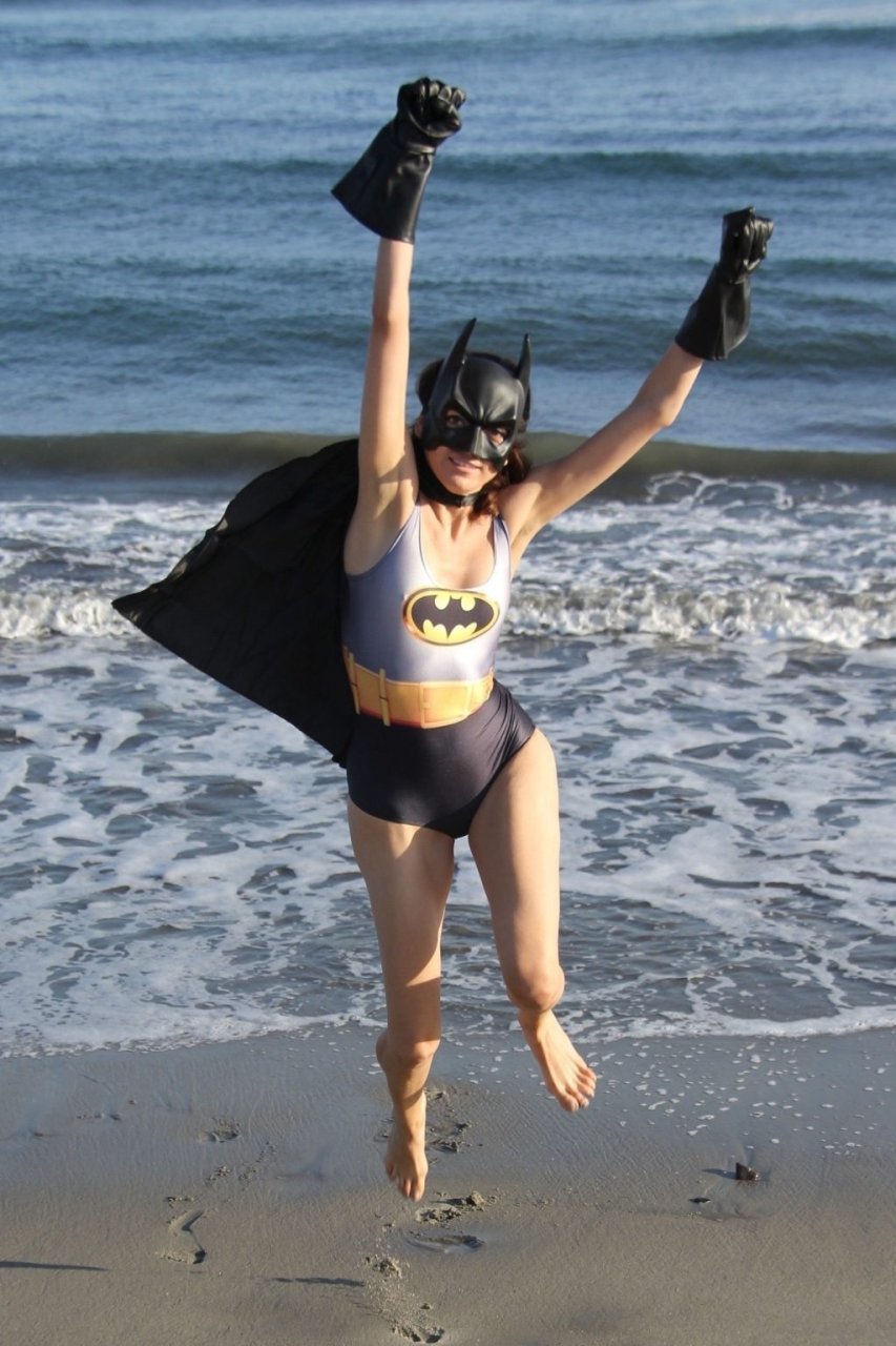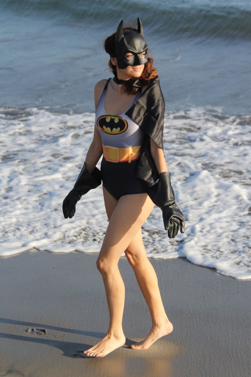 Actriz Blanca Blanco se mete en el espíritu de Halloween mientras posa como Batwoman en la playa de Malibú, 30/10/2018.