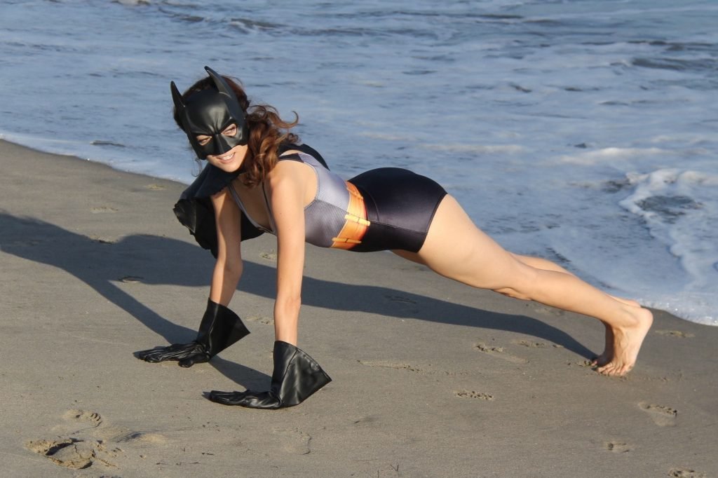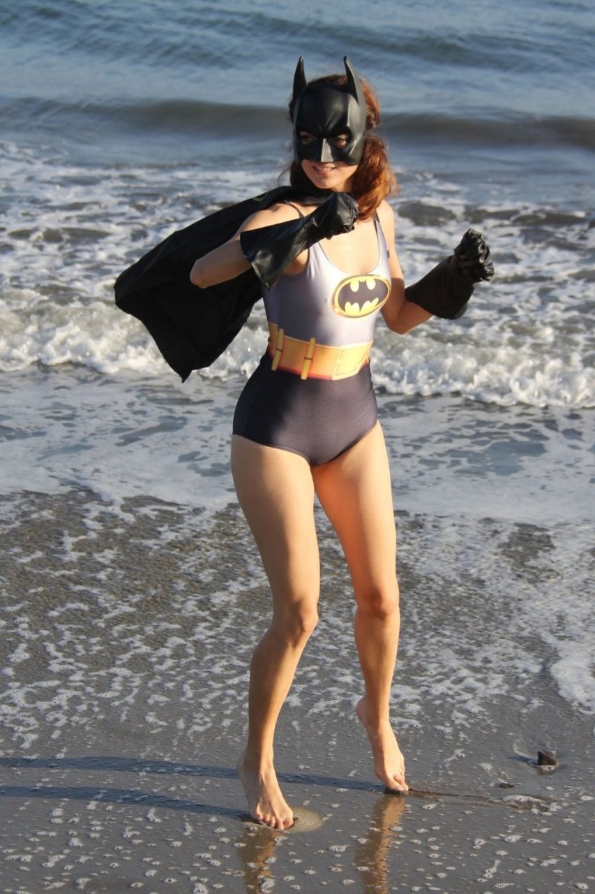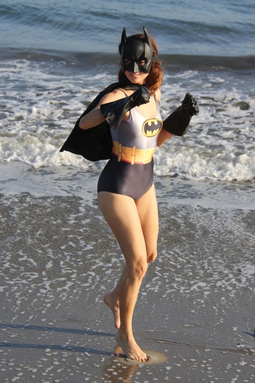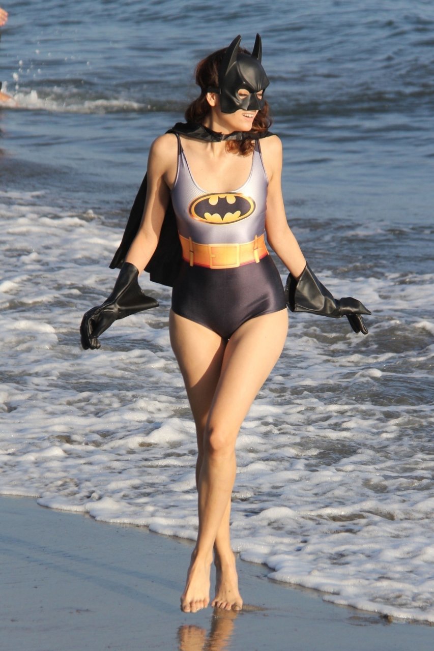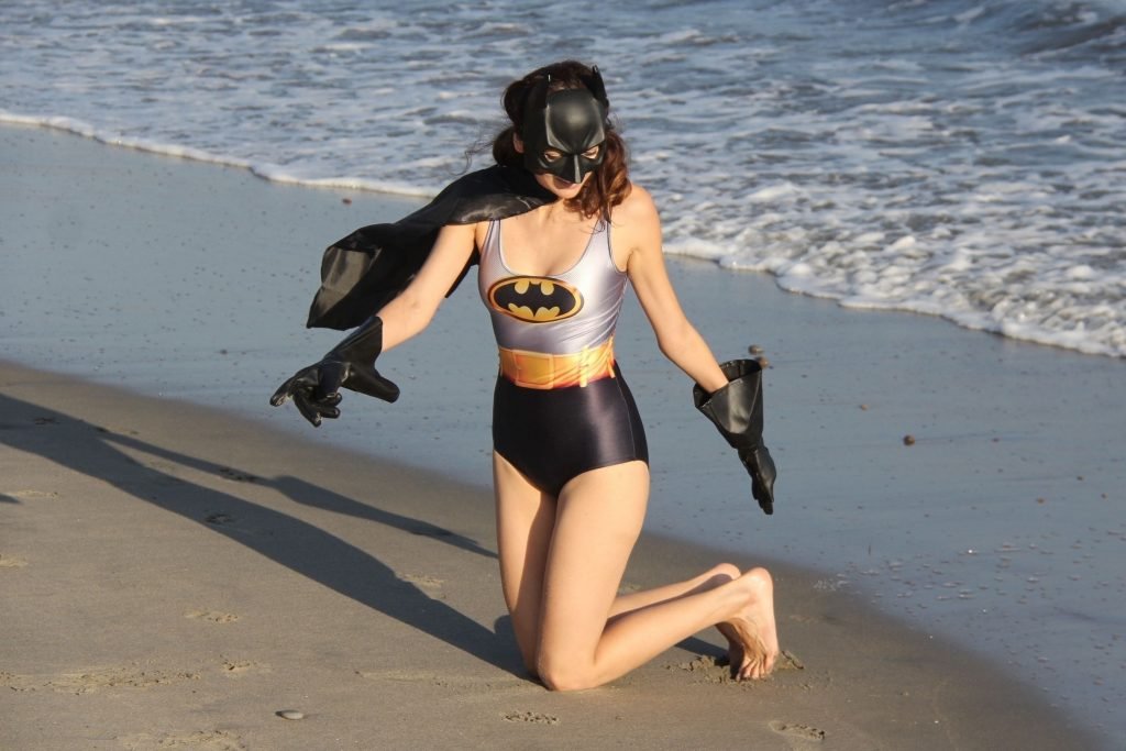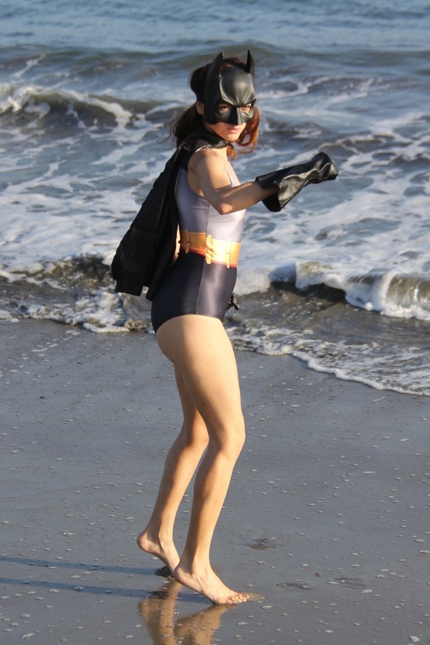 Actriz Blanca Blanco se mete en el espíritu de Halloween mientras posa como Batwoman en la playa de Malibú, 30/10/2018.