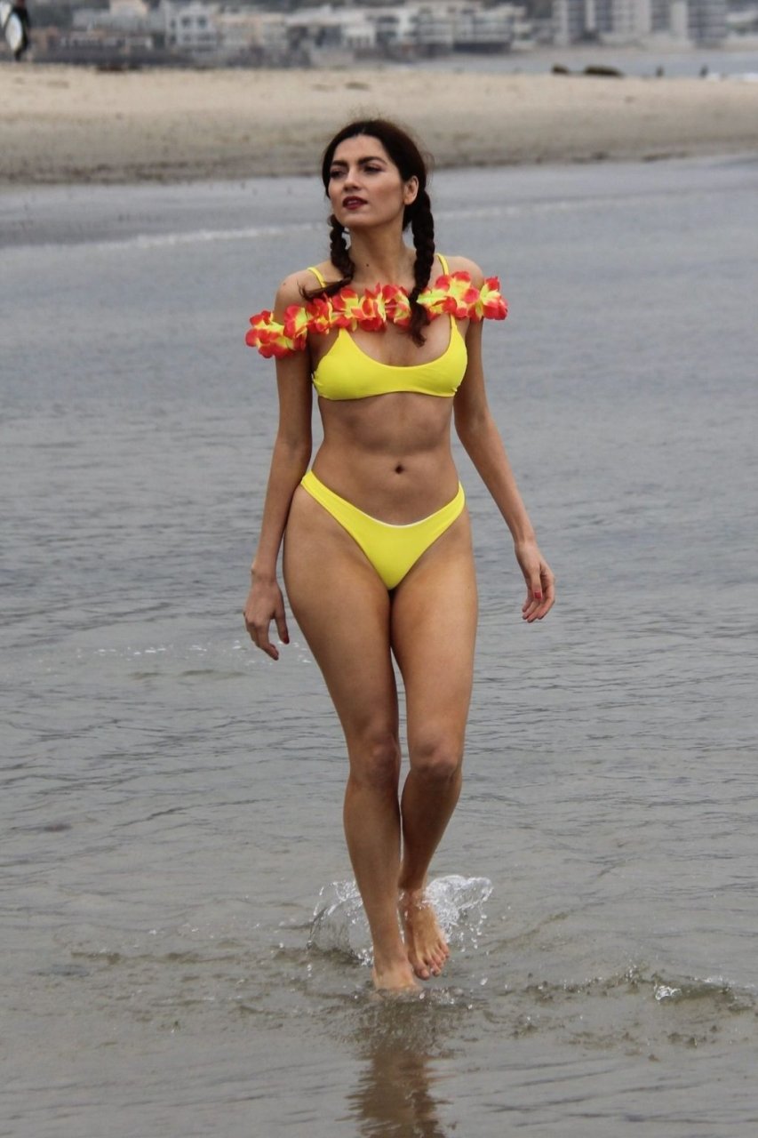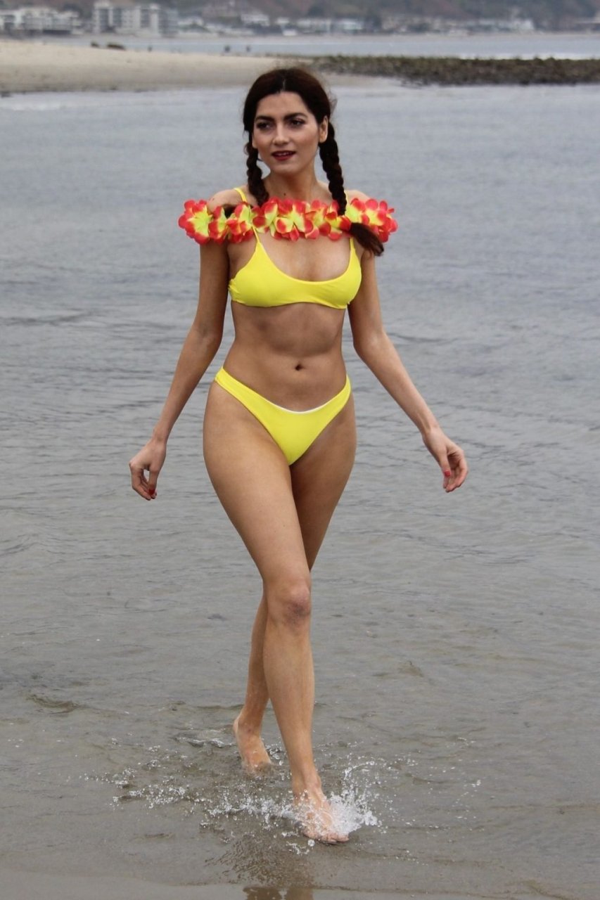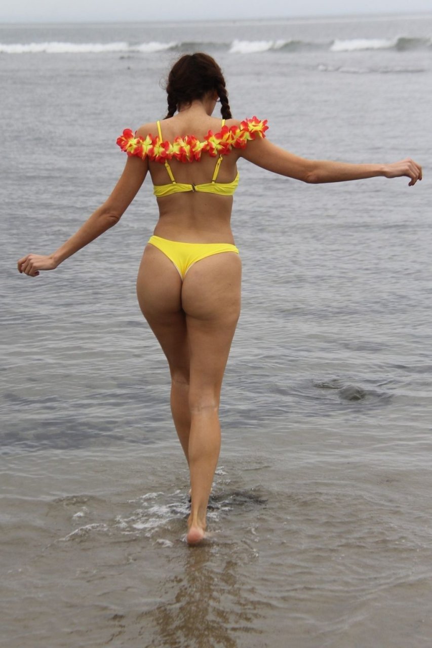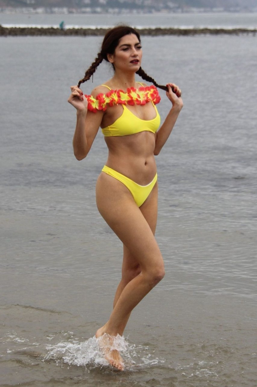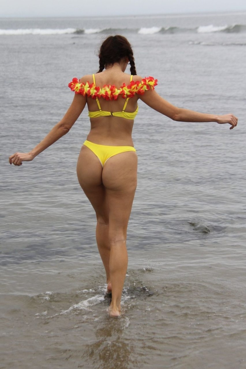 La actriz Blanca Blanco muestra su figura con un bikini amarillo mientras disfruta otro día en la playa en Malibu, 30/04/2019.