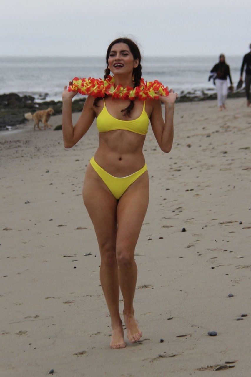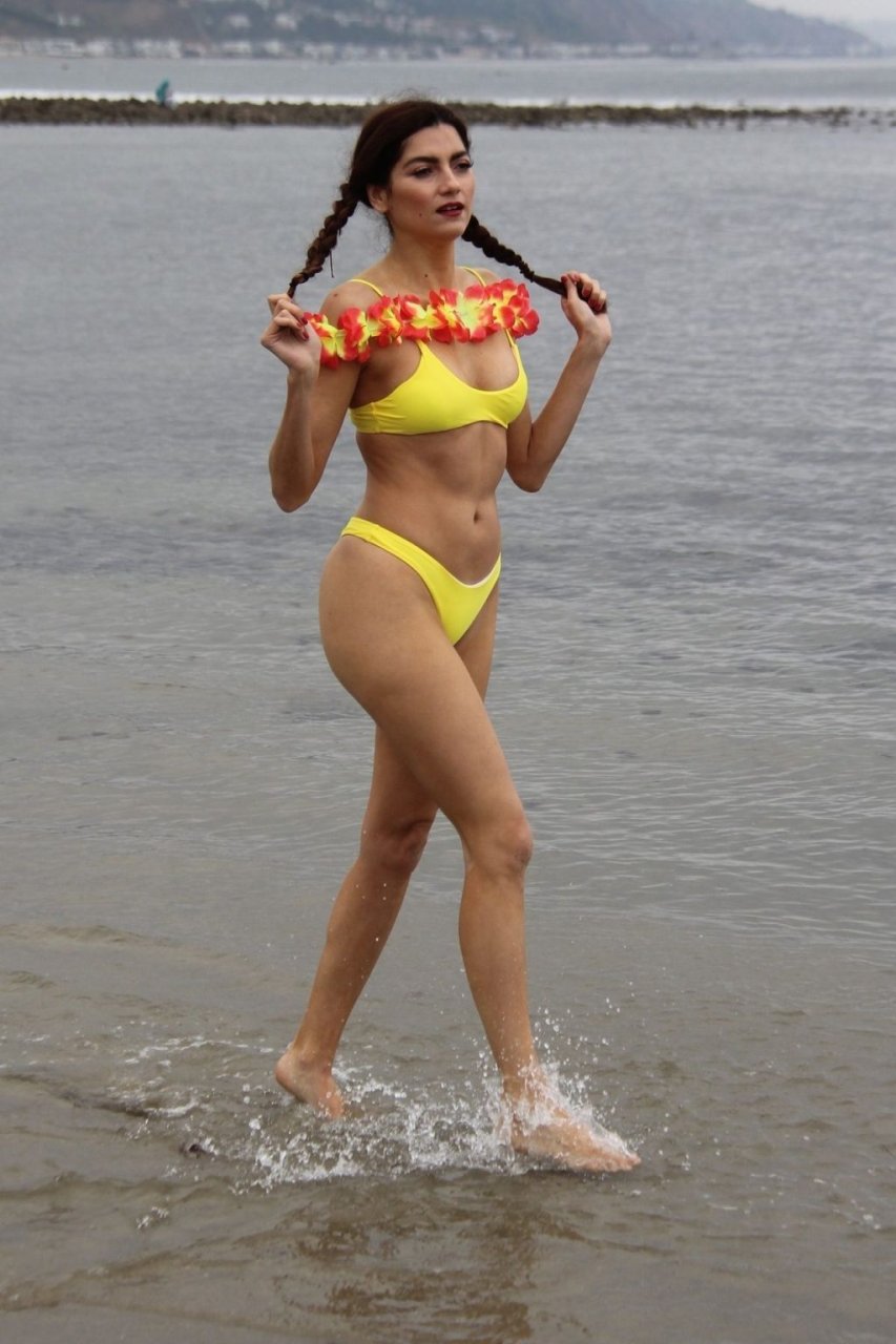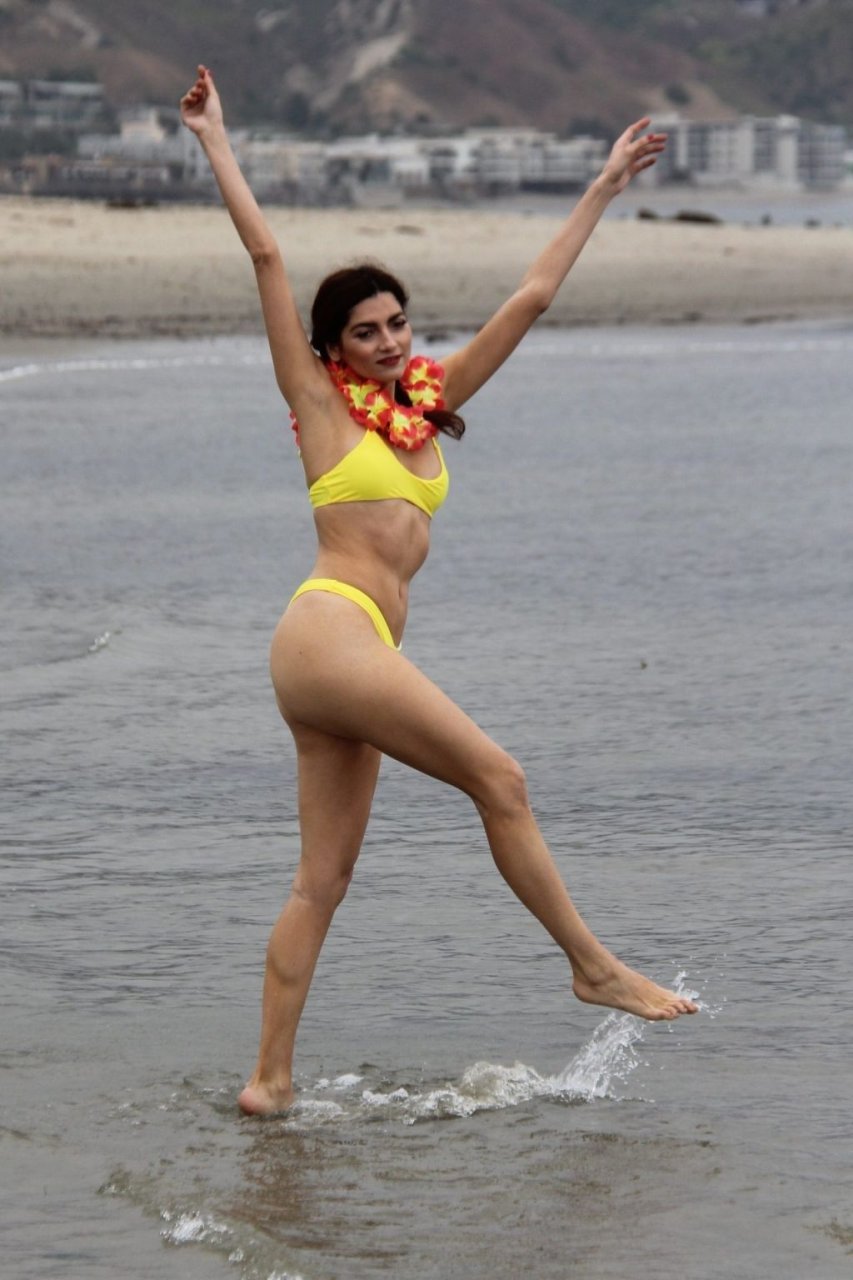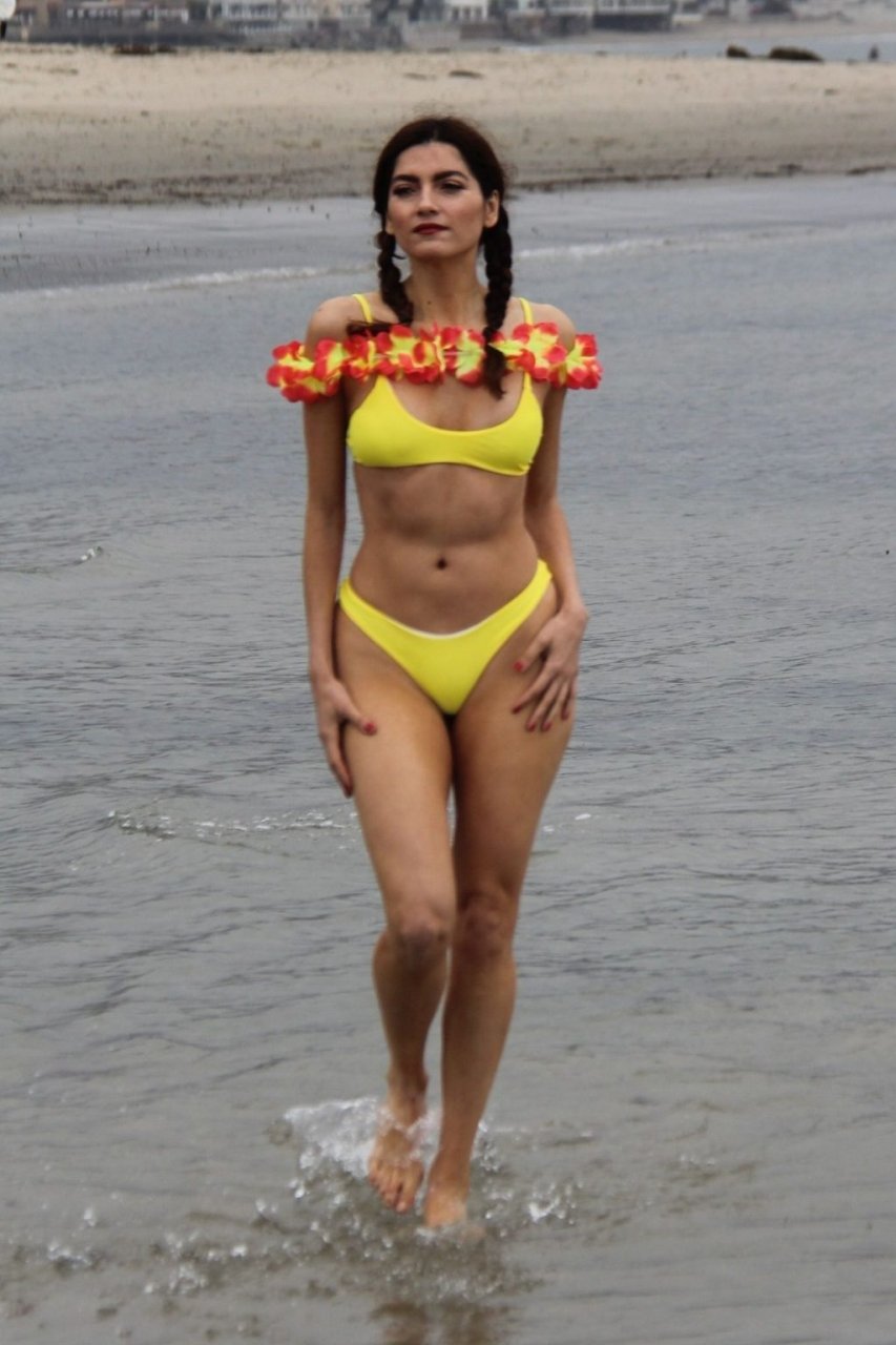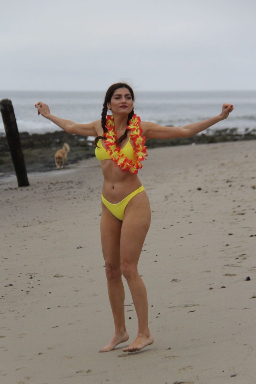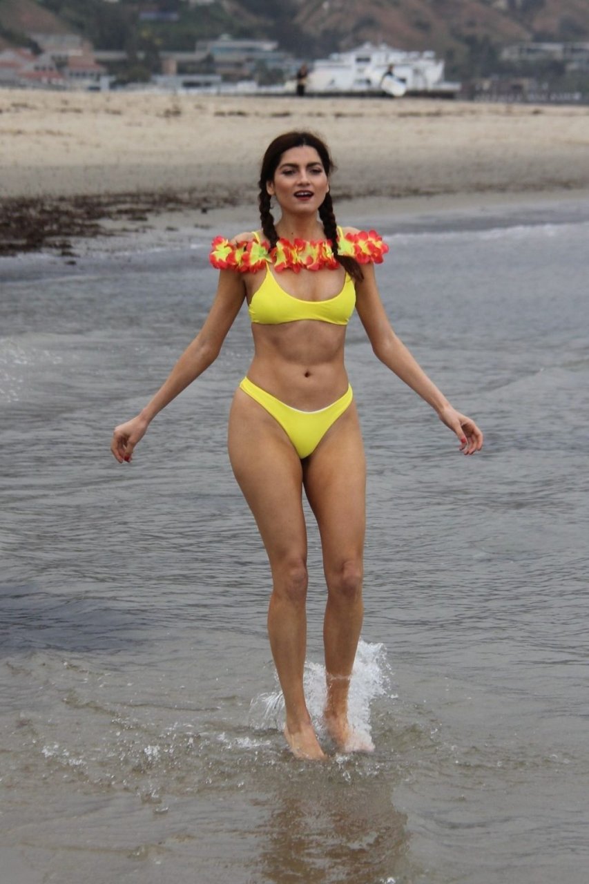 La actriz Blanca Blanco muestra su figura con un bikini amarillo mientras disfruta otro día en la playa en Malibu, 30/04/2019.