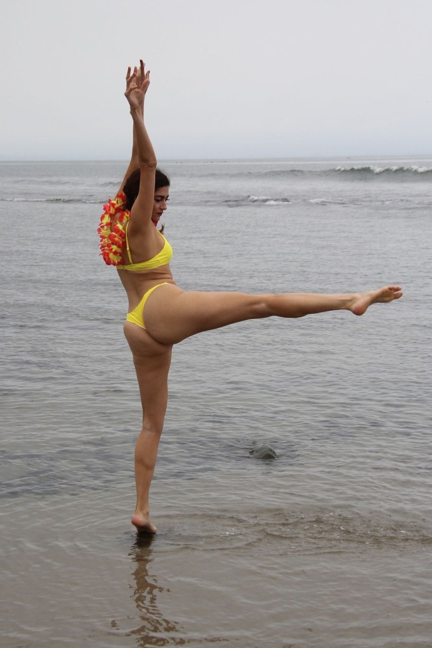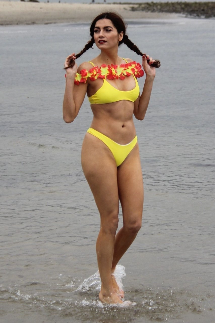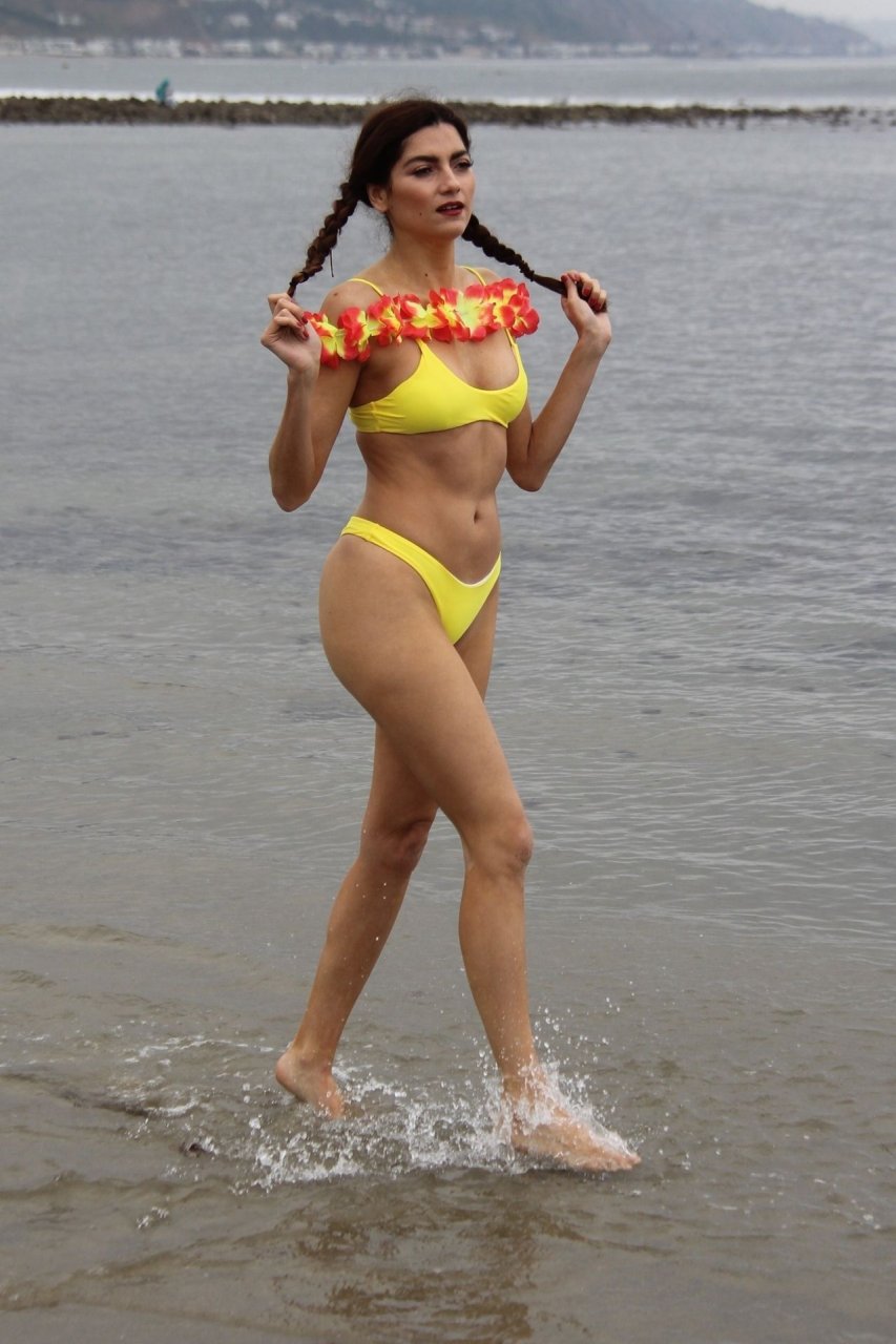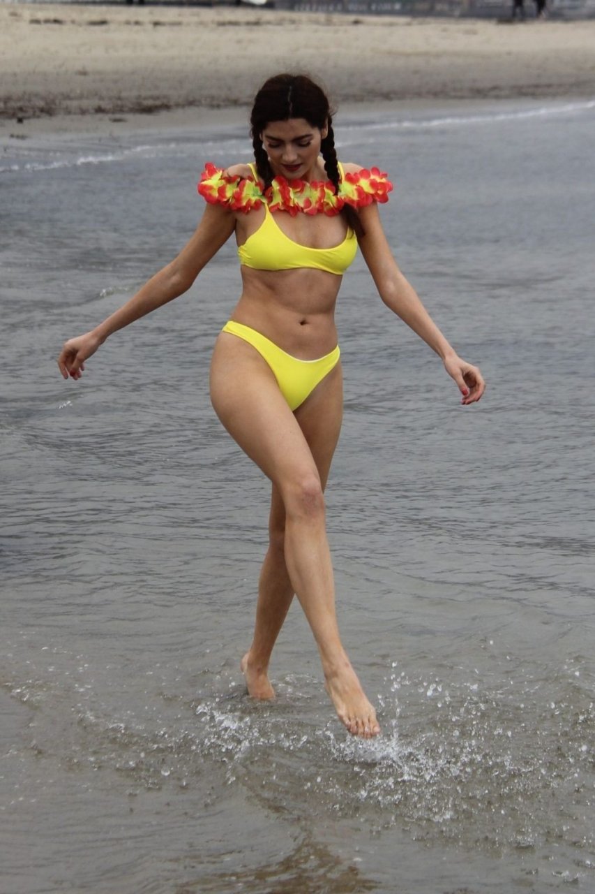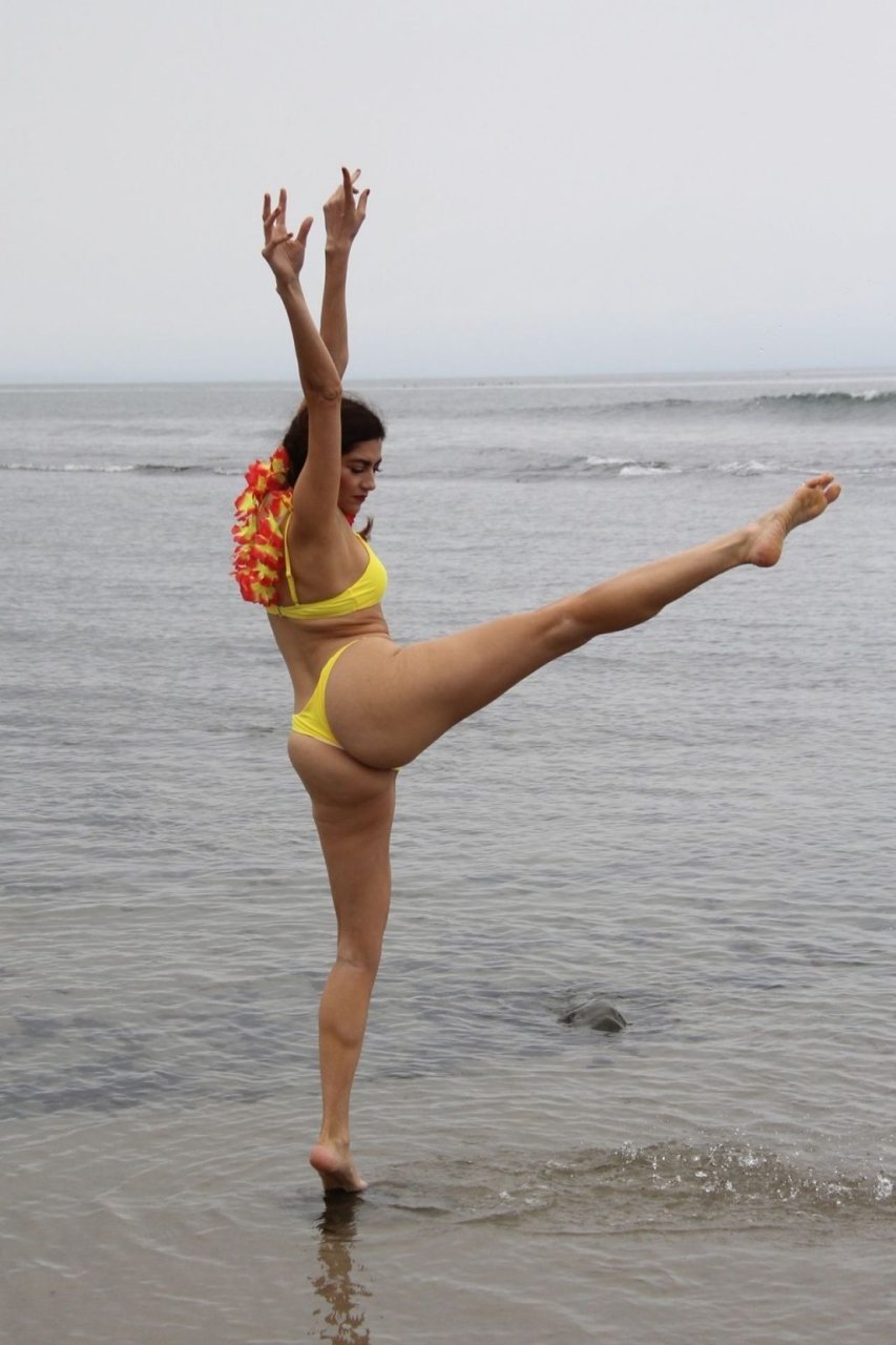 La actriz Blanca Blanco muestra su figura con un bikini amarillo mientras disfruta otro día en la playa en Malibu, 30/04/2019.