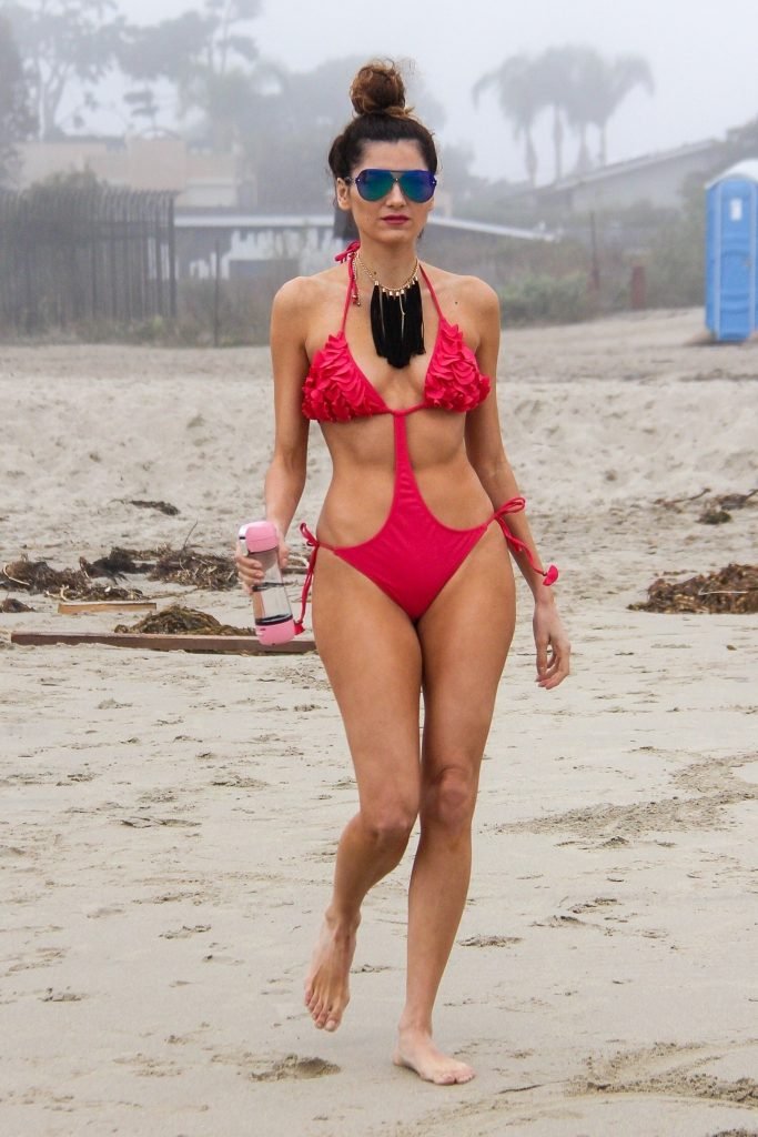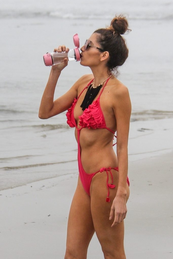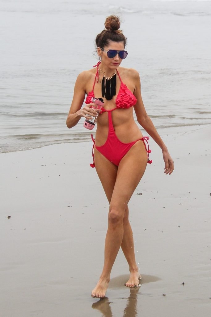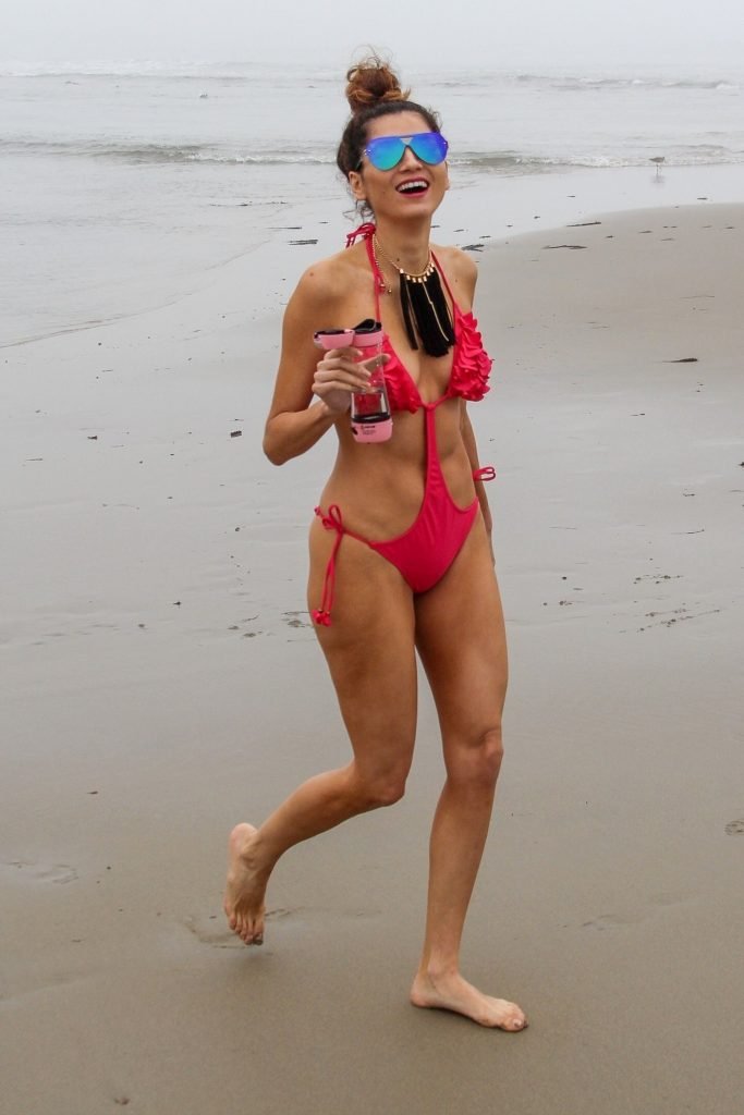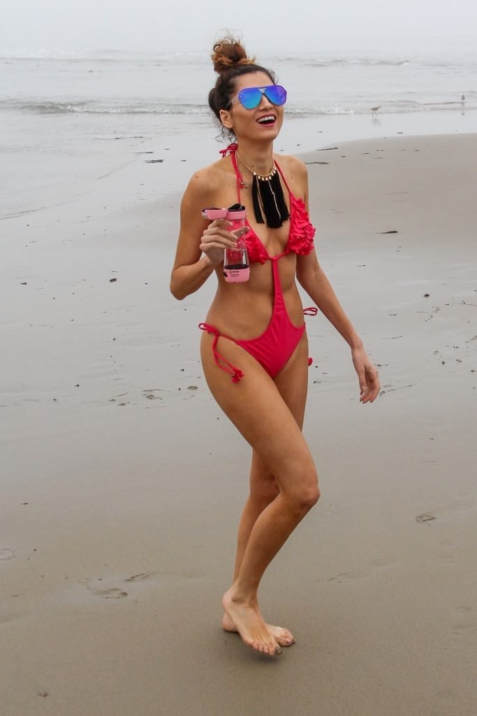 Actriz Blanca Blanco, 36, fue vista caminando con un traje de baño rojo de una pieza en la playa de Malibu, 15/01/2018.