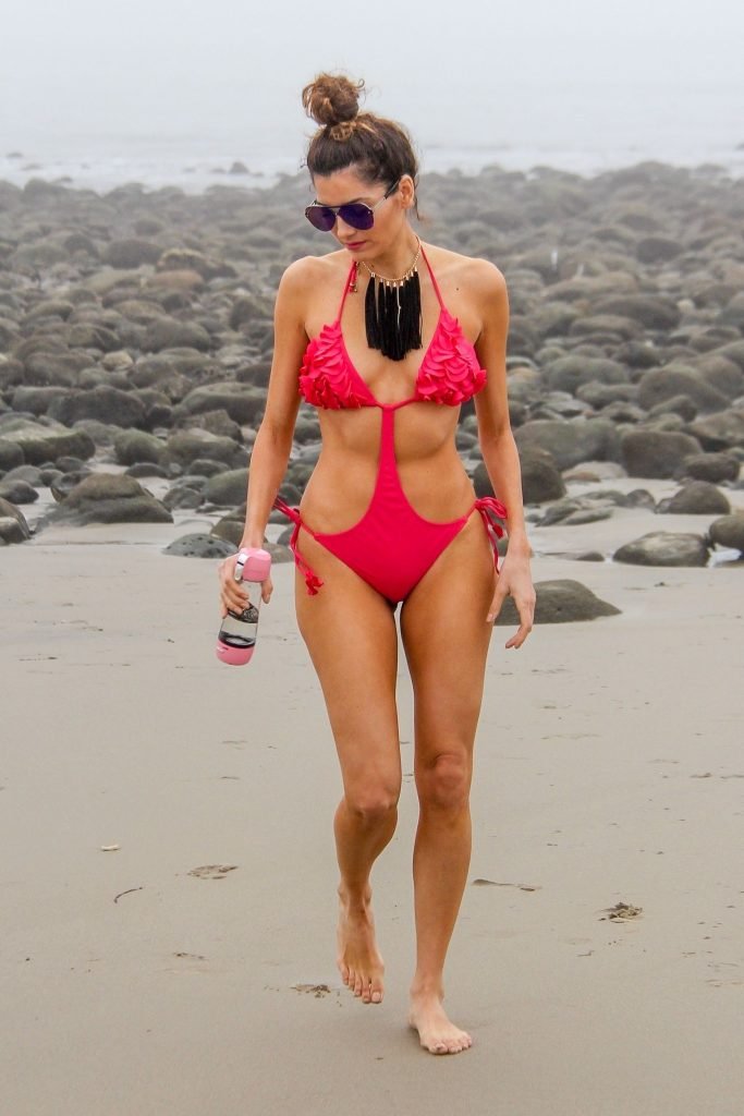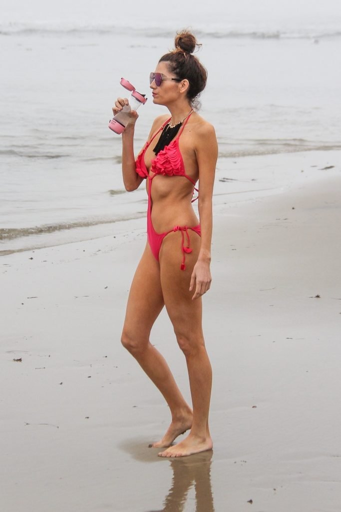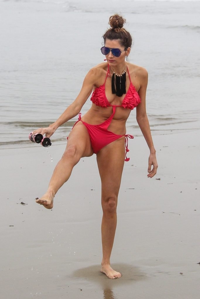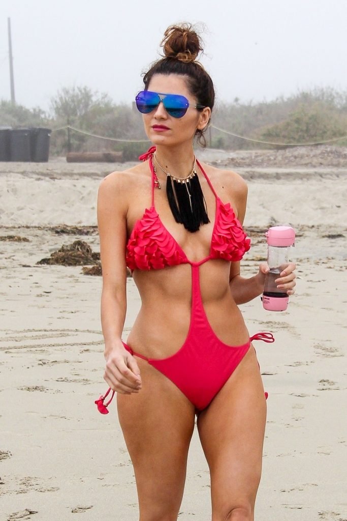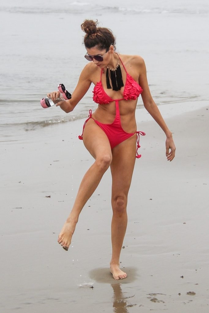 Actriz Blanca Blanco, 36, fue vista caminando con un traje de baño rojo de una pieza en la playa de Malibu, 15/01/2018.