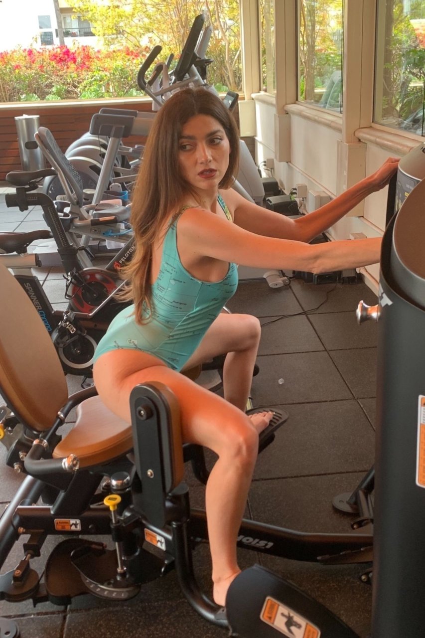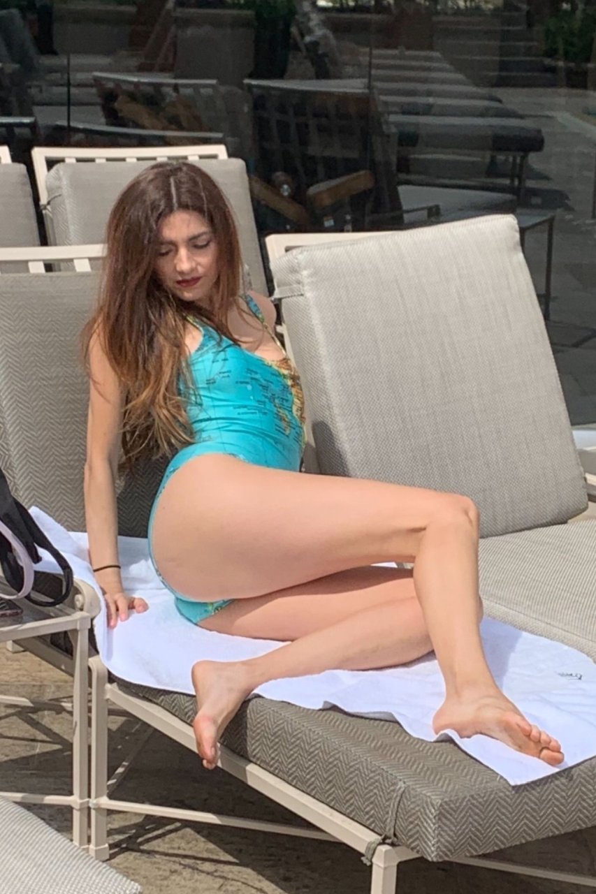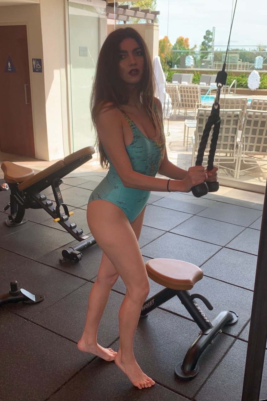 Blanca Blanco pasa el rato en el Hotel Four Seasons en Beverly Hills, 05/04/2019. La actriz nos muestra su rutina de fitness y luego se da un chapuzón en la piscina.