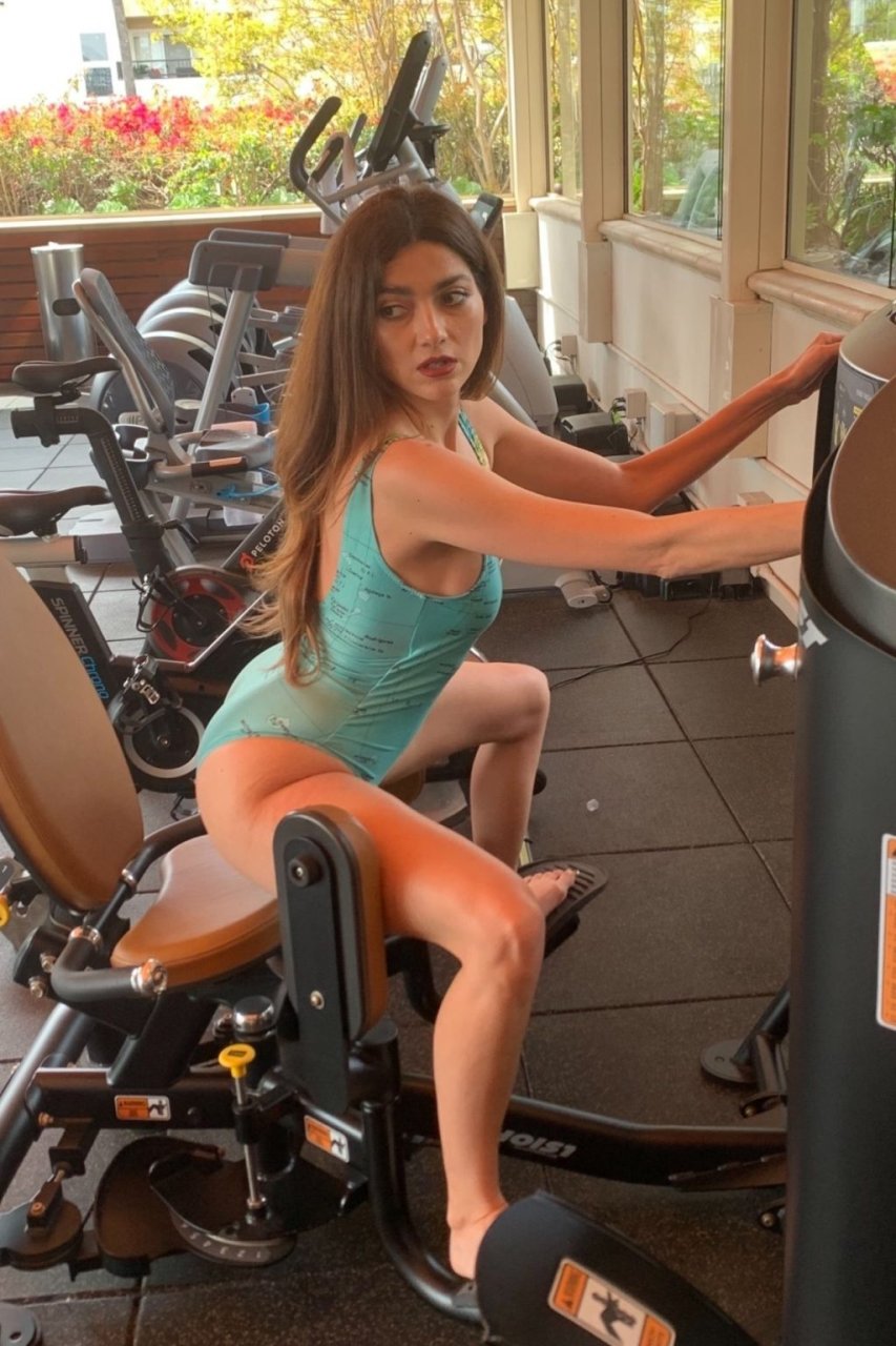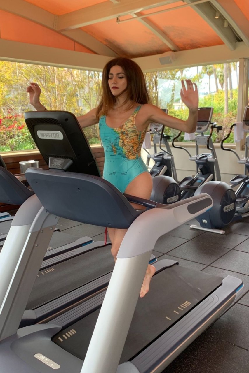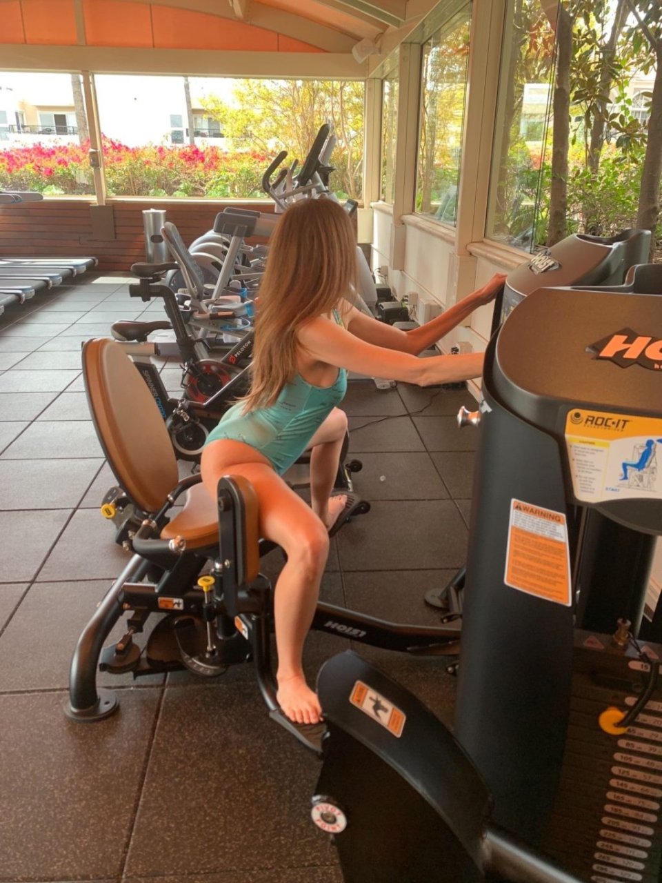 Blanca Blanco pasa el rato en el Hotel Four Seasons en Beverly Hills, 05/04/2019. La actriz nos muestra su rutina de fitness y luego se da un chapuzón en la piscina.