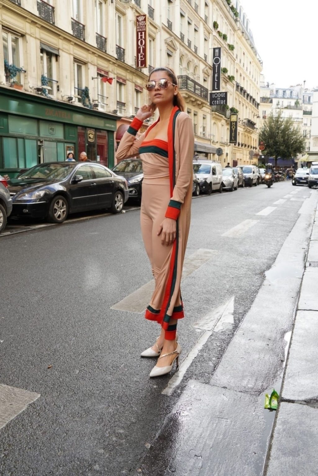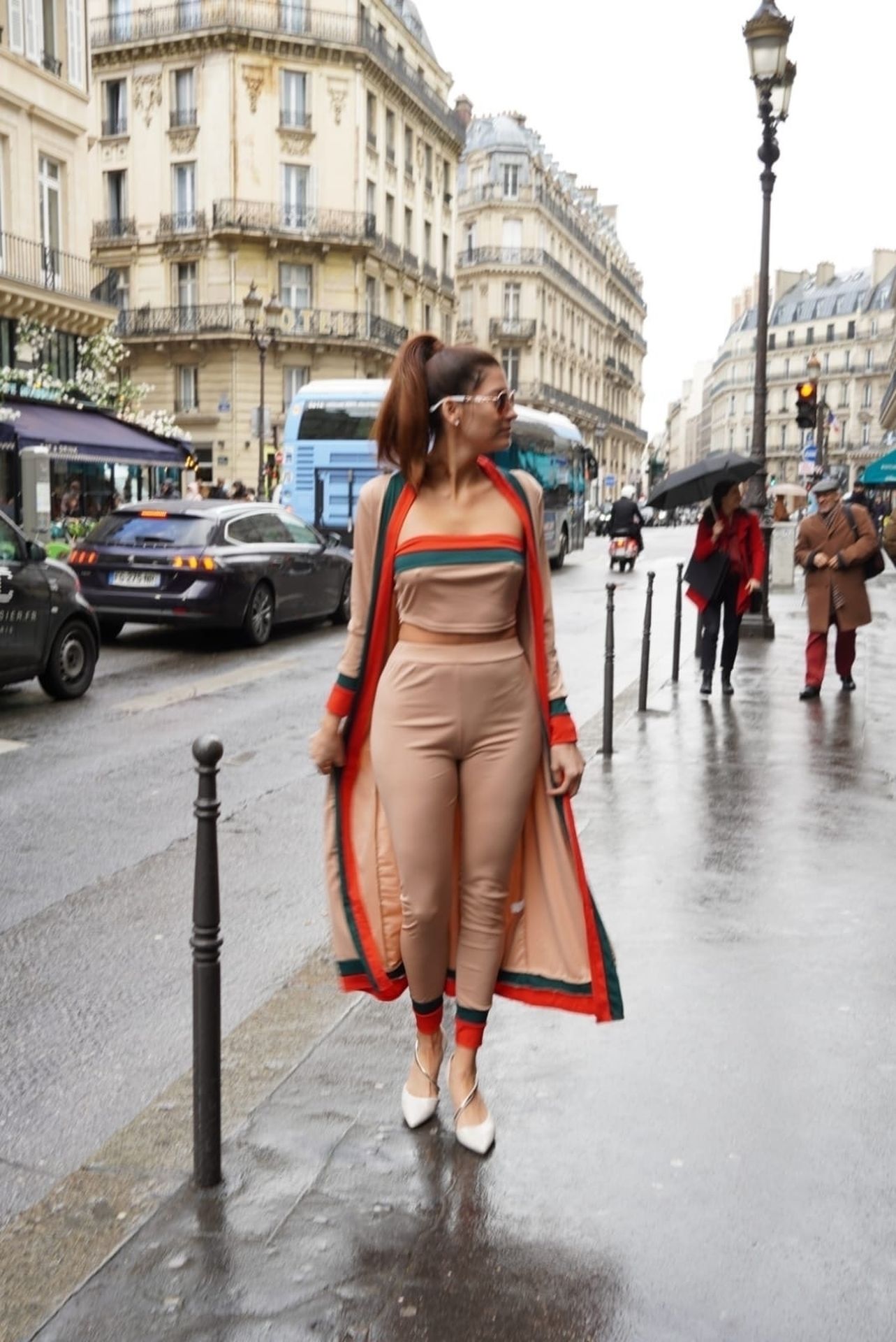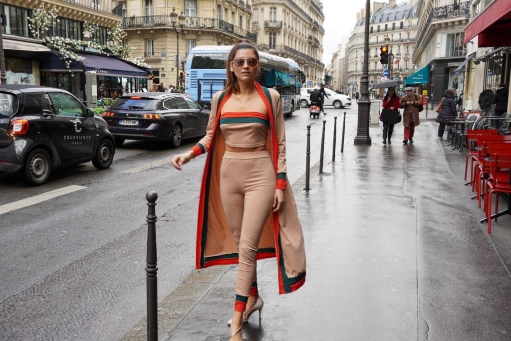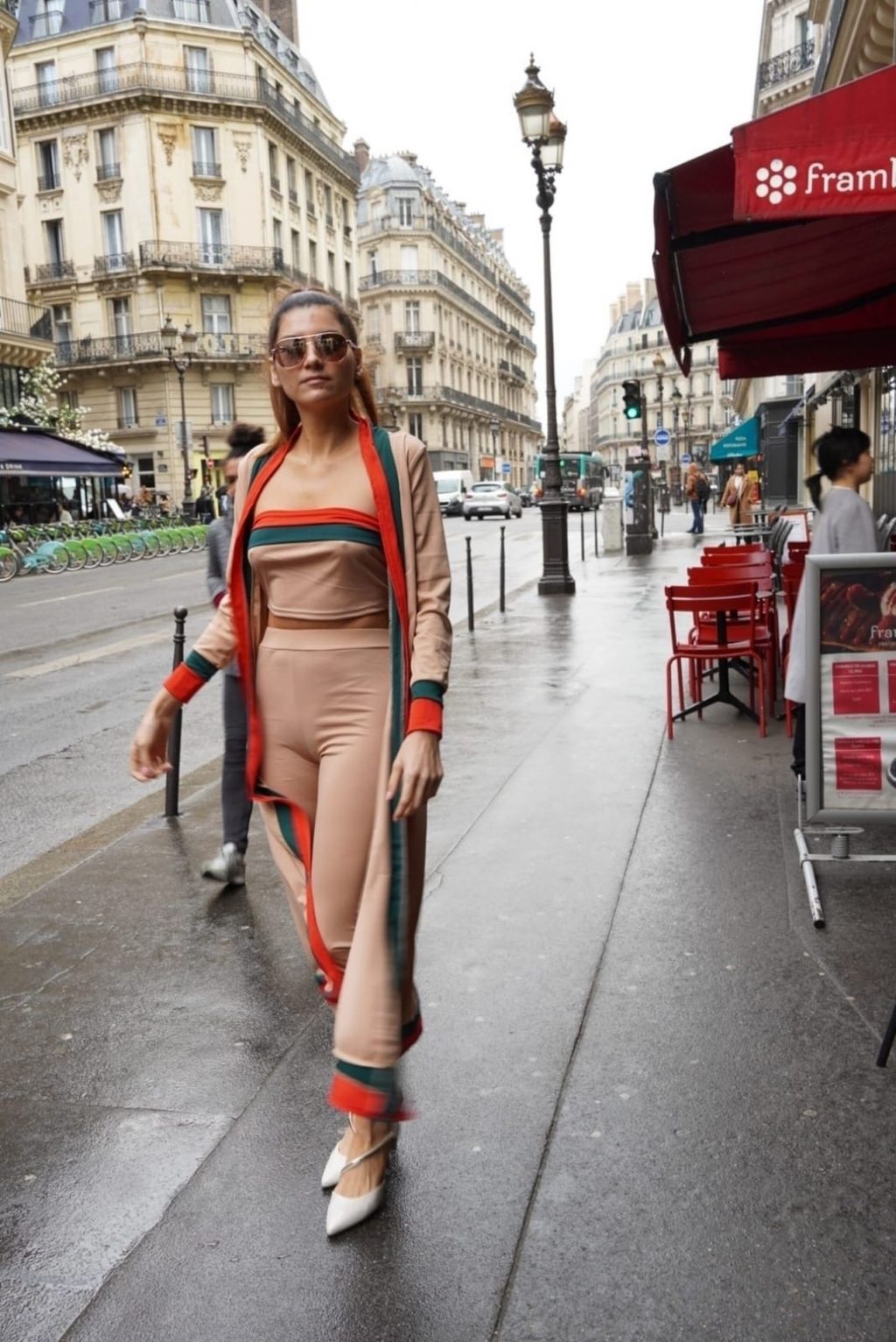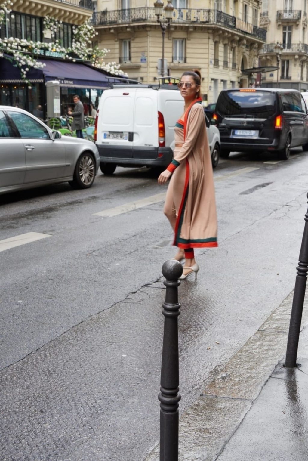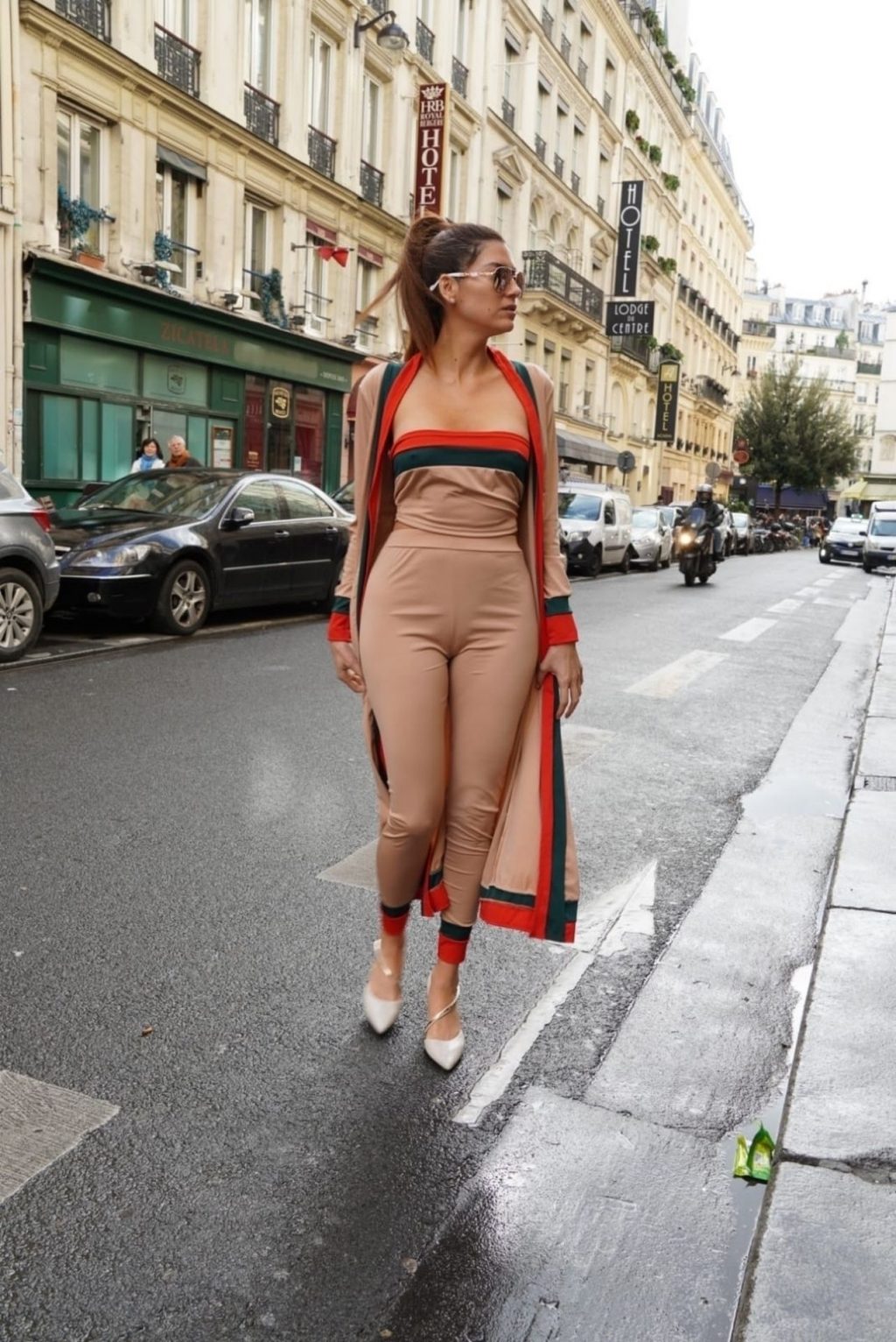 Actriz Blanca Blanco (39) posa para la Semana de la Moda de París, 01/03/2020. Ella posaba afuera sin sujetador.