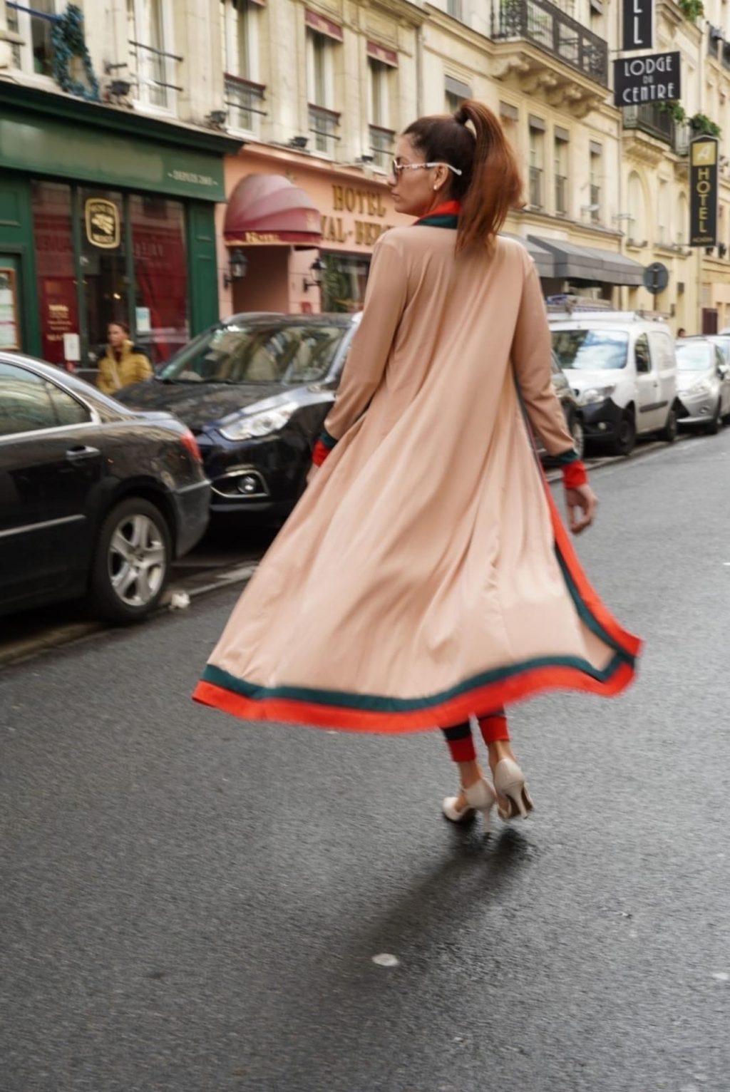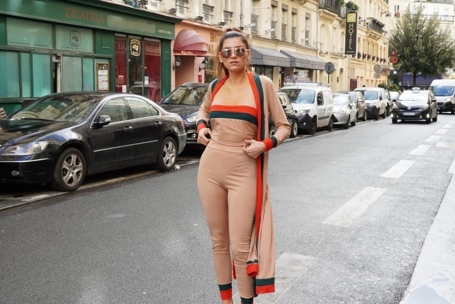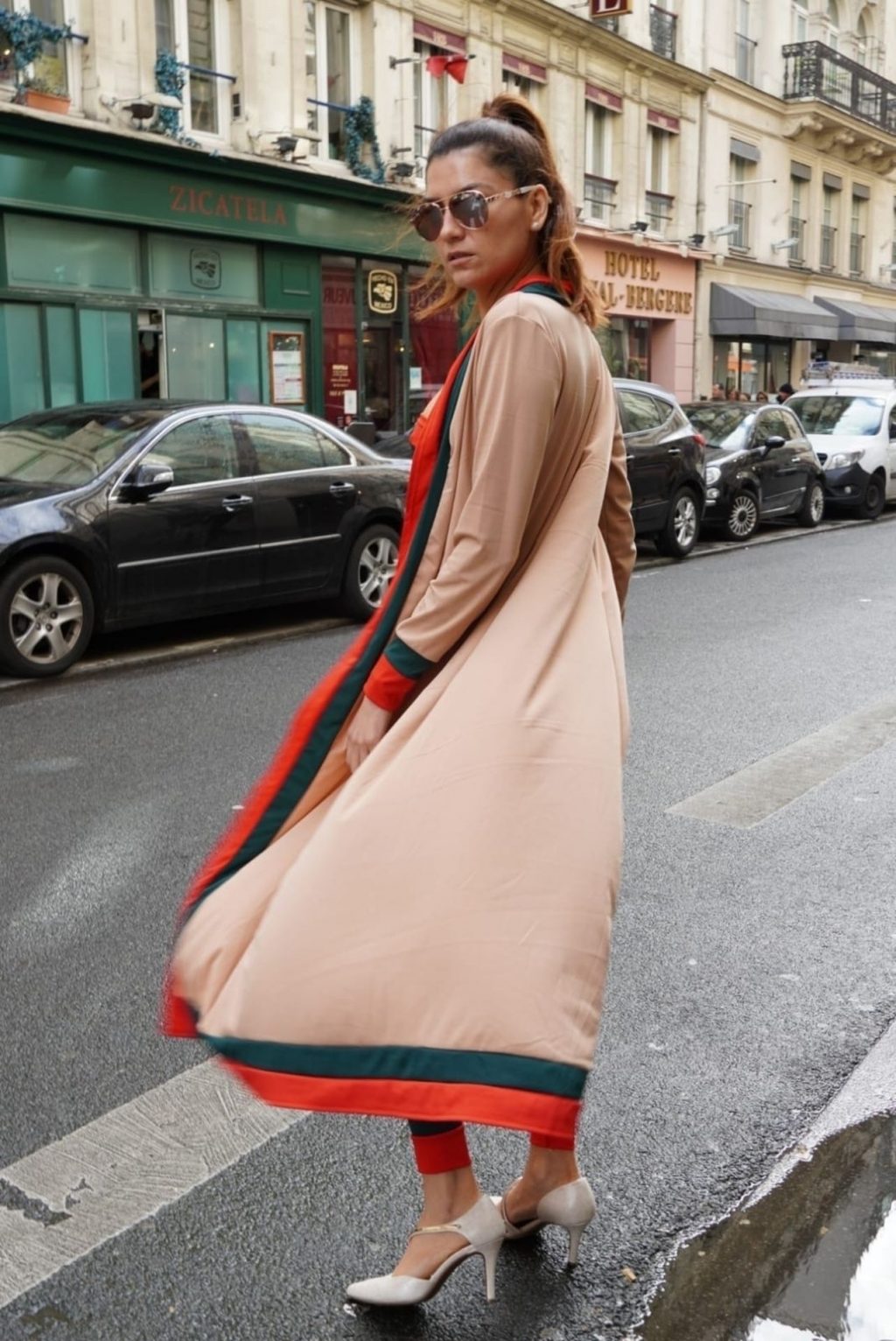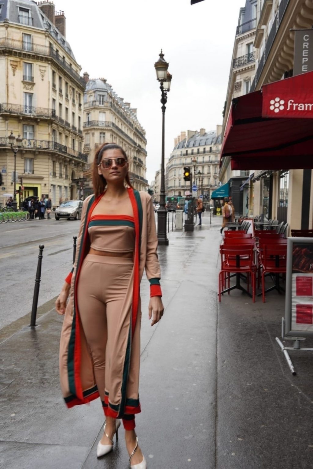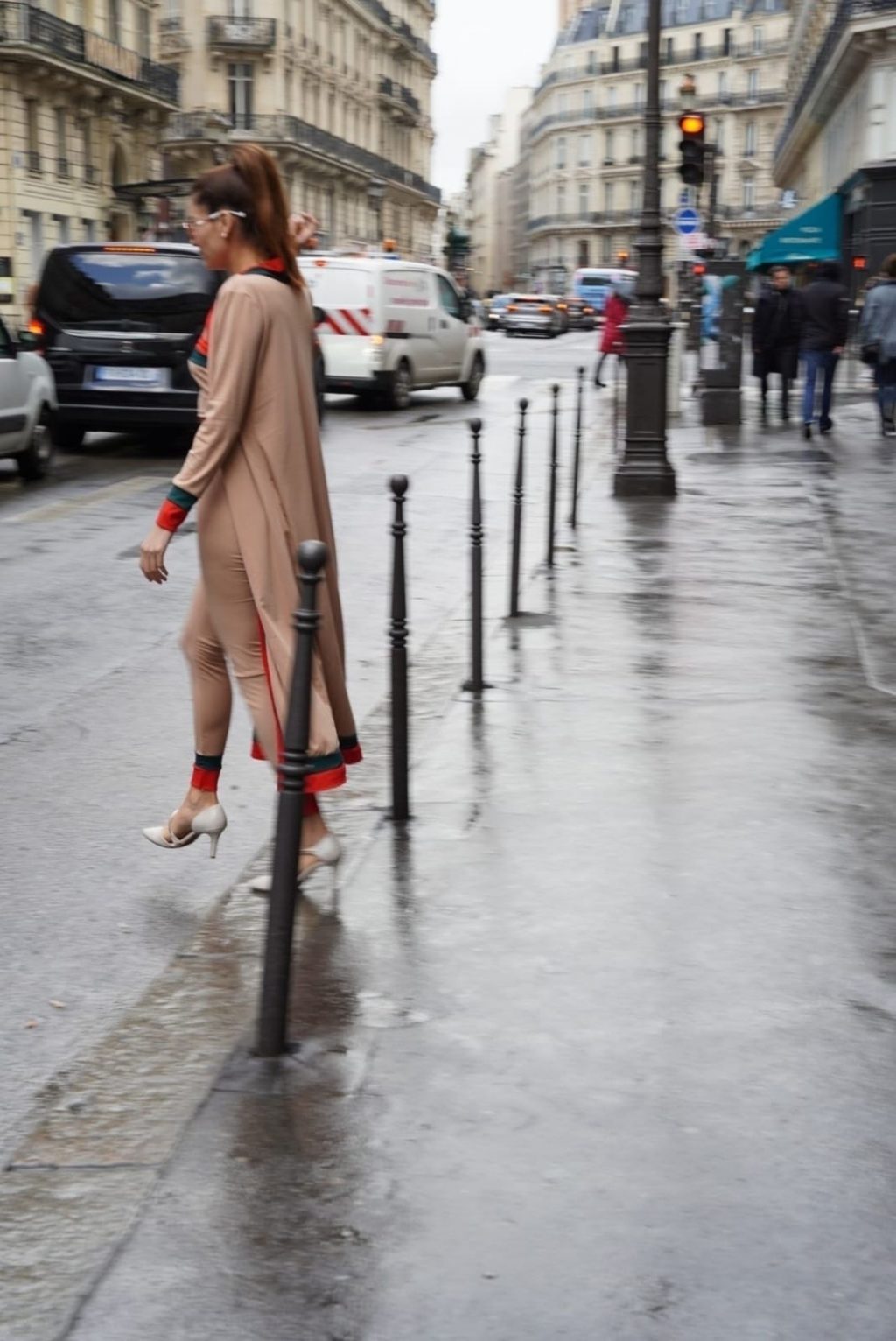 Actriz Blanca Blanco (39) posa para la Semana de la Moda de París, 01/03/2020. Ella posaba afuera sin sujetador.