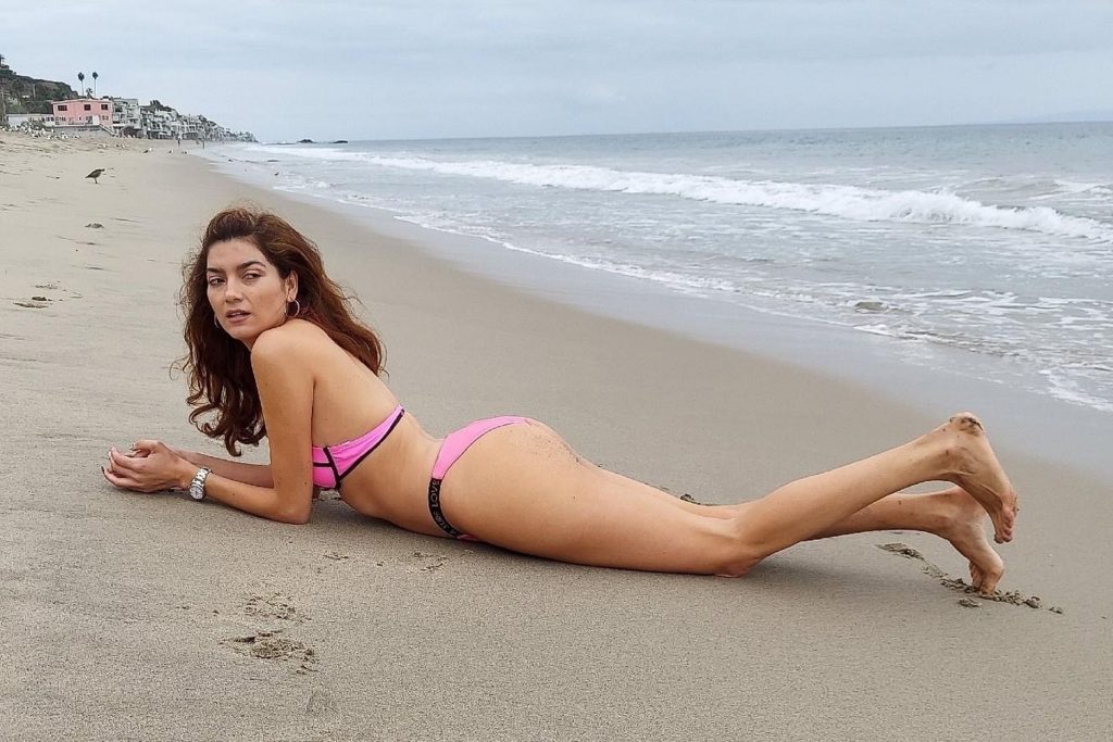 La actriz Blanca Blanco presume de su figura con un bikini rosa mientras está en la playa en Malibu, 25/10/2020.