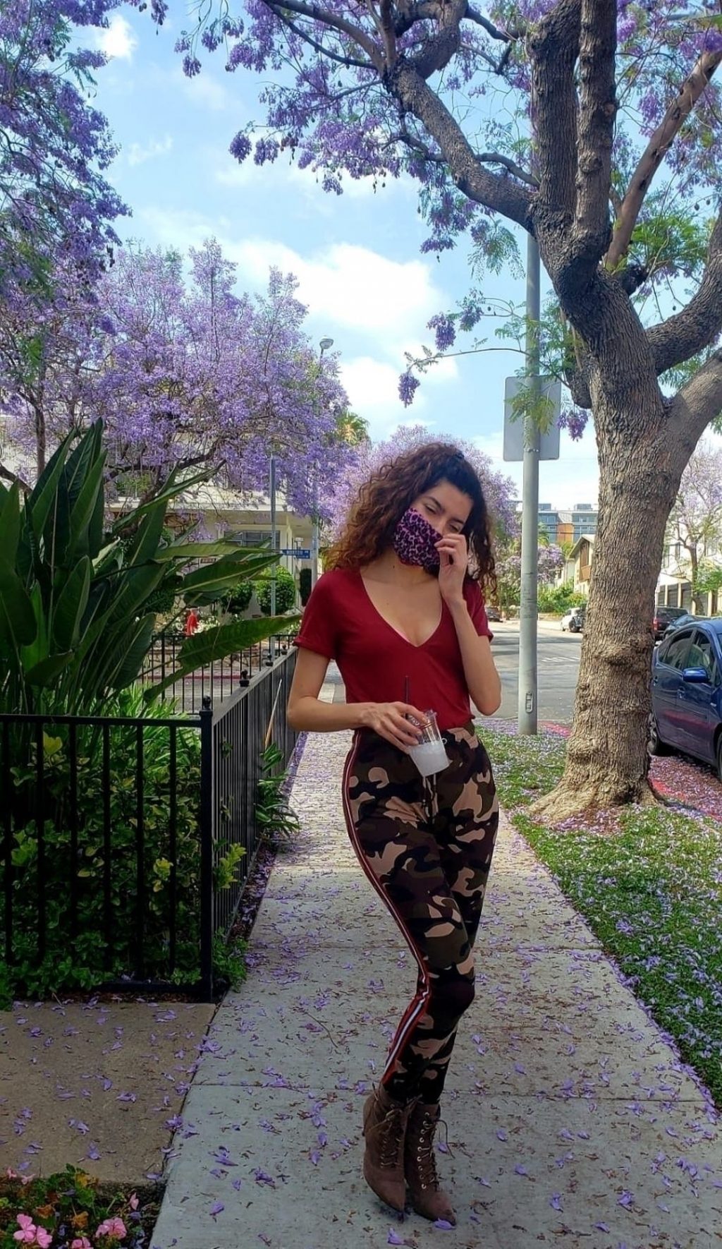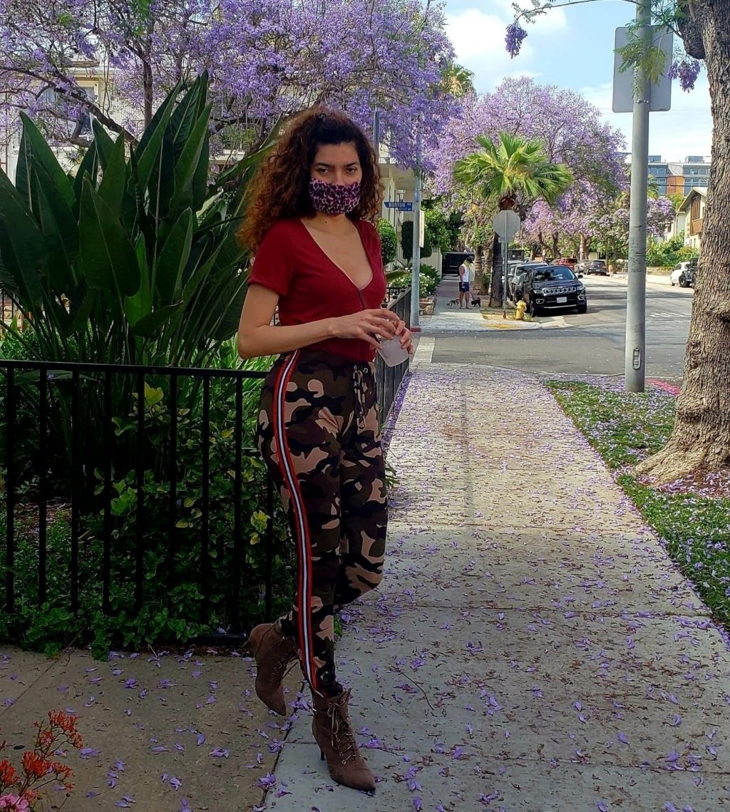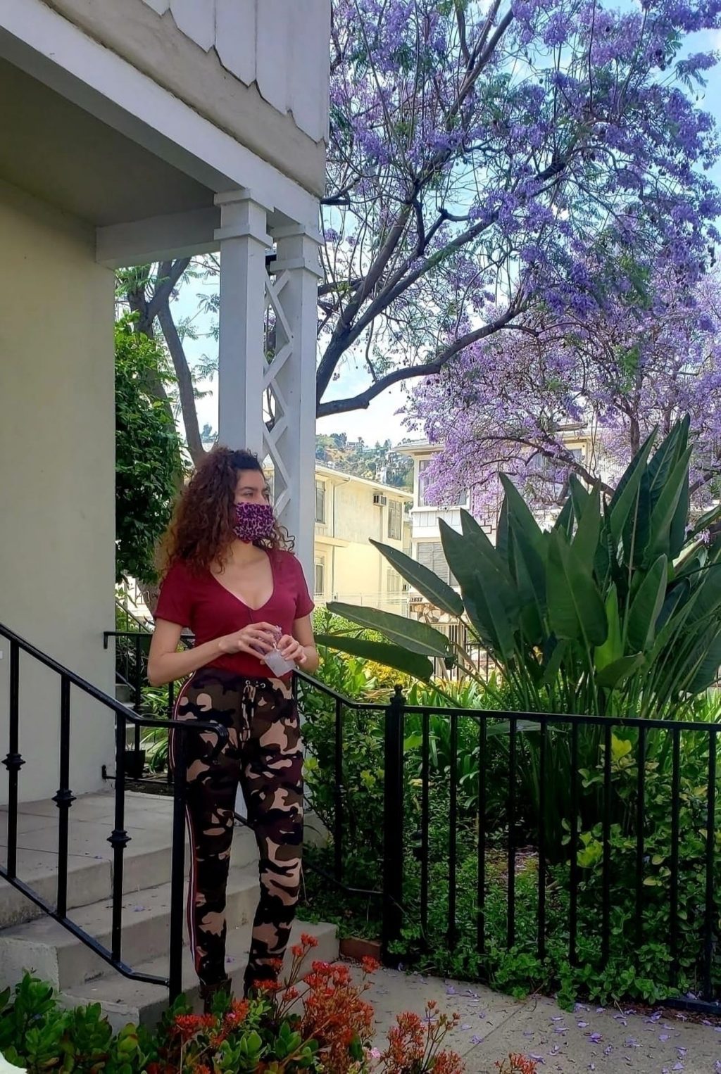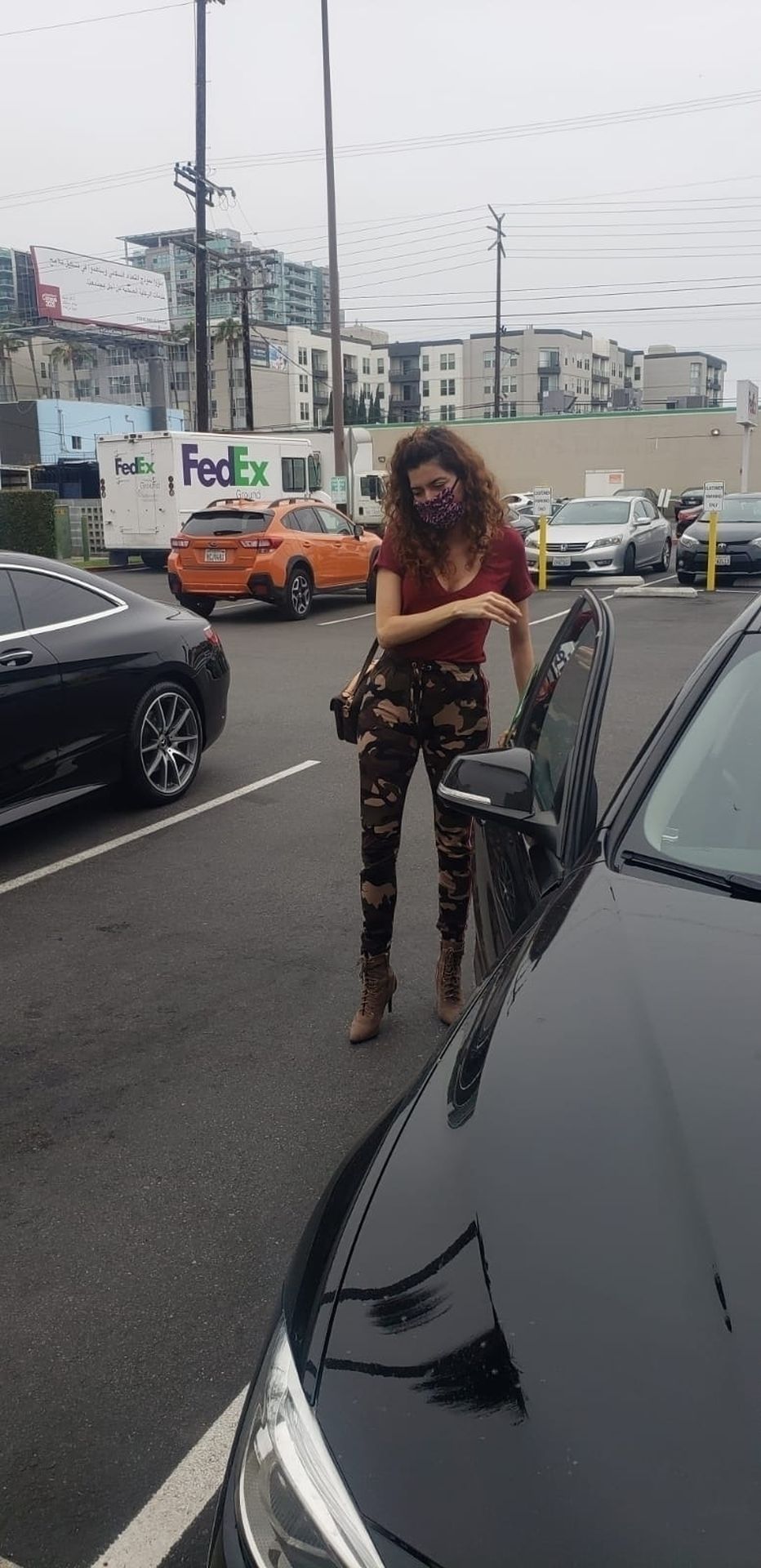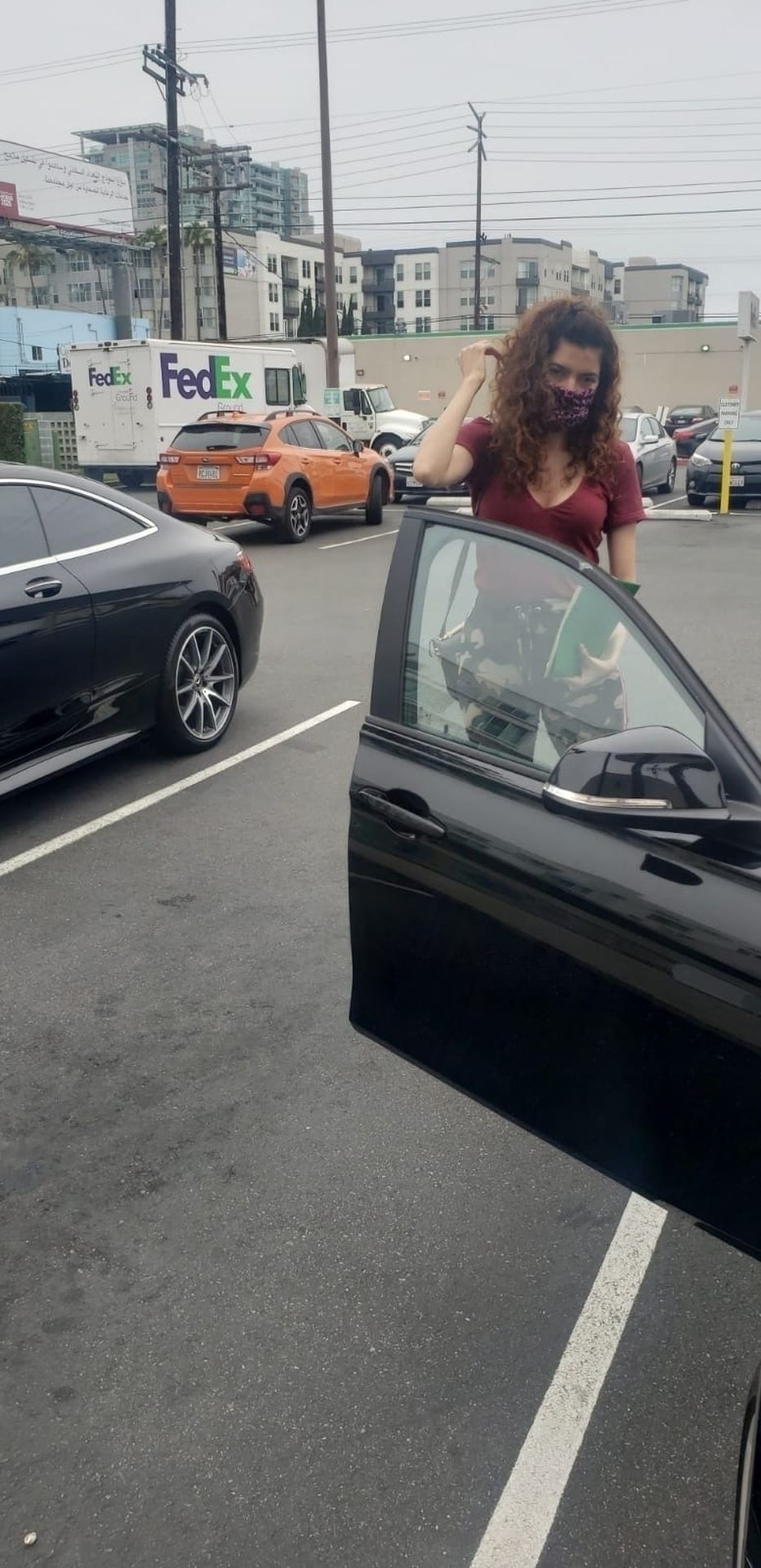 Blanca Blanco se dirige a FedEx en Los Ángeles, 30/05/2020. La actriz muestra su escote en la calle.