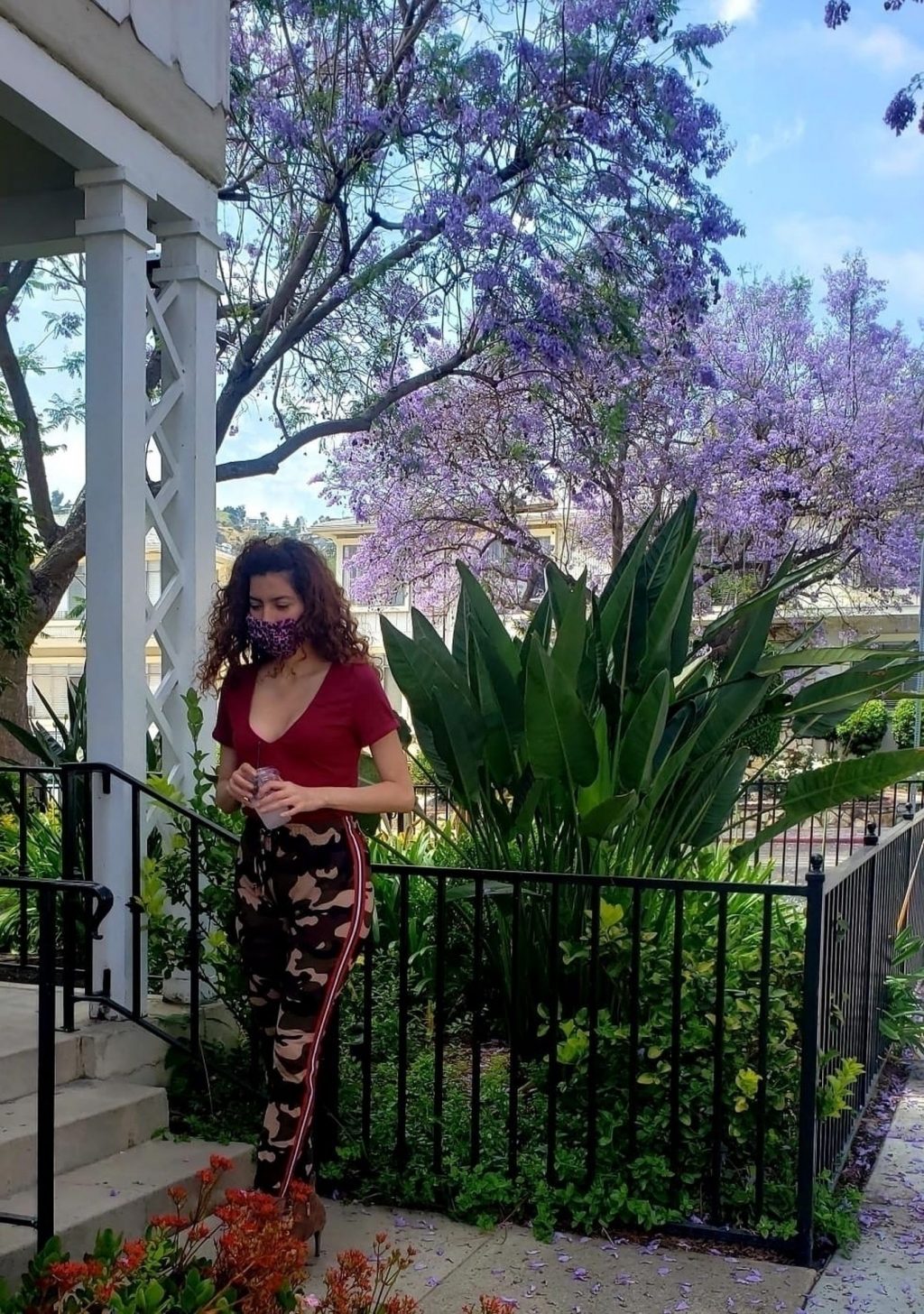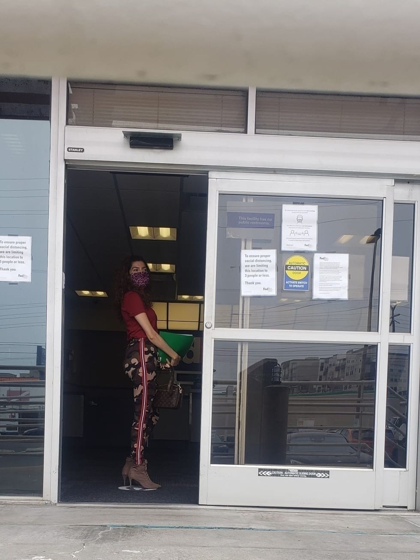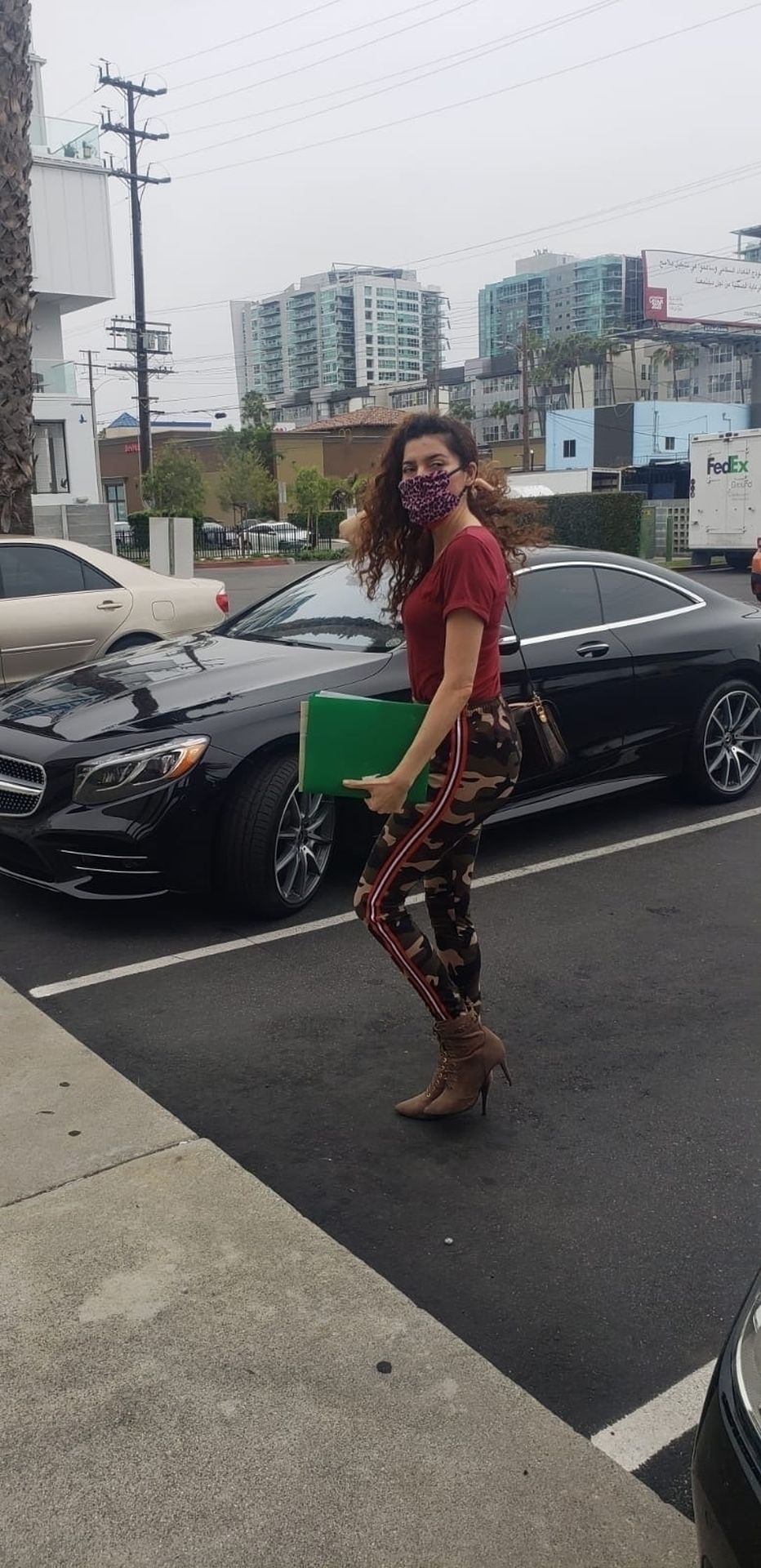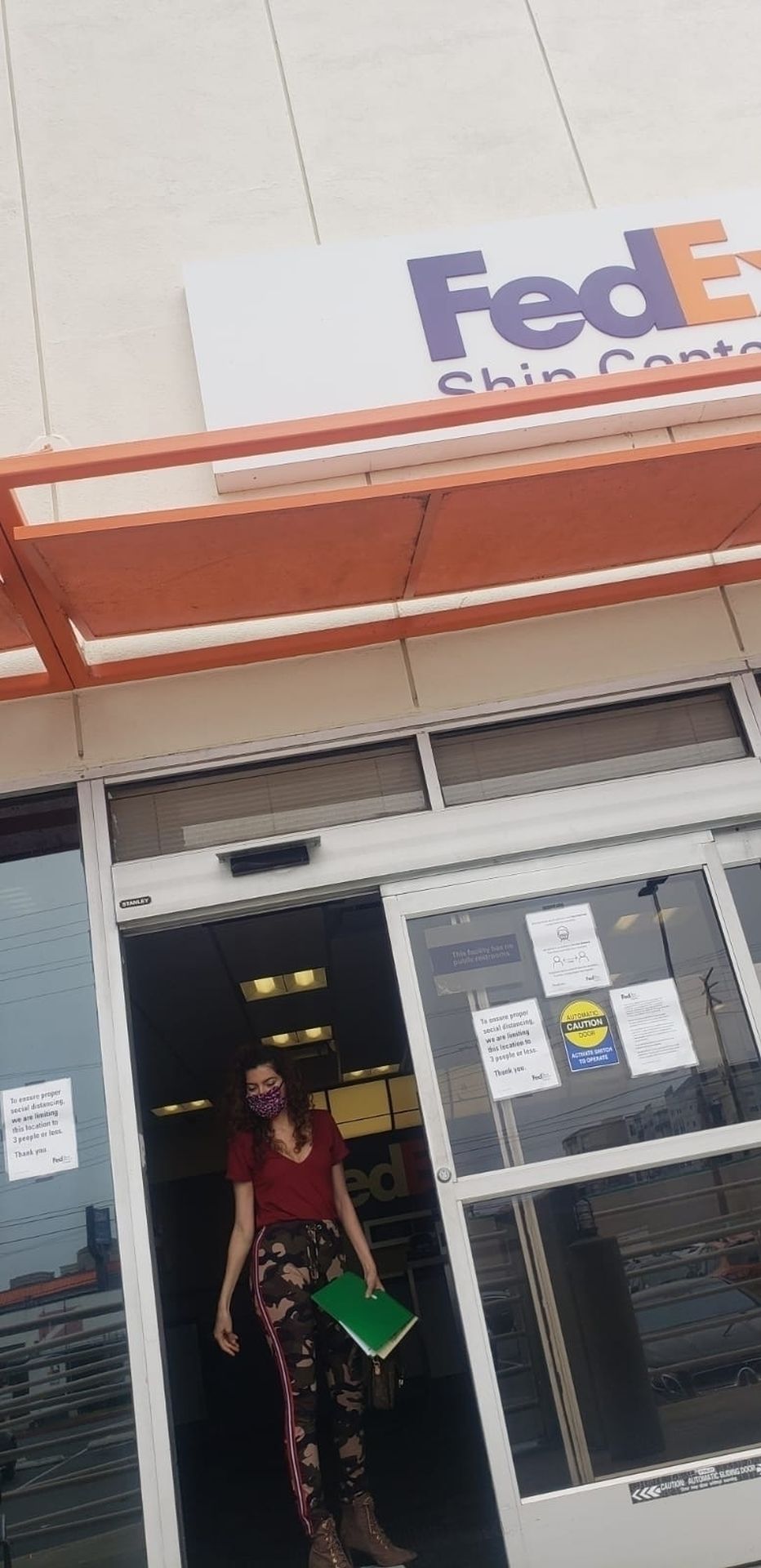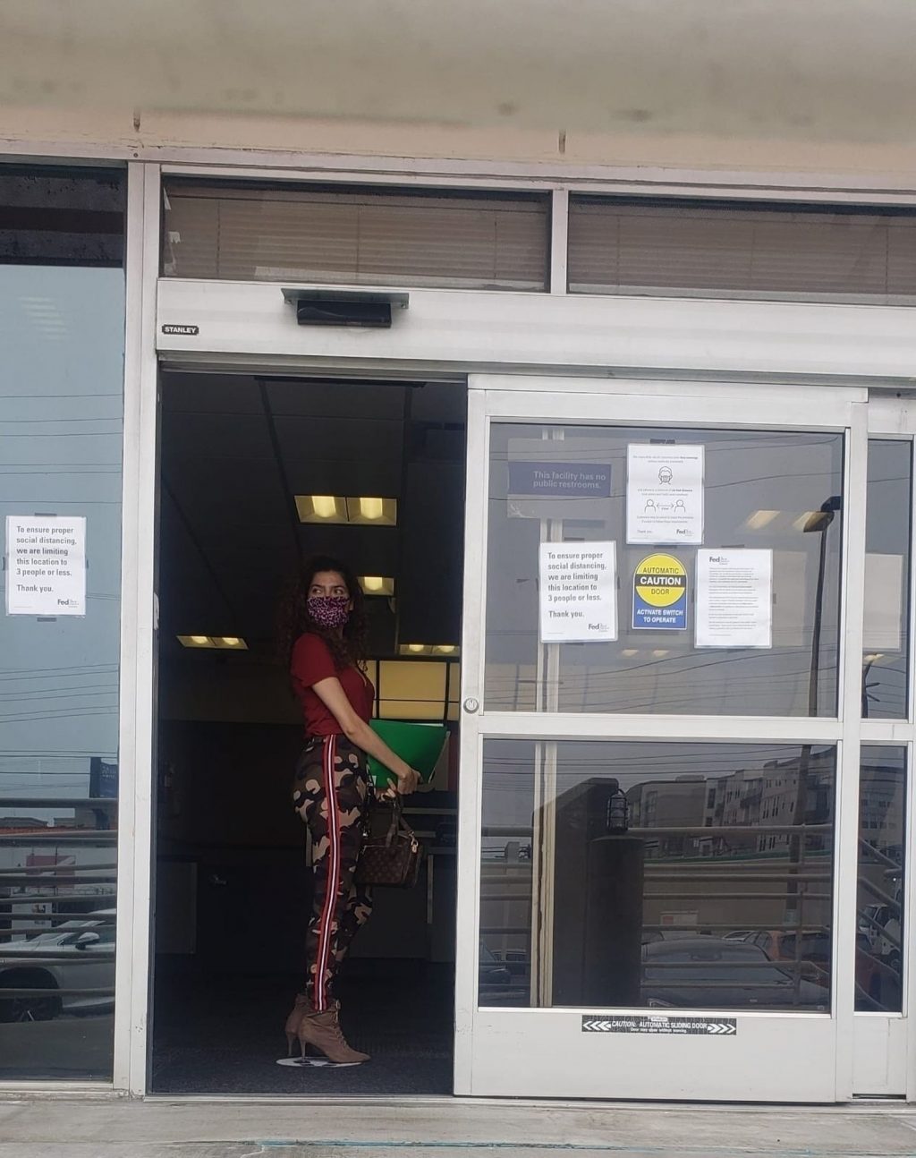 Blanca Blanco se dirige a FedEx en Los Ángeles, 30/05/2020. La actriz muestra su escote en la calle.