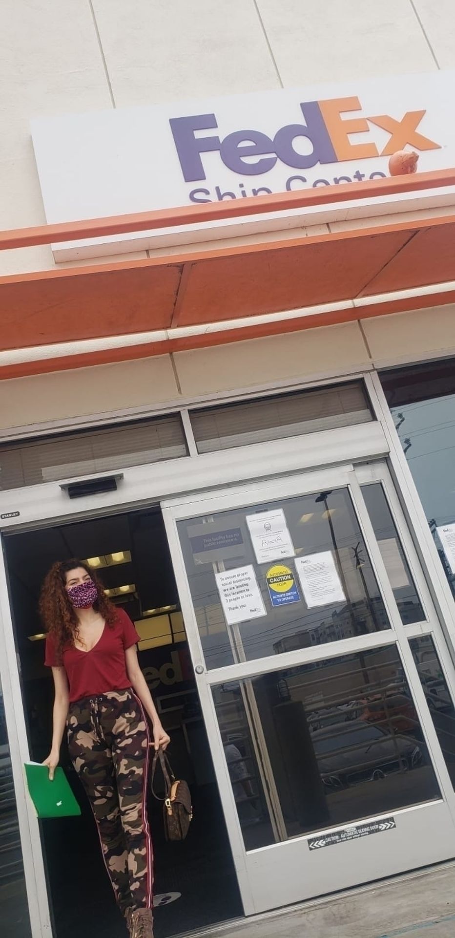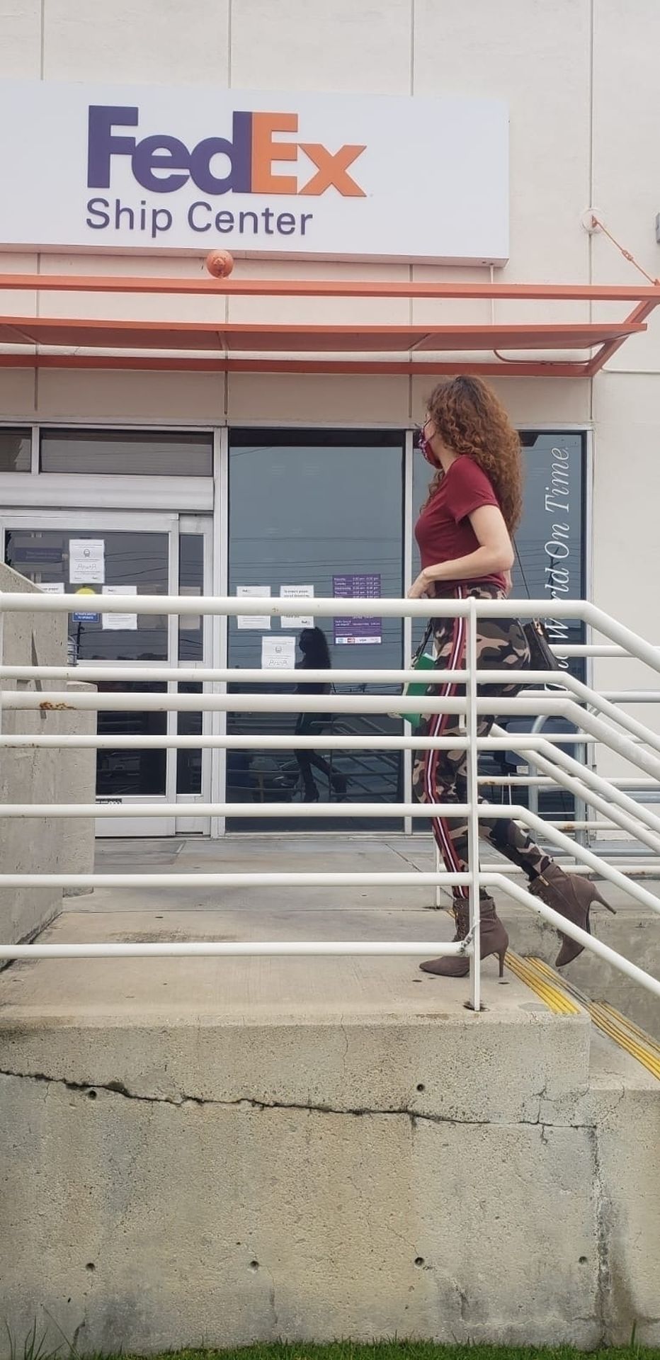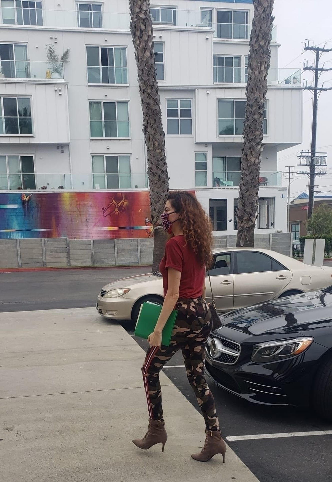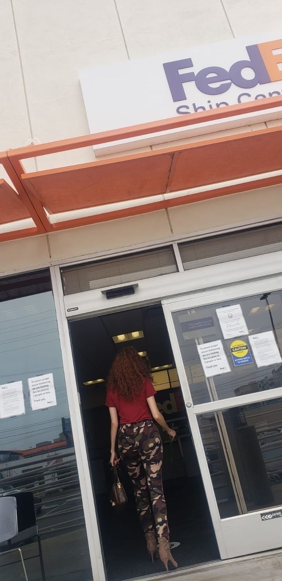 Blanca Blanco se dirige a FedEx en Los Ángeles, 30/05/2020. La actriz muestra su escote en la calle.