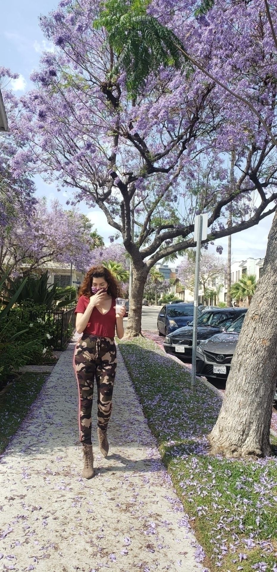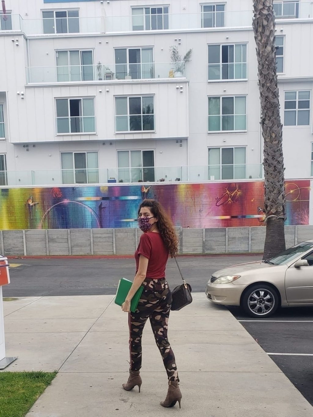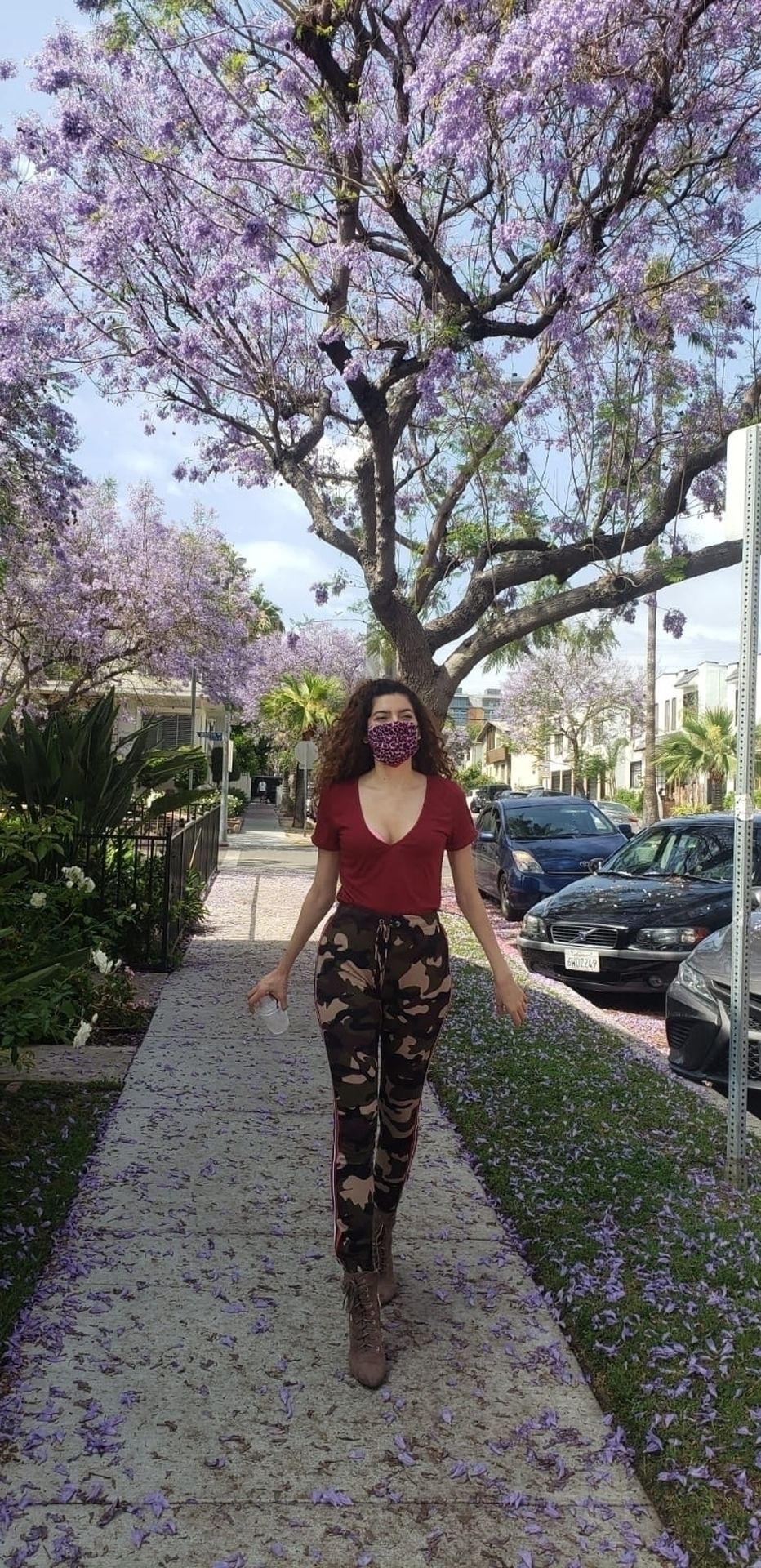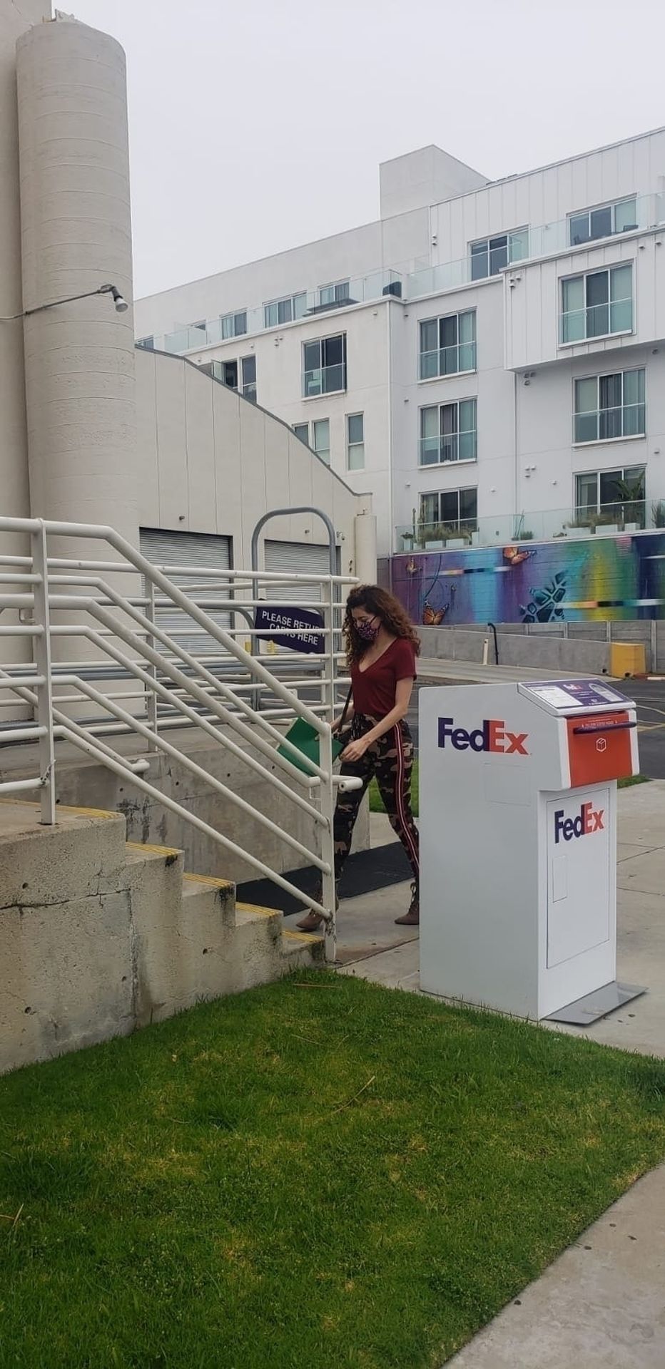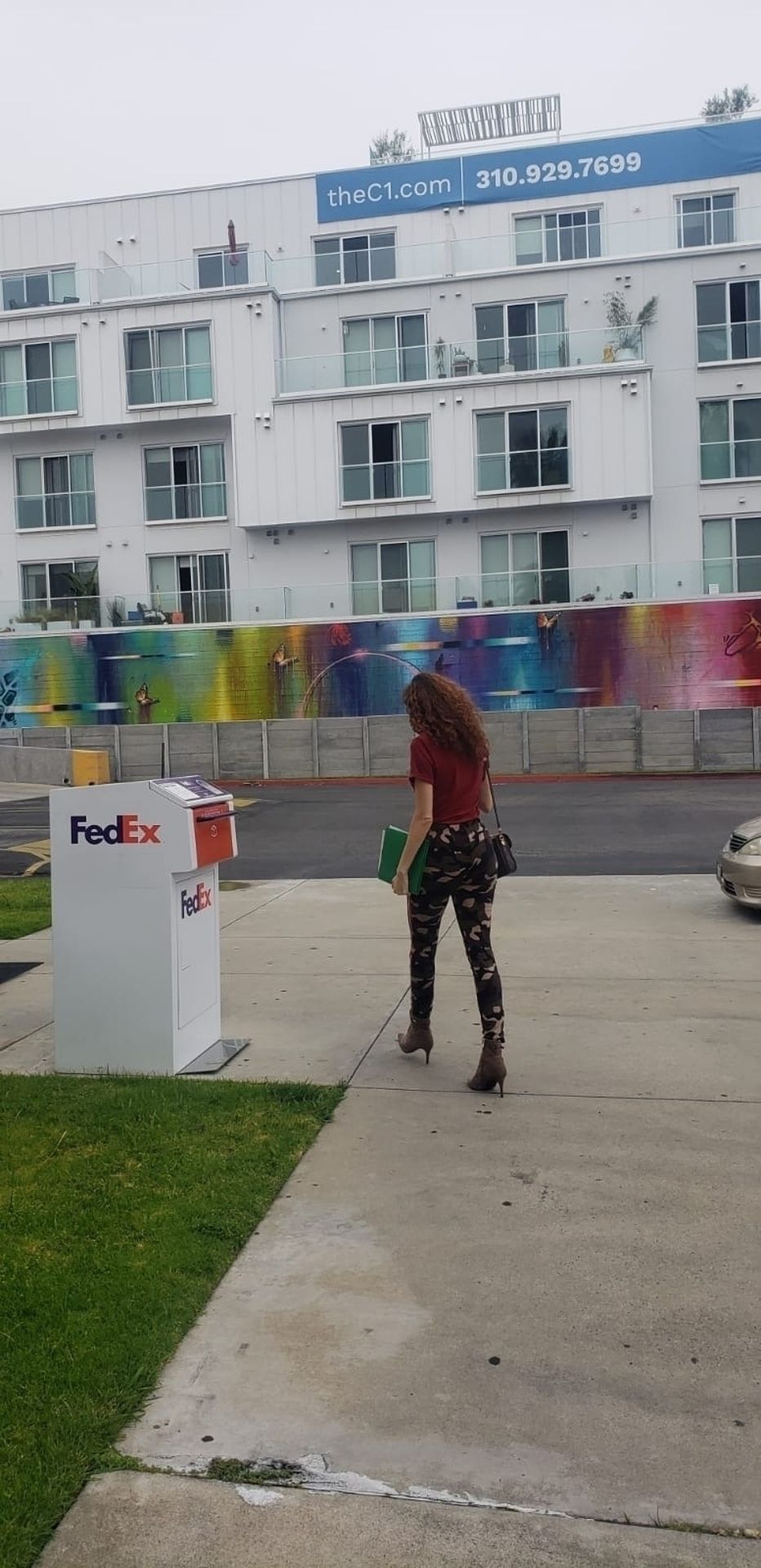 Blanca Blanco se dirige a FedEx en Los Ángeles, 30/05/2020. La actriz muestra su escote en la calle.