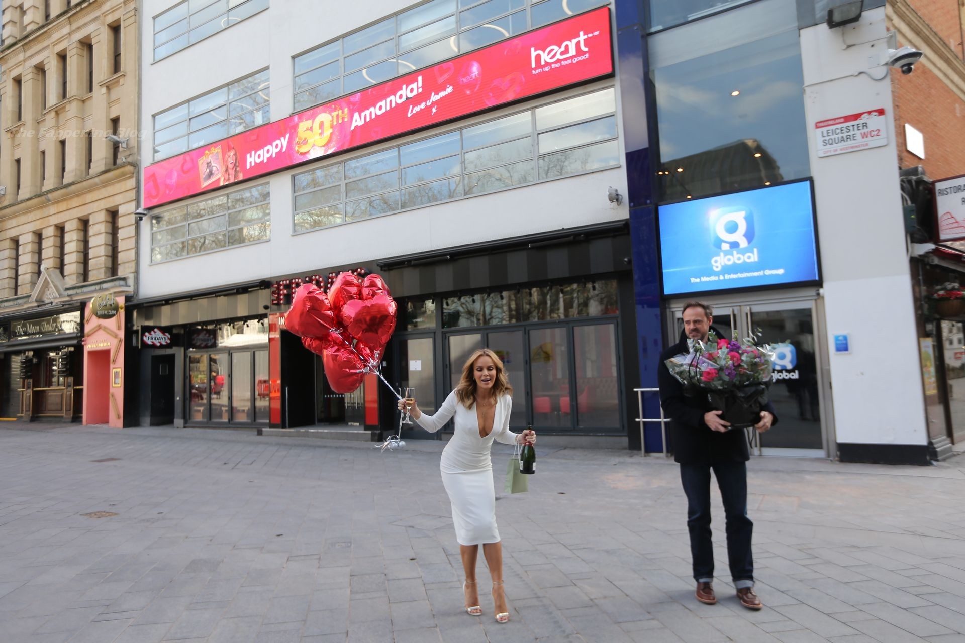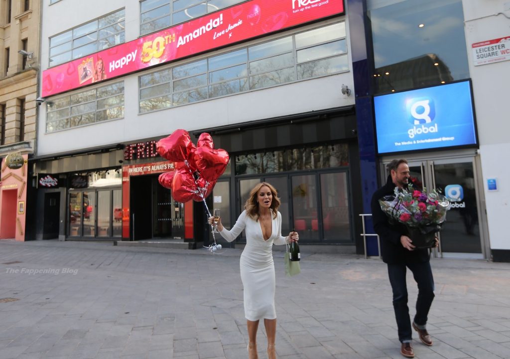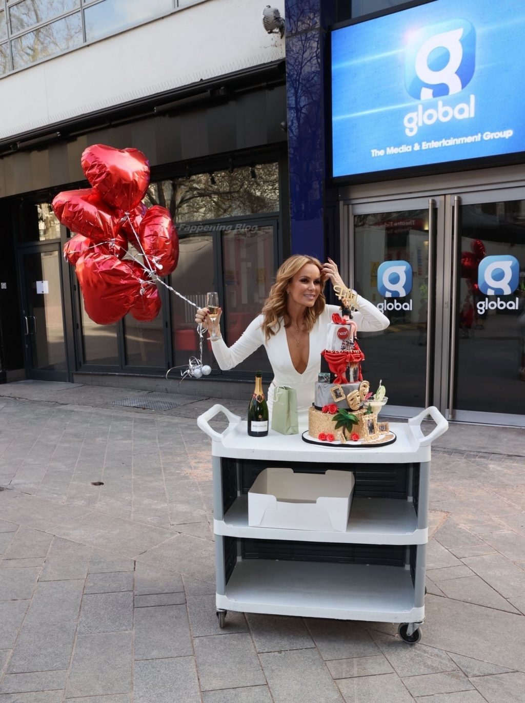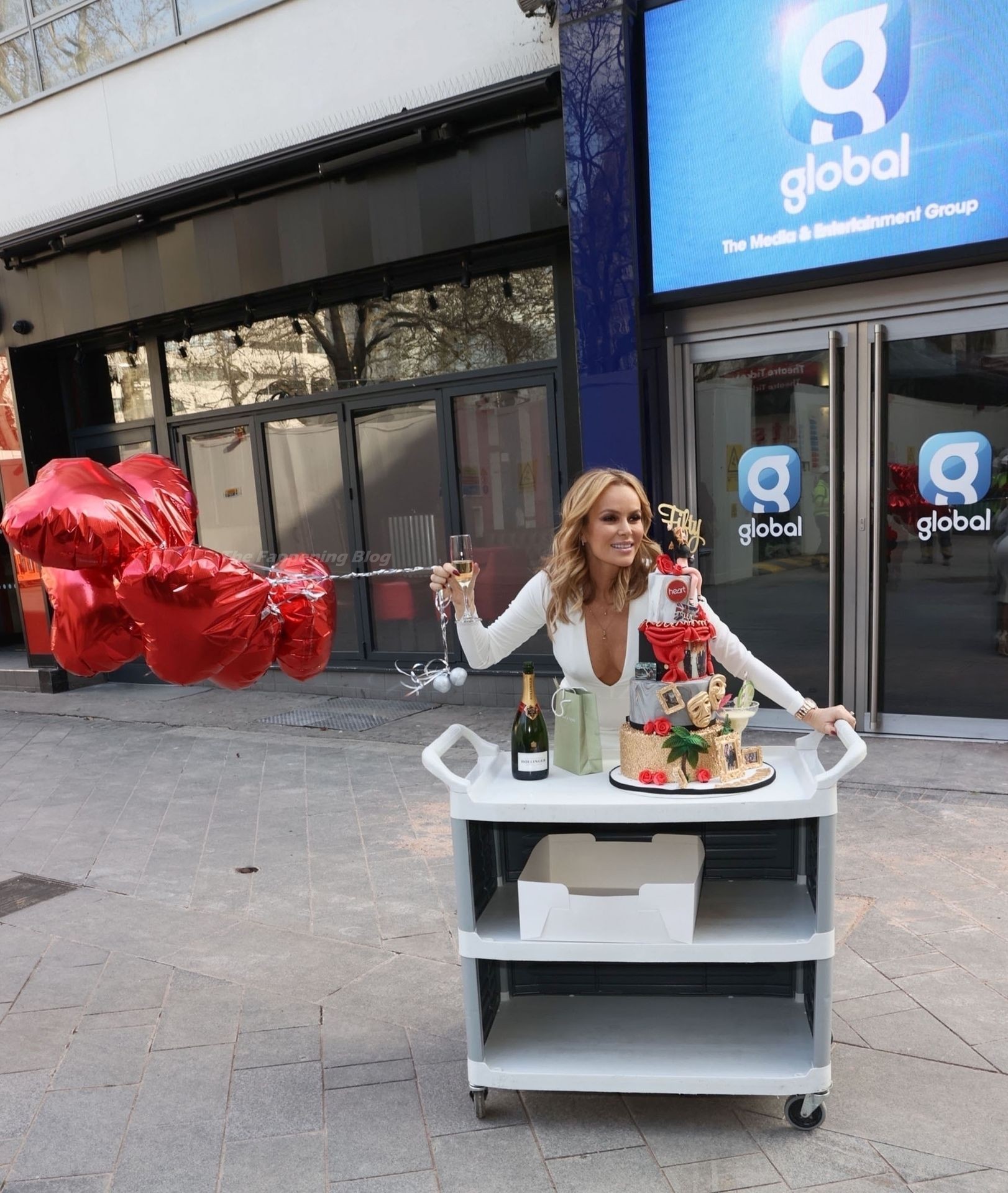 La actriz y presentadora de radio Amanda Holden es vista celebrando su 50º cumpleaños fuera de los Estudios Global Radio en Londres, 02/12/2021.