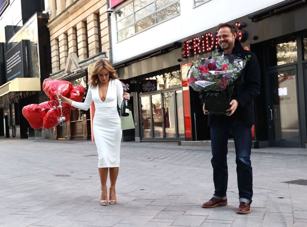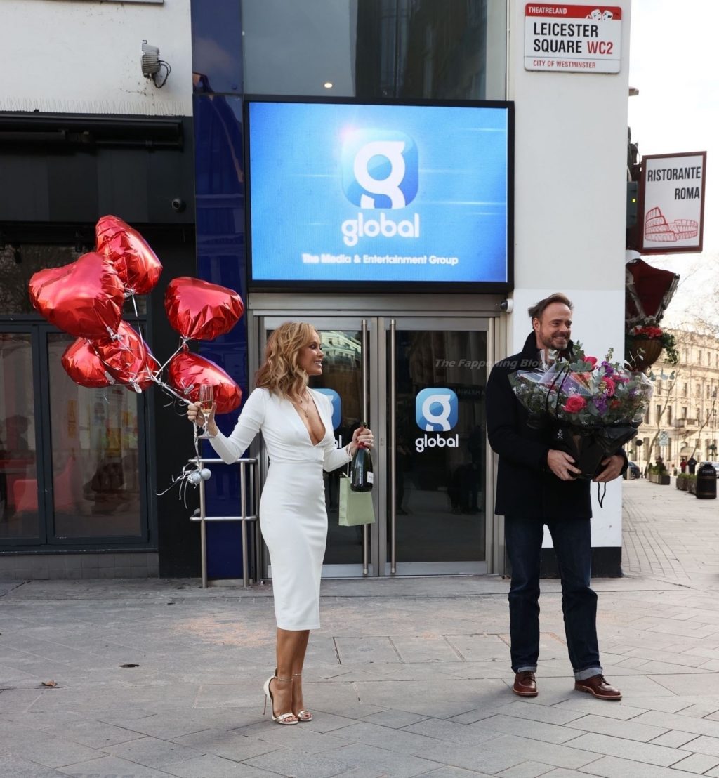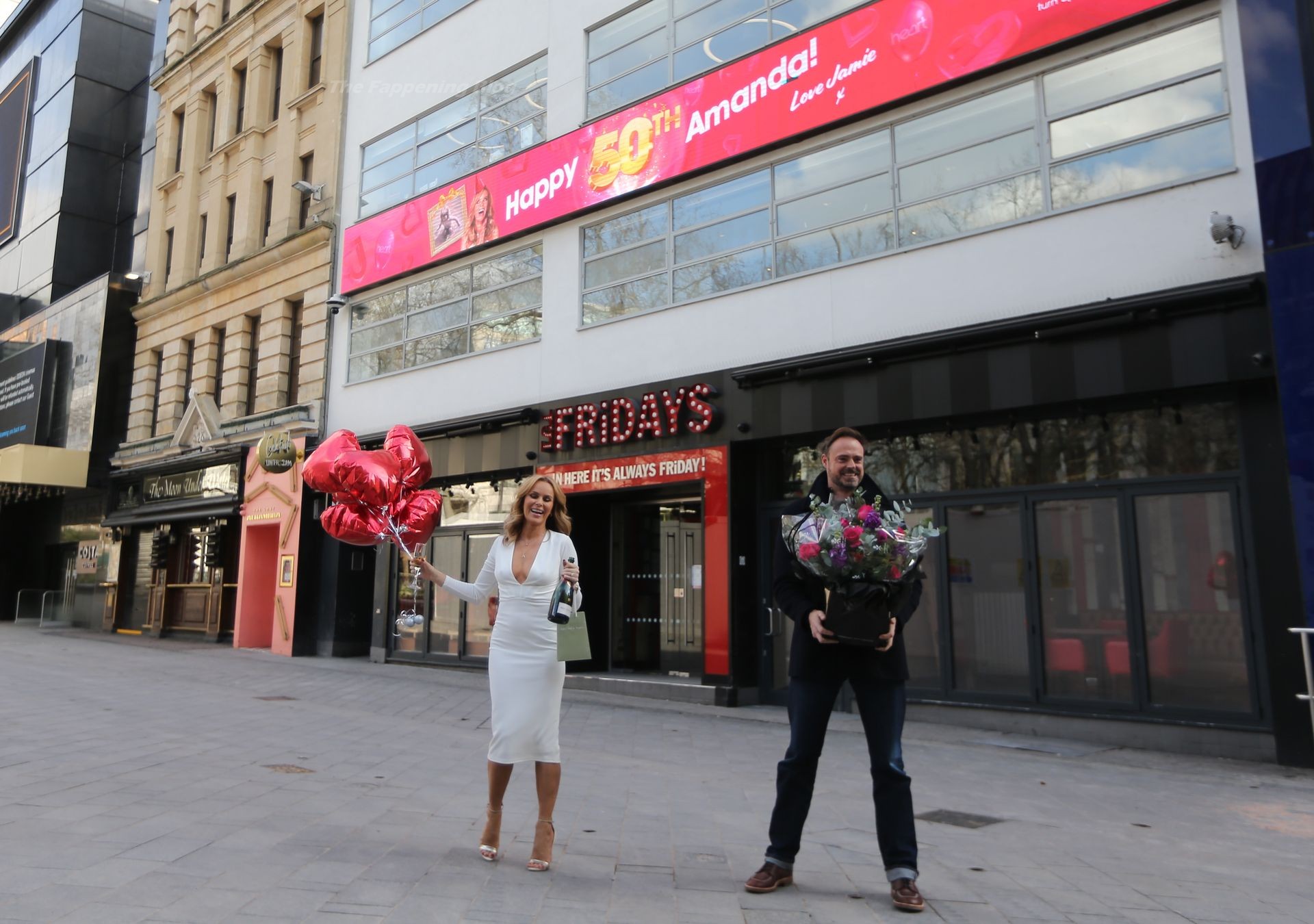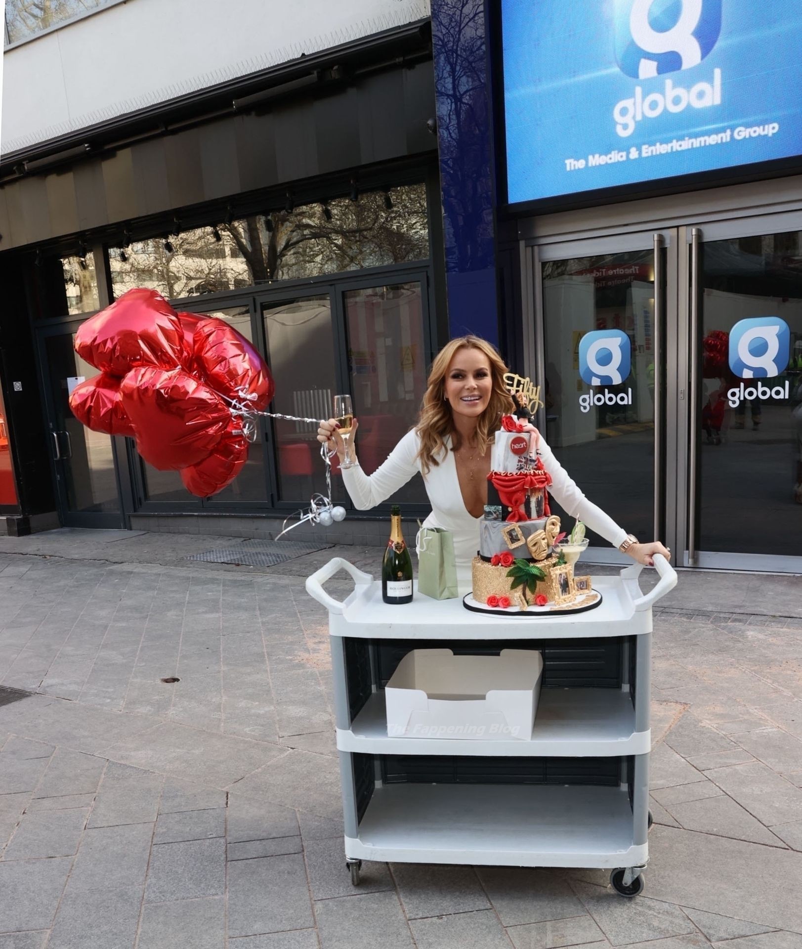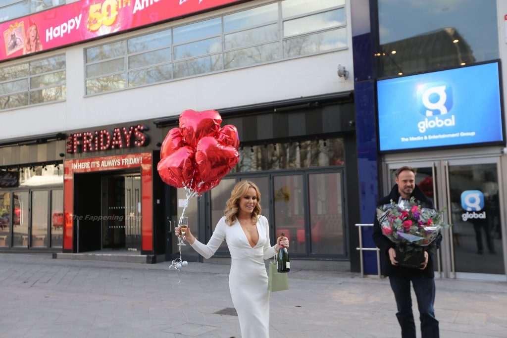 La actriz y presentadora de radio Amanda Holden es vista celebrando su 50º cumpleaños fuera de los Estudios Global Radio en Londres, 02/12/2021.
