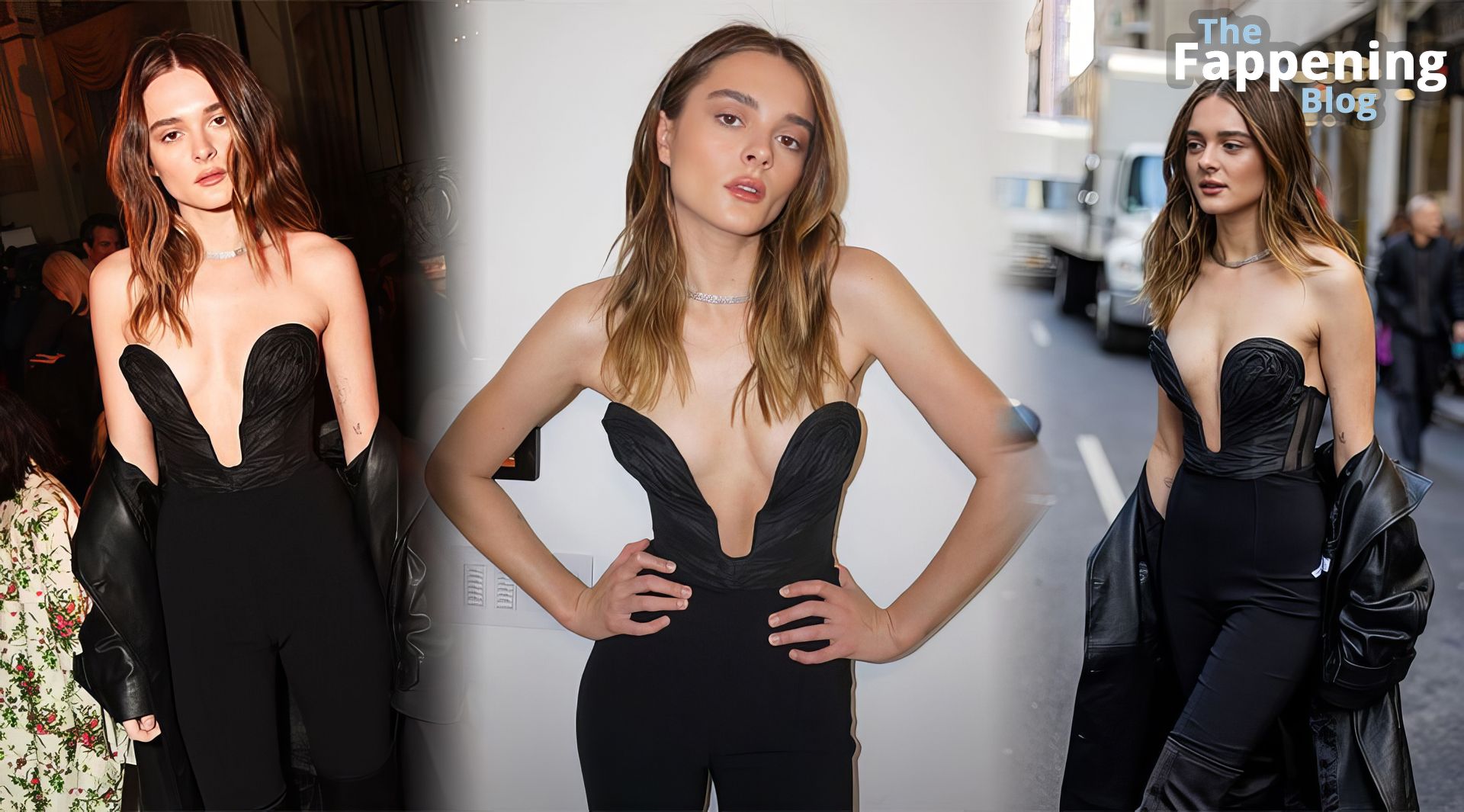 En el desfile de moda de Carolina Herrera en Nueva York, Charlotte Lawrence atrae todas las miradas con un audaz vestido negro que revela su escote y su sexy pecho.