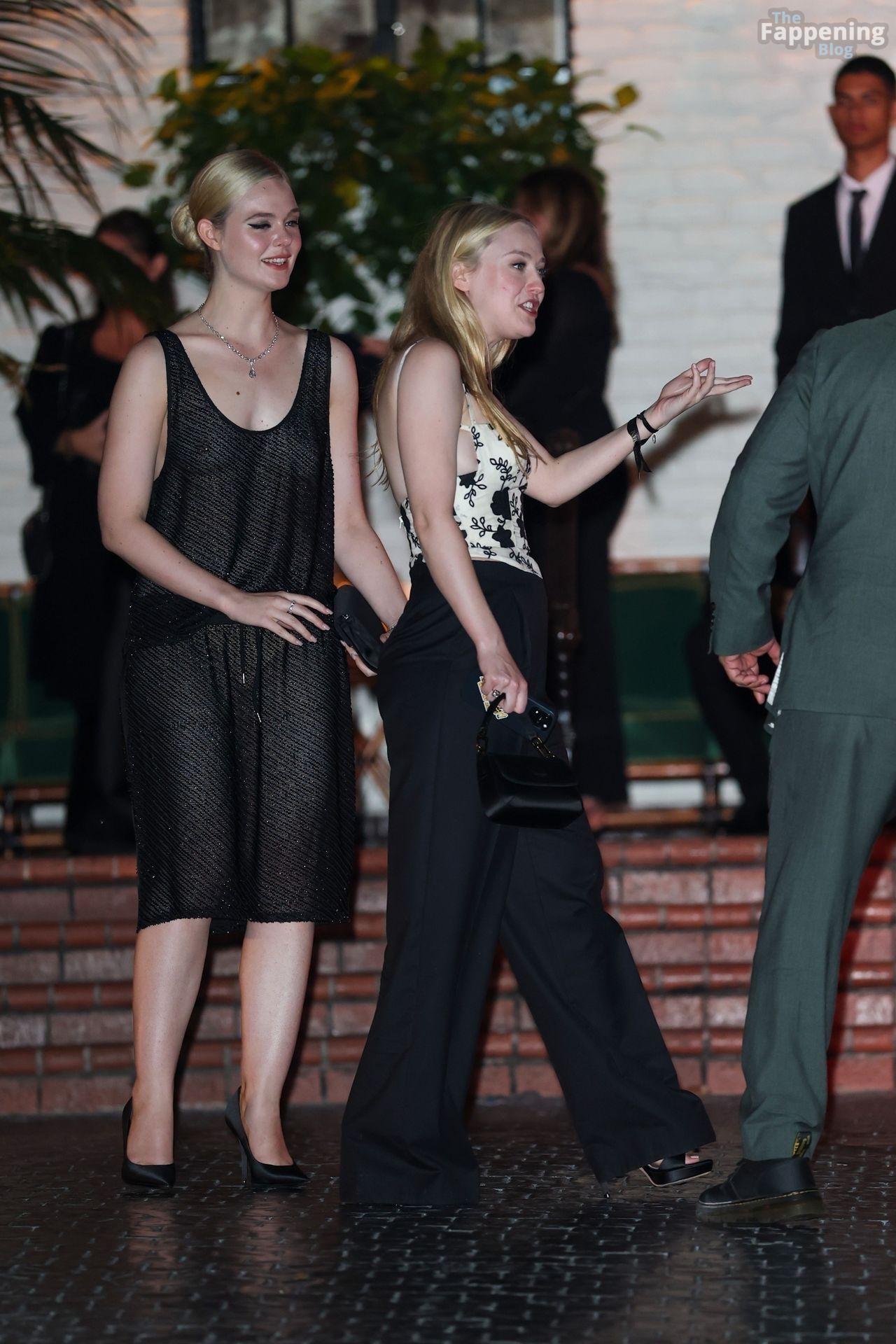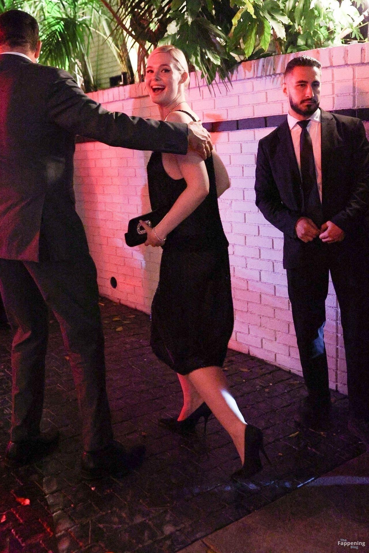 Elle Fanning apareció en la fiesta posterior de Armani en Chateau Marmont en LA después de la Gala del Museo de la Academia. Llevaba un vestido de malla negra transparente que dejaba ver sus pechos desnudos, junto con sus piernas y cuerpo sexys.