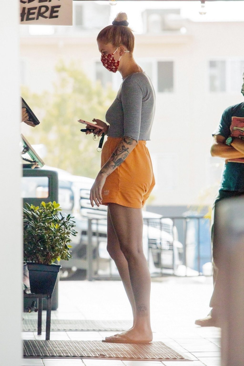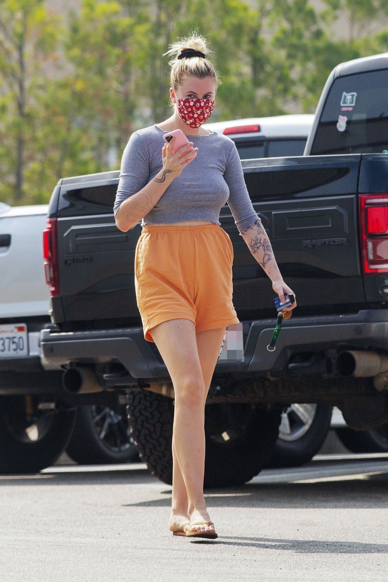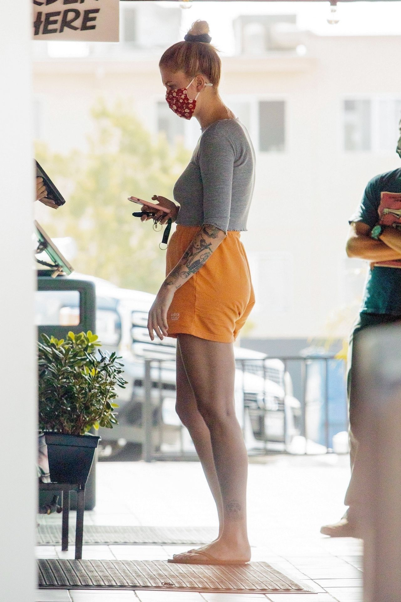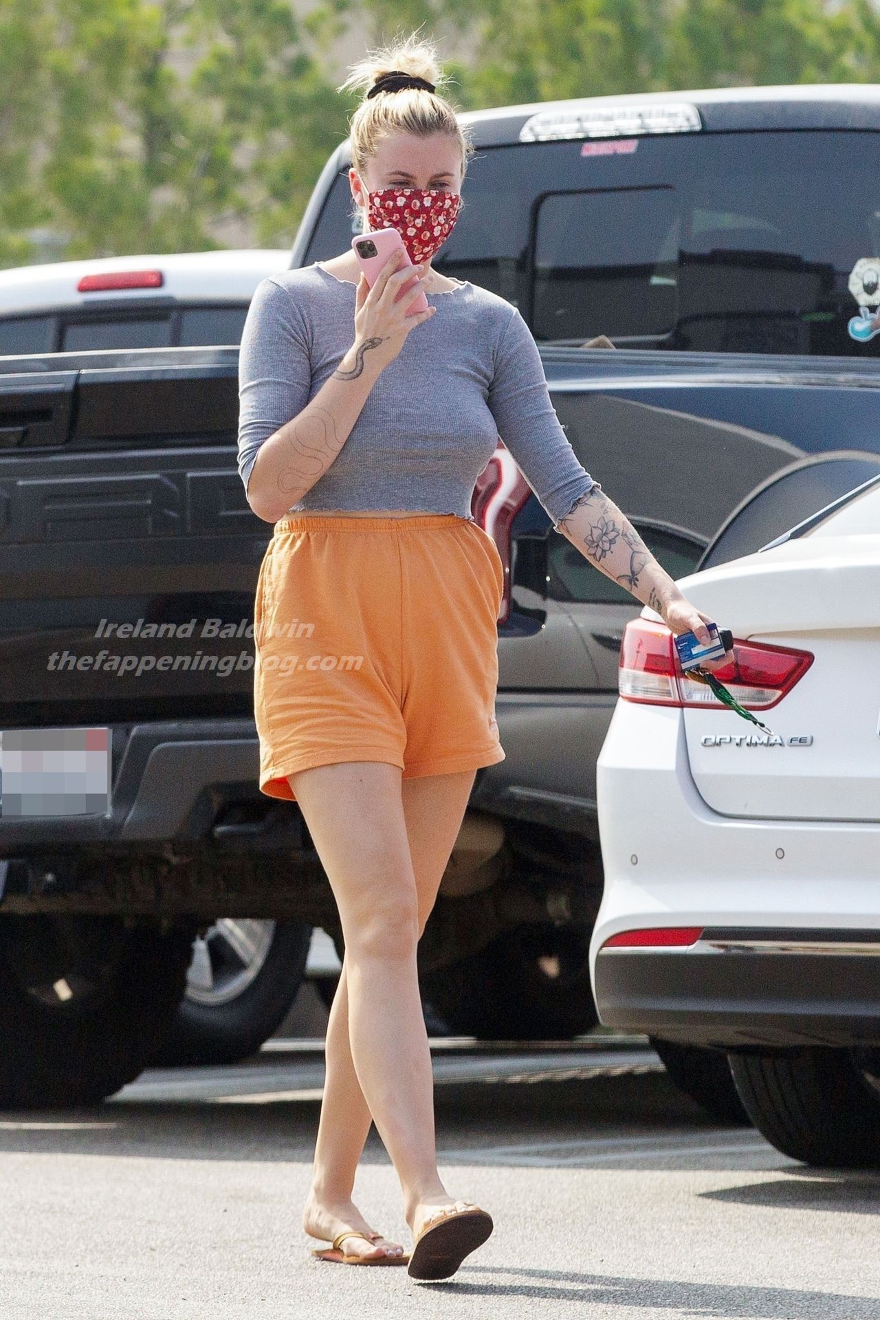 La modelo Ireland Baldwin toma su bebida de café helado mientras se detiene a comer comida mexicana en el restaurante Que Ricos Tacos en Los Ángeles sin usar sujetador, 21/10/2020.