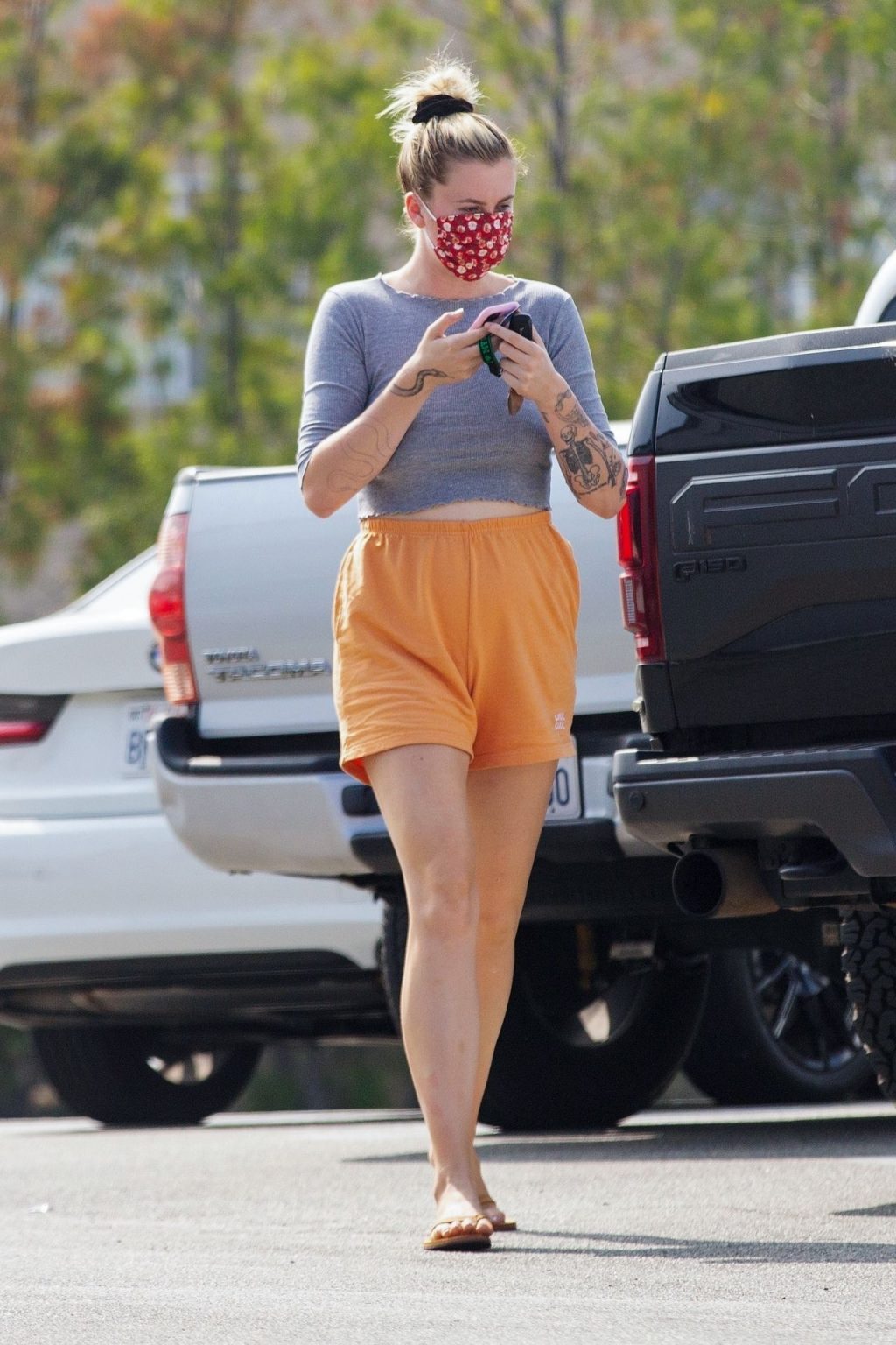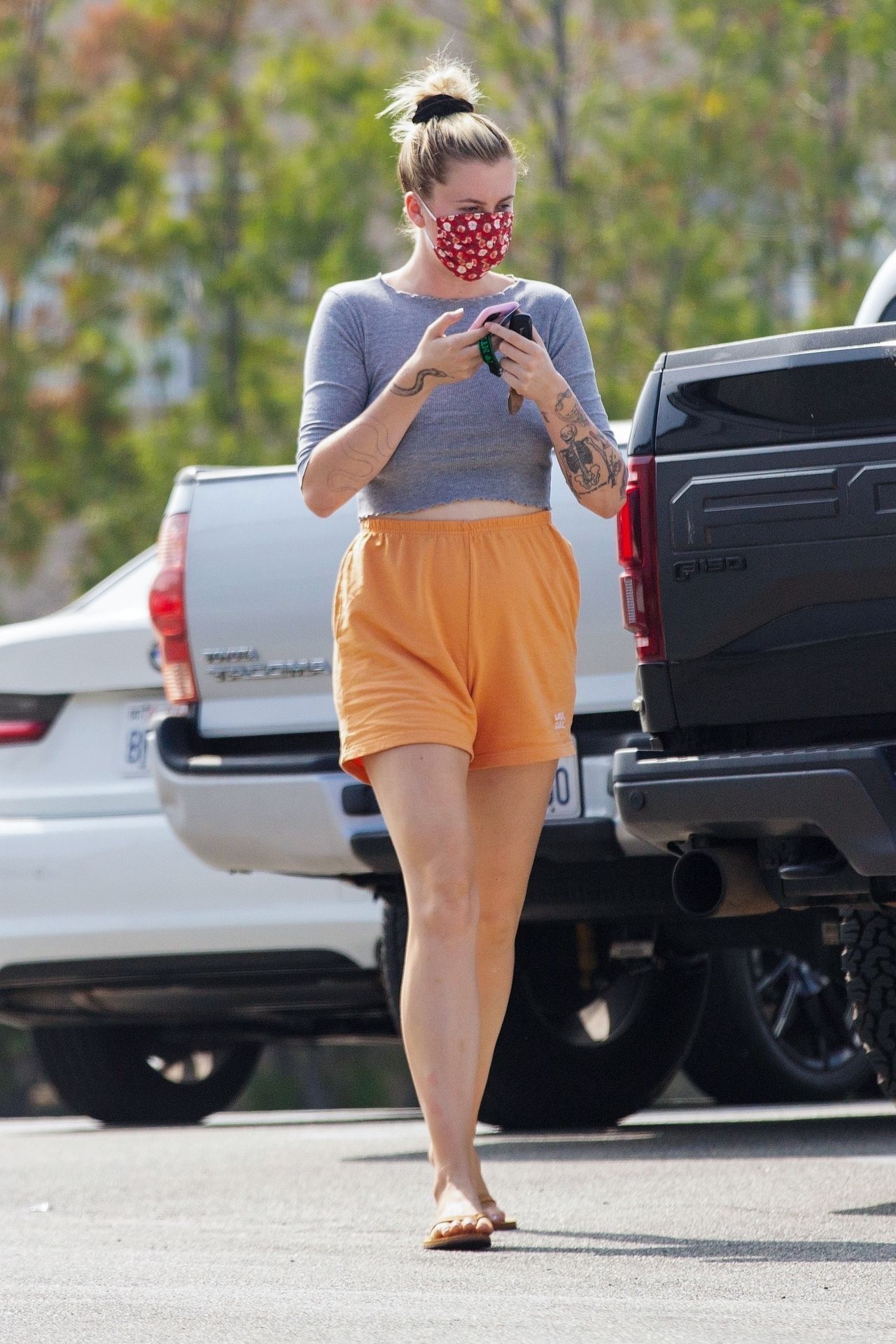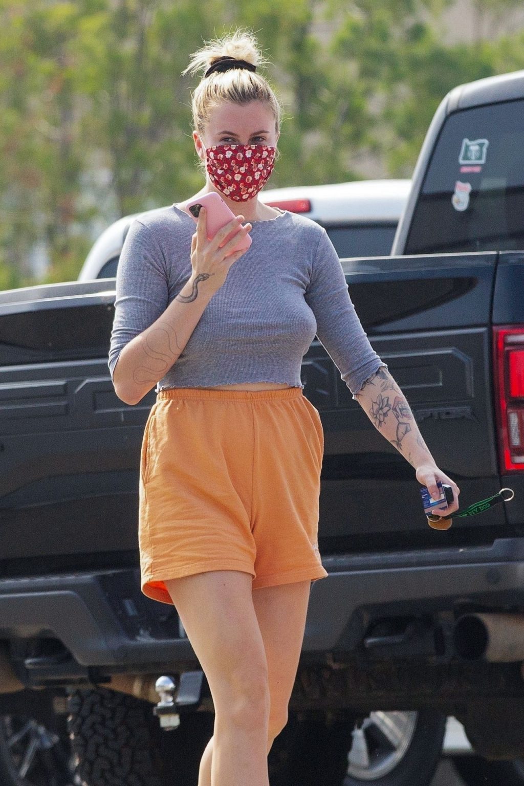 La modelo Ireland Baldwin toma su bebida de café helado mientras se detiene a comer comida mexicana en el restaurante Que Ricos Tacos en Los Ángeles sin usar sujetador, 21/10/2020.