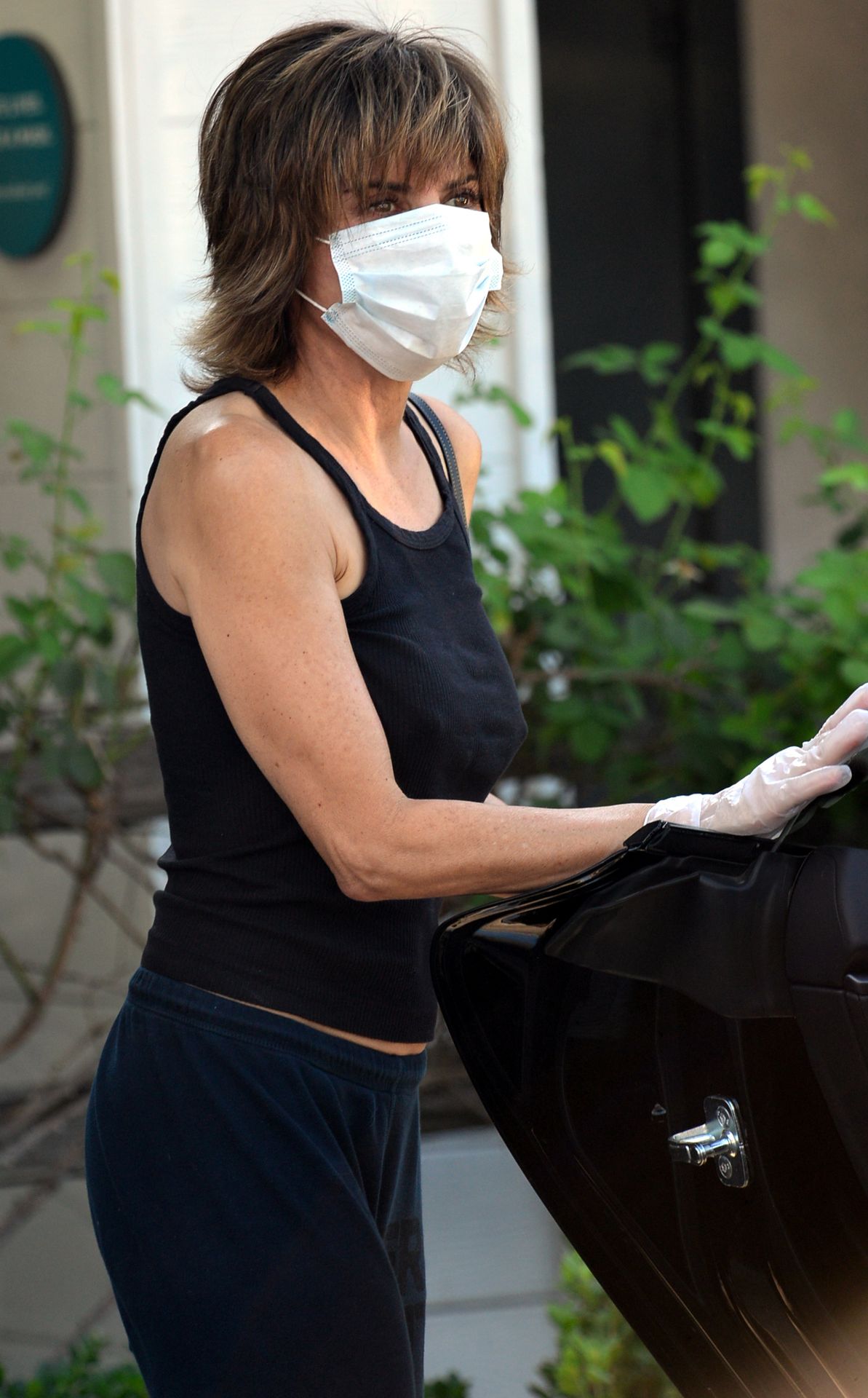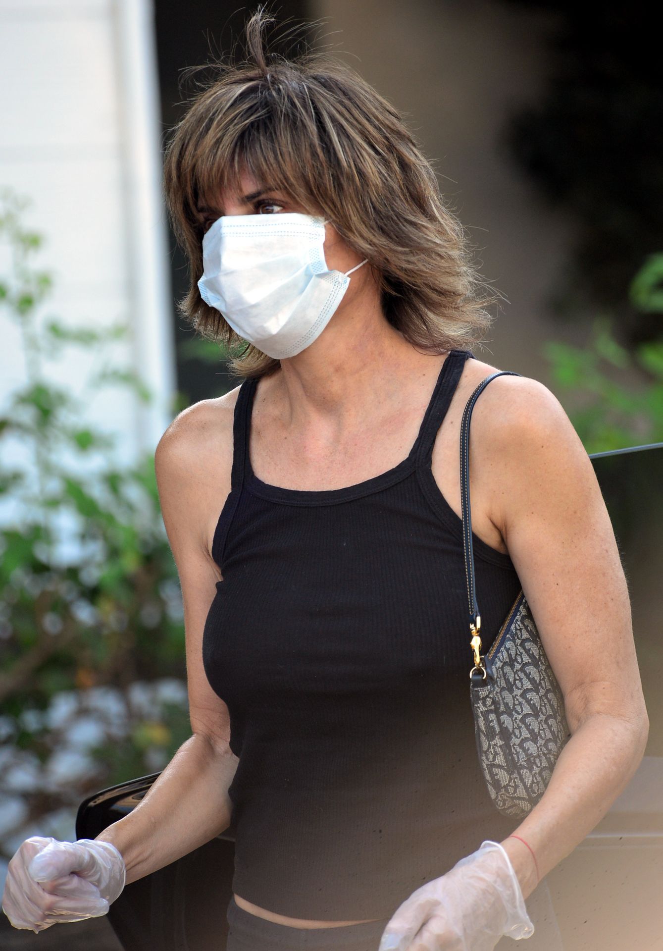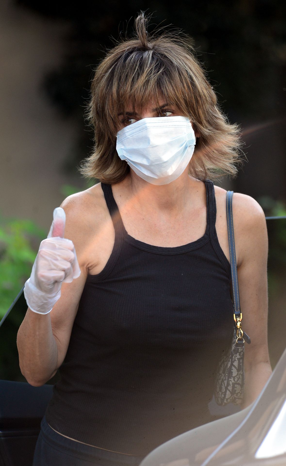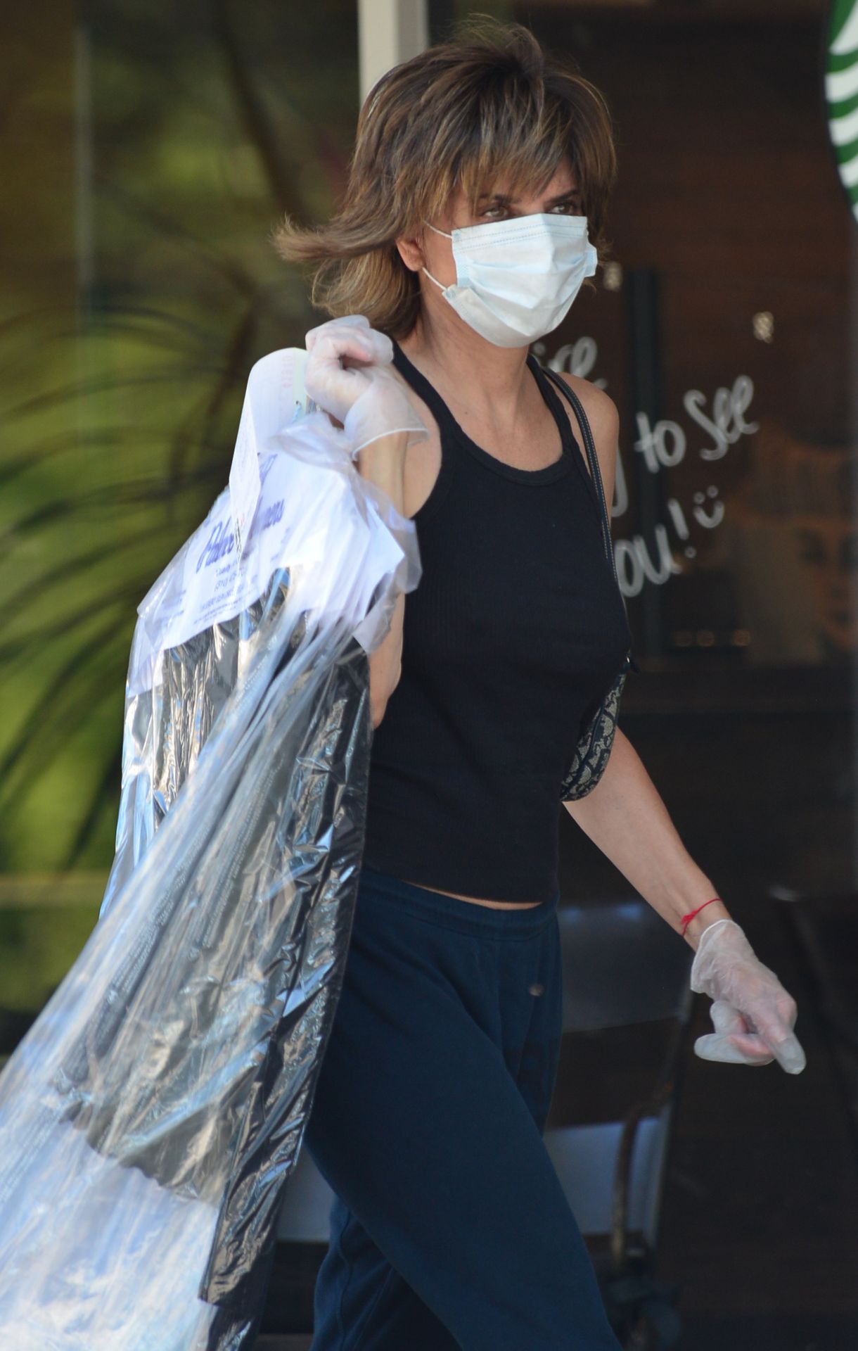 El cabello de Lisa Rinna parece estar teniendo un momento de “Algo pasa con Mary” mientras recoge su ropa en la tintorería del Beverly Glen Shopping Center en Beverly Hills, 02/10/2020.