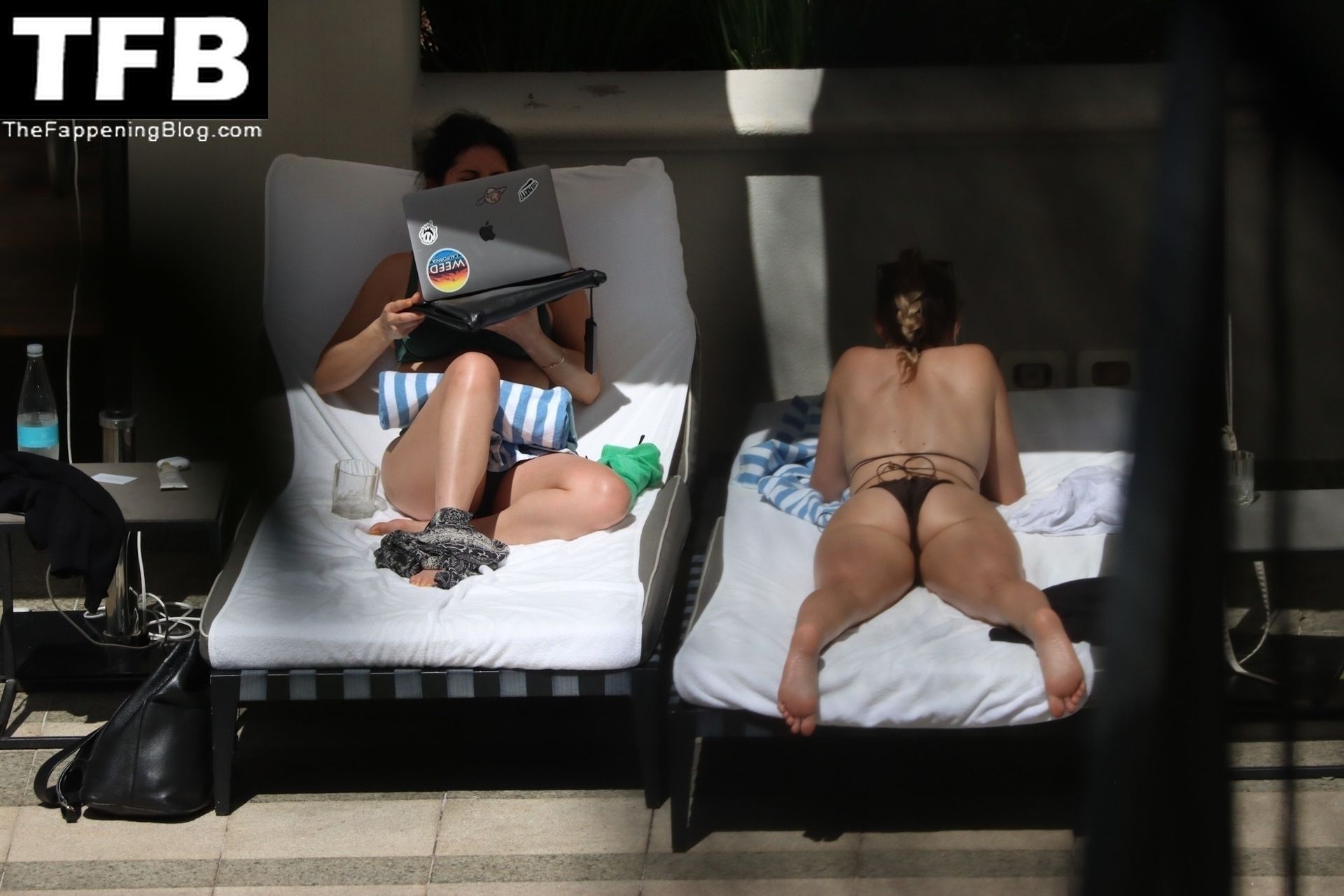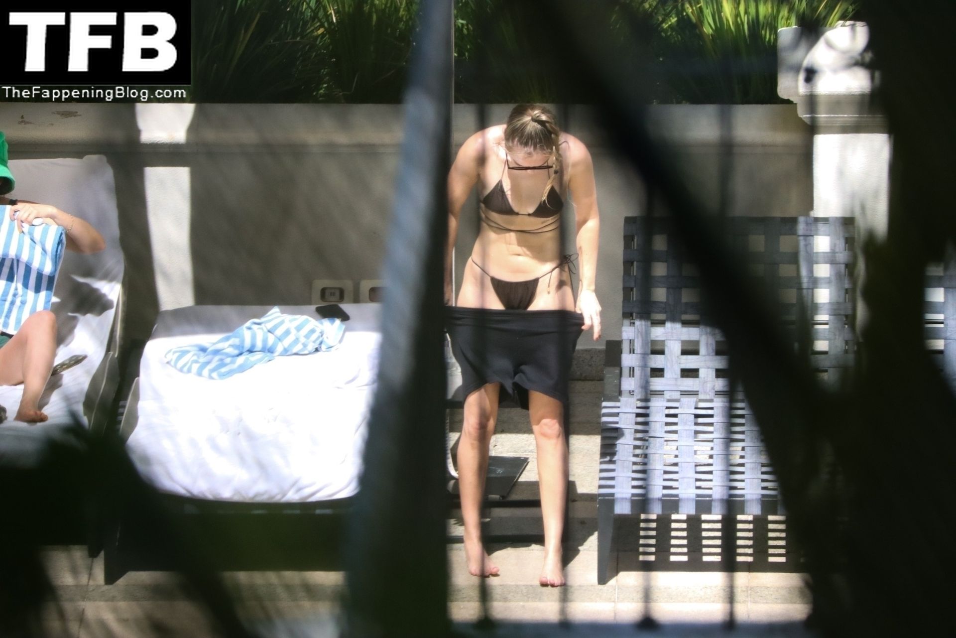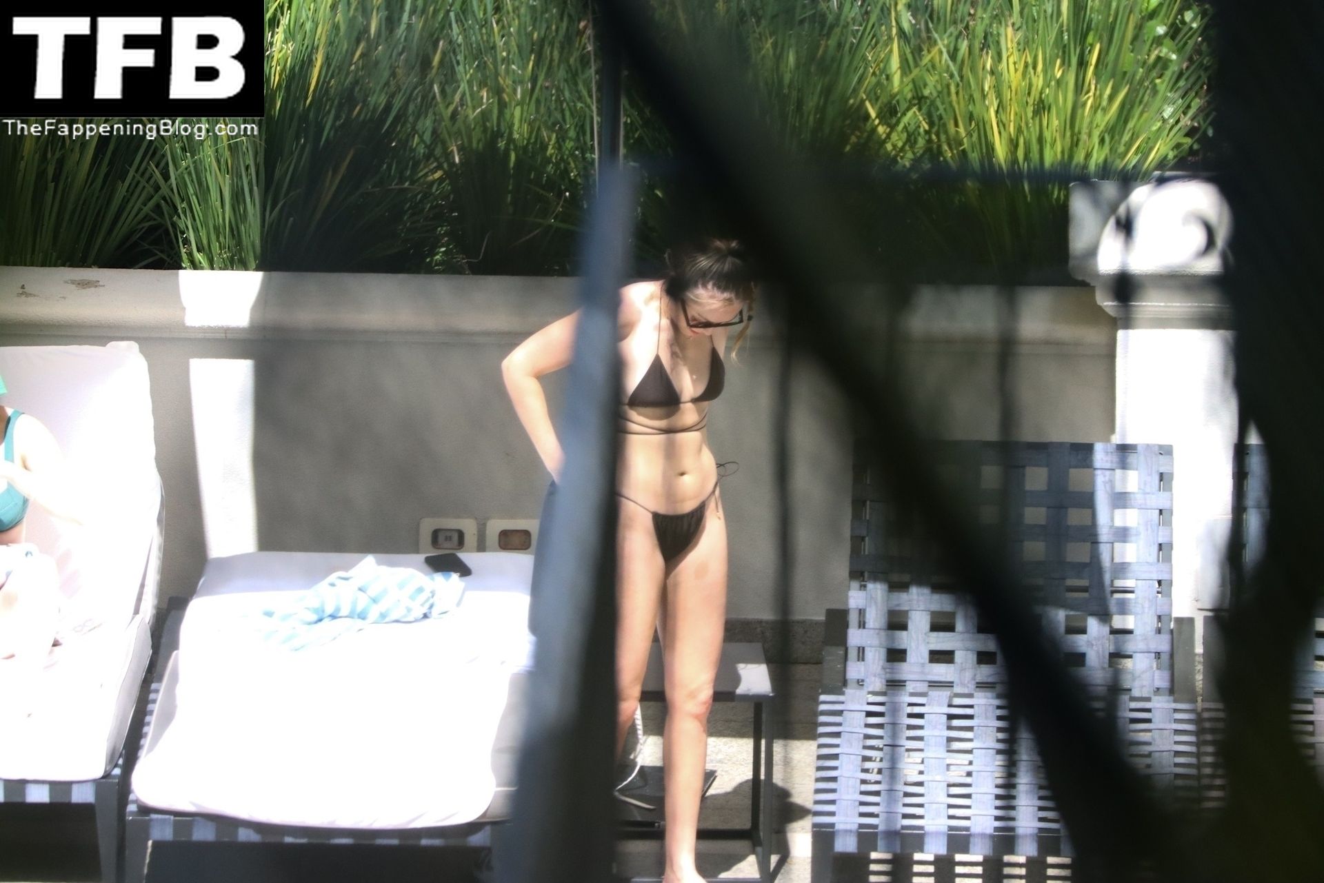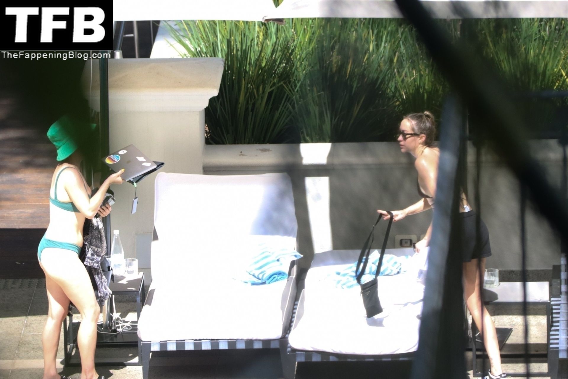 La hermana de Miley Cyrus, Brandi Cyrus, se relaja junto a la piscina de su hotel antes de su presentación en Lollapalooza en Sao Paulo, 25/03/2022.