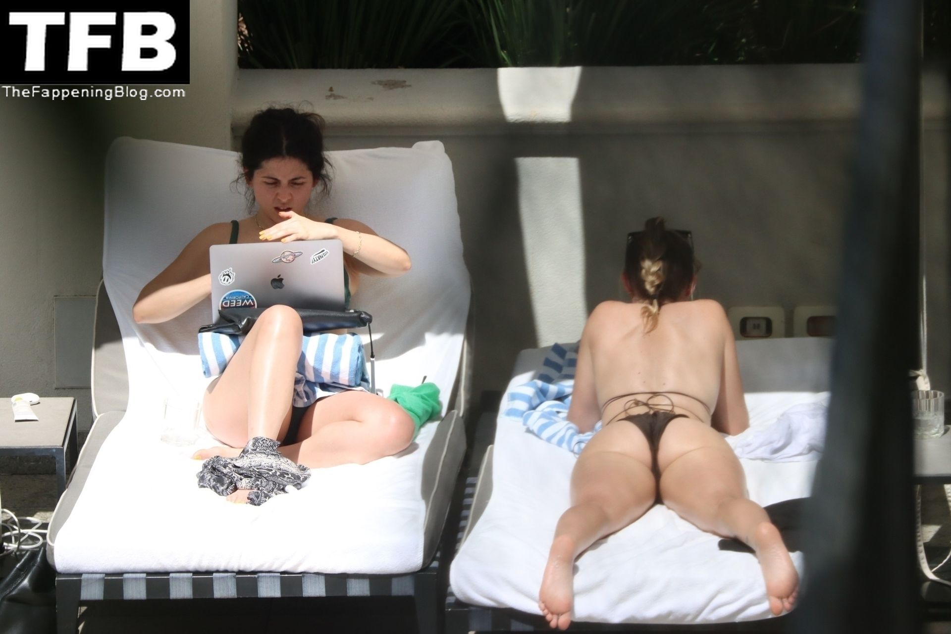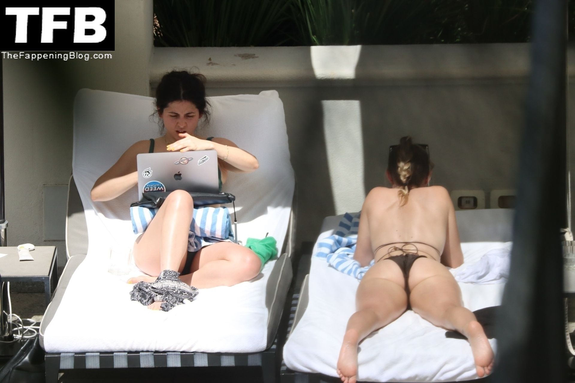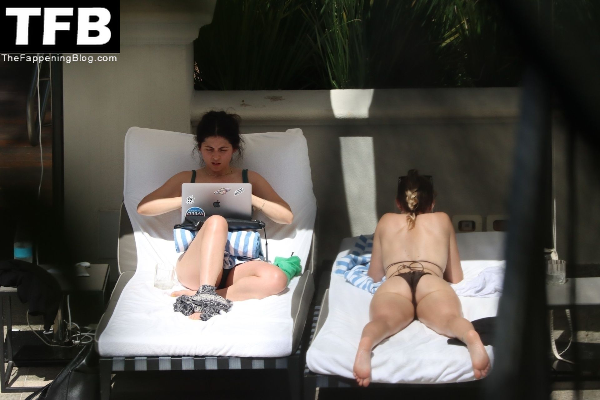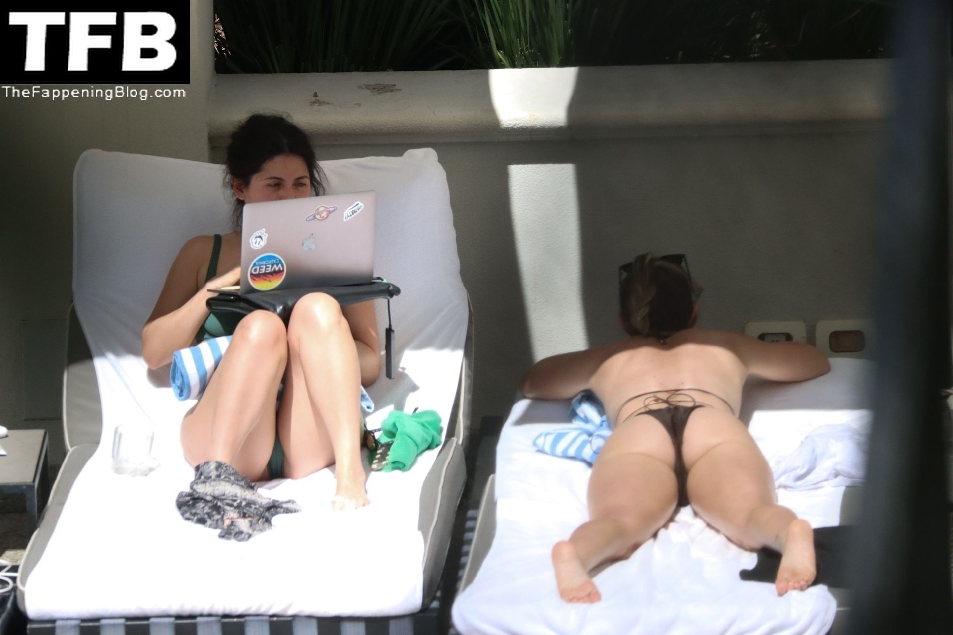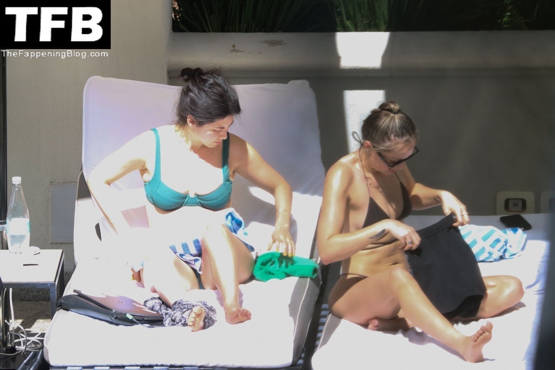 La hermana de Miley Cyrus, Brandi Cyrus, se relaja junto a la piscina de su hotel antes de su presentación en Lollapalooza en Sao Paulo, 25/03/2022.