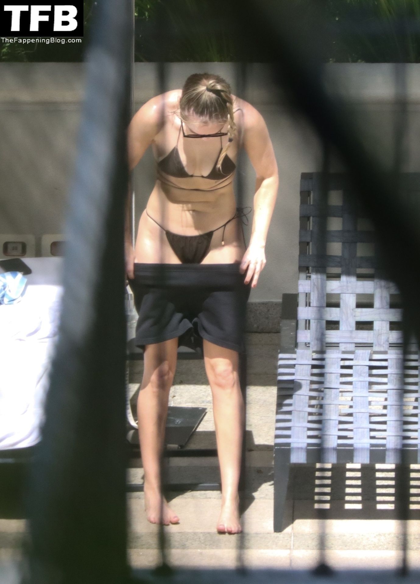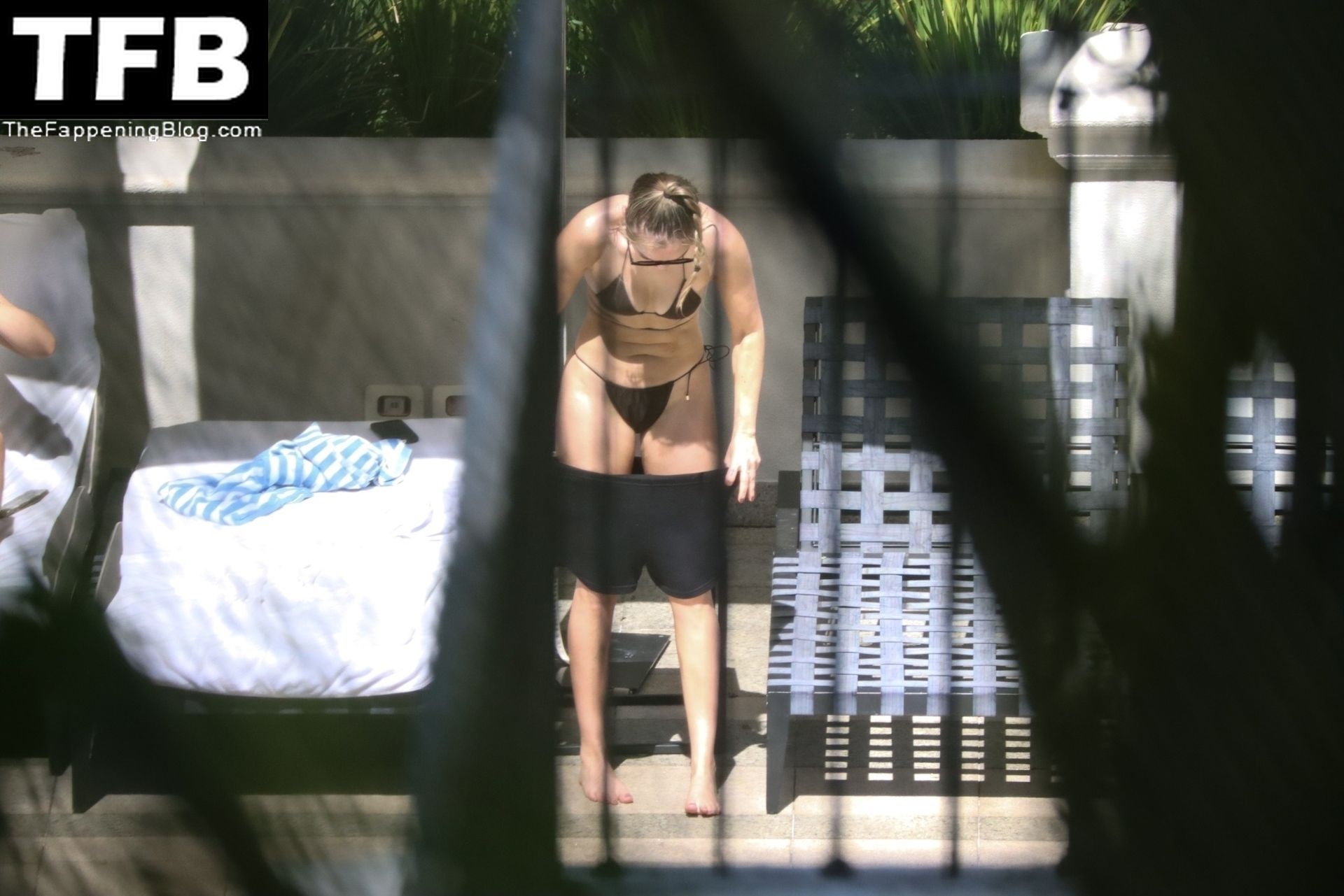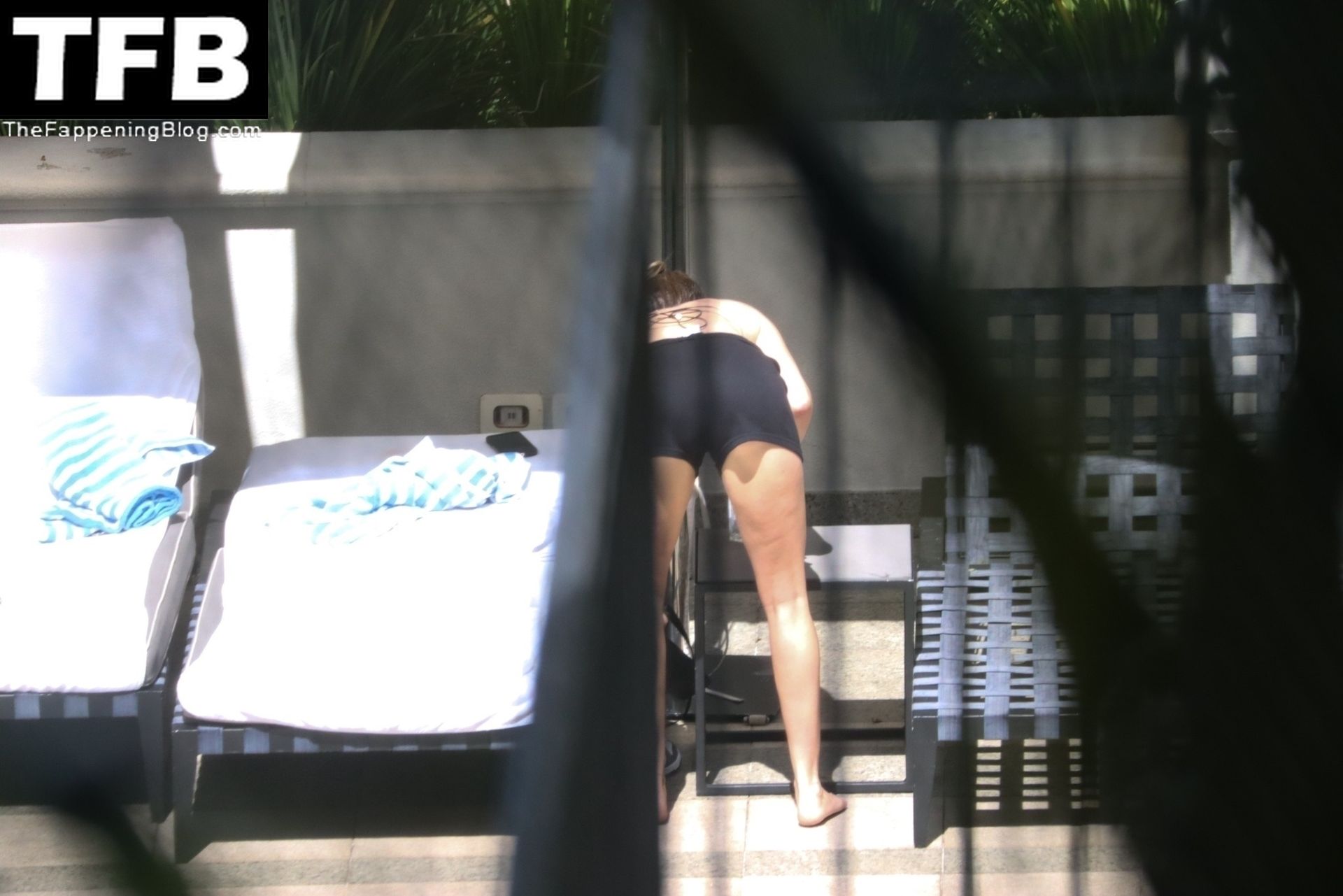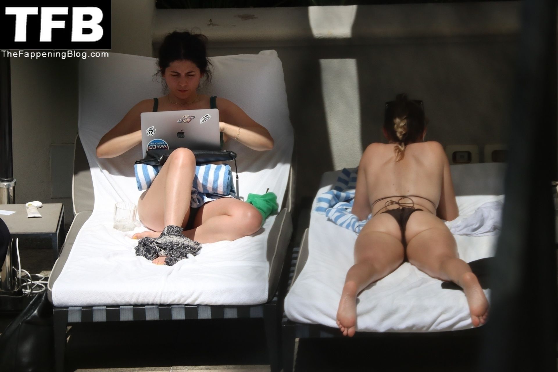 La hermana de Miley Cyrus, Brandi Cyrus, se relaja junto a la piscina de su hotel antes de su presentación en Lollapalooza en Sao Paulo, 25/03/2022.