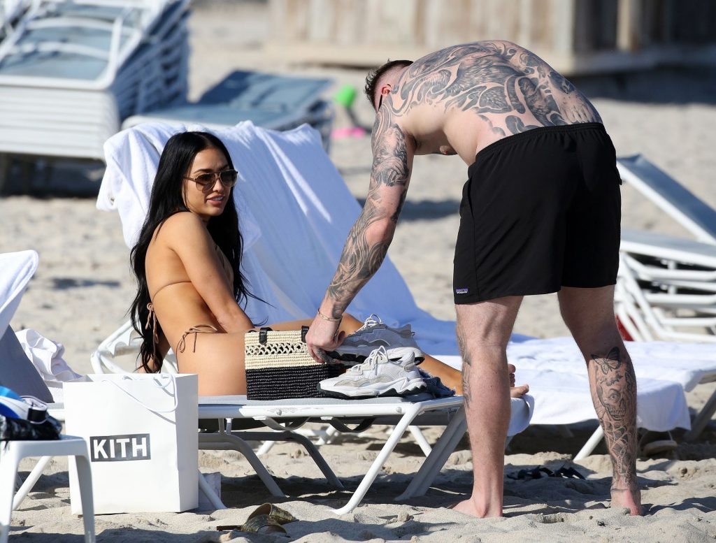 Exesposa de Johnny Manziel, la modelo Bre Tiesi fue vista en bikini con un hombre misterioso tatuado en una playa de Miami, 30/01/2020. ¡Alguien probó ese delicioso trasero!