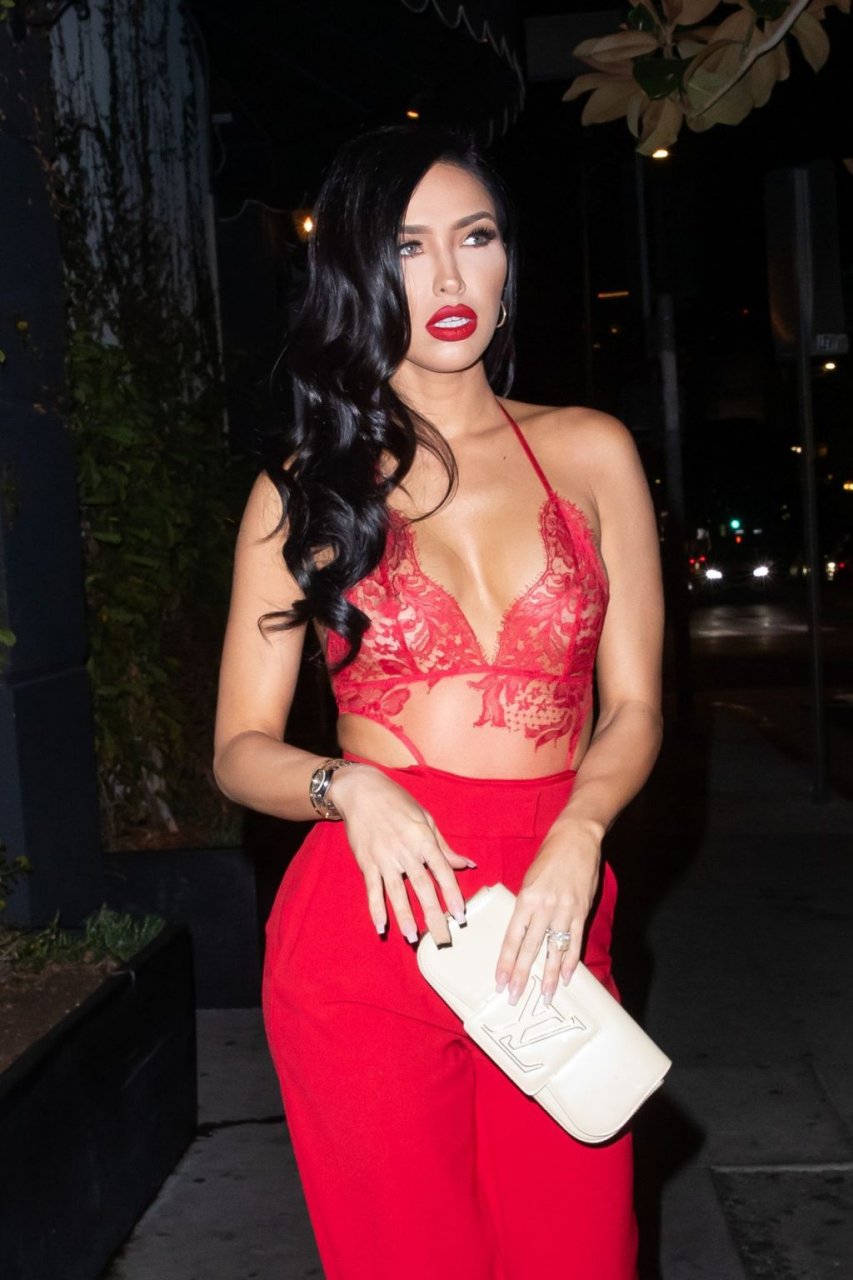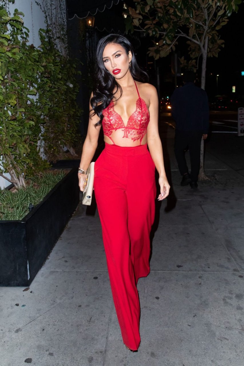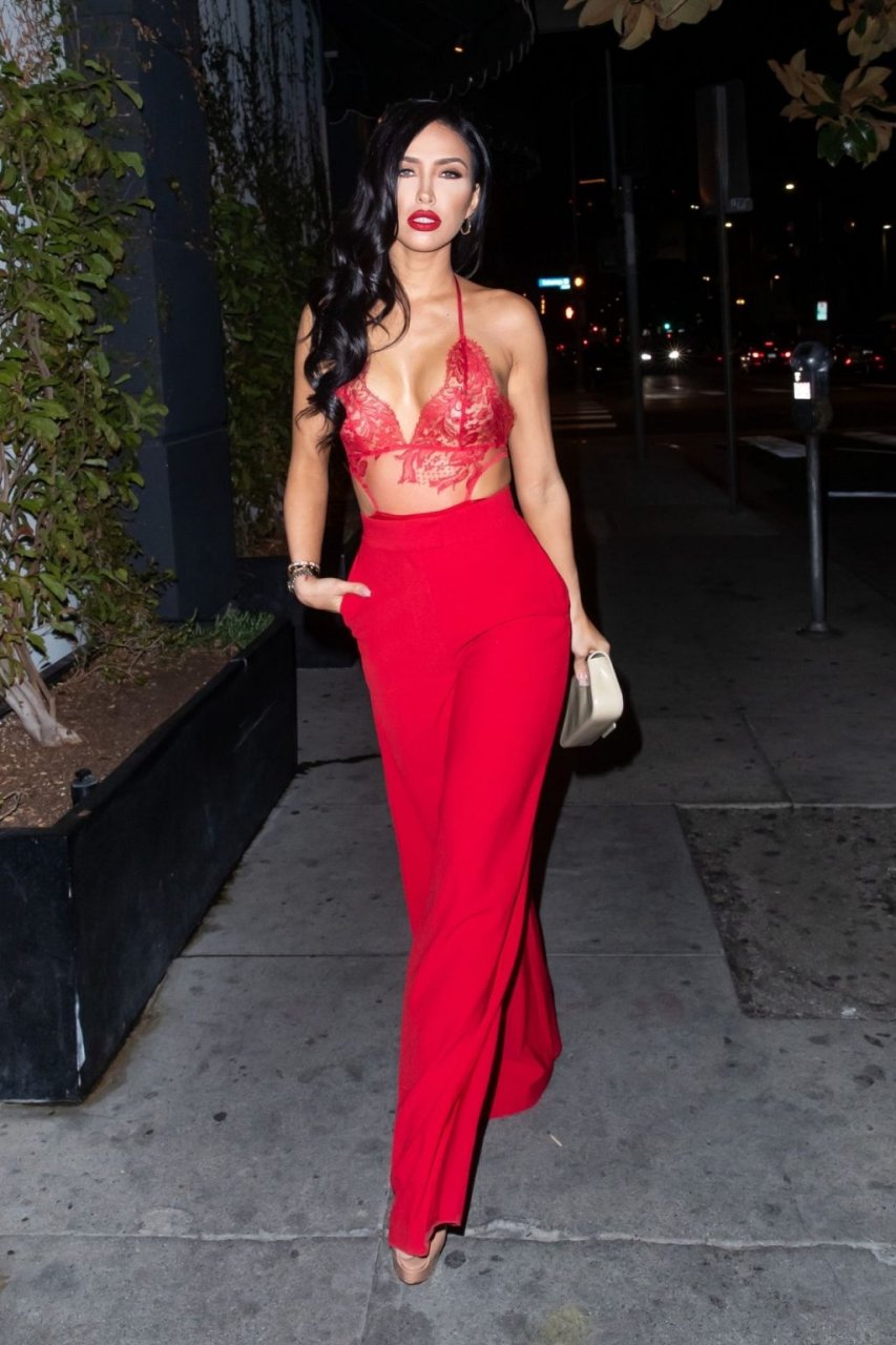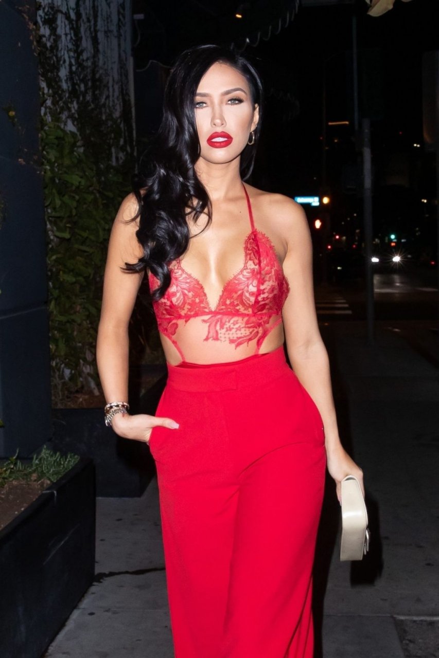 Bre Tiesi-Manziel fue vista saliendo de su evento Se Mouiller Lingerie en Avenue en Hollywood, California, 12/02/2019. La modelo y estrella de las redes sociales de 27 años mostró su figura fantástica con un top de encaje rojo en forma de triángulo y pantalones rojos.