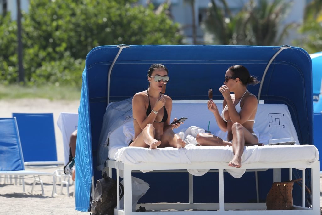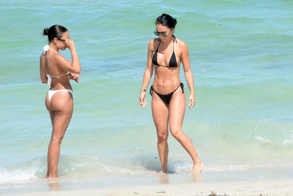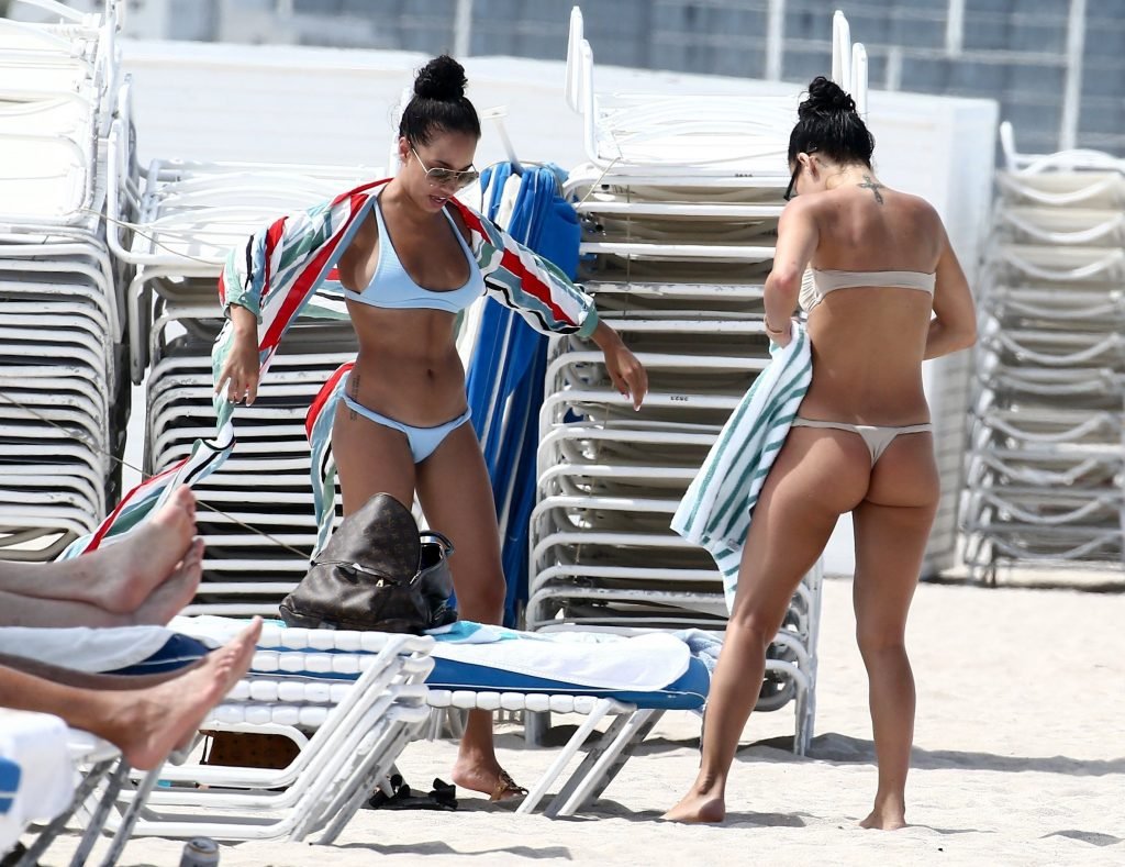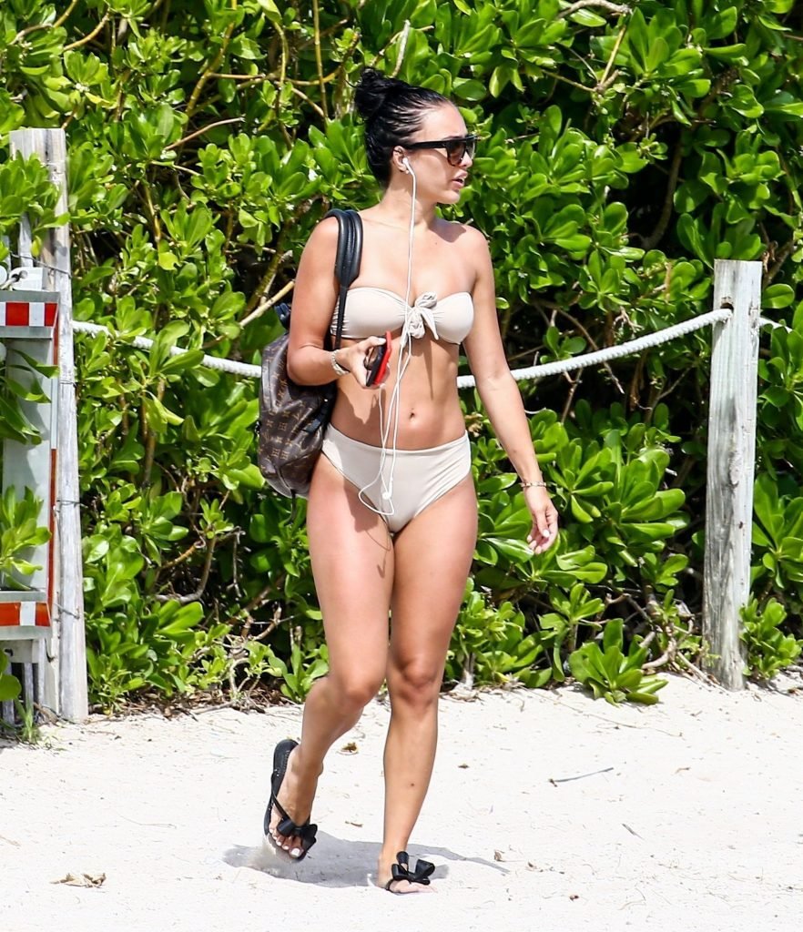 Bre Tiesi, quien está comprometida con la estrella de la NFL Johnny Manziel, plagada de escándalos, mostró su cuerpo en bikini en la playa de Miami, 15/06/2017. Bre Tiesi es una modelo estadounidense. Edad: 26.