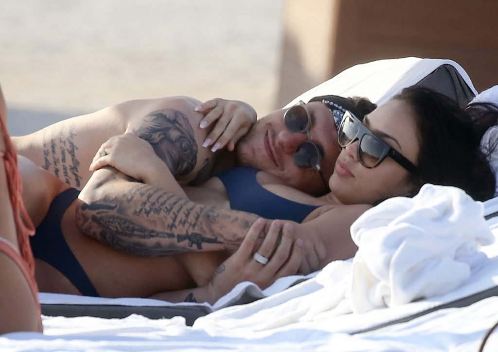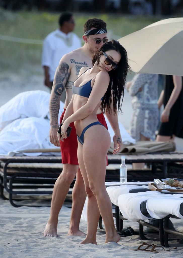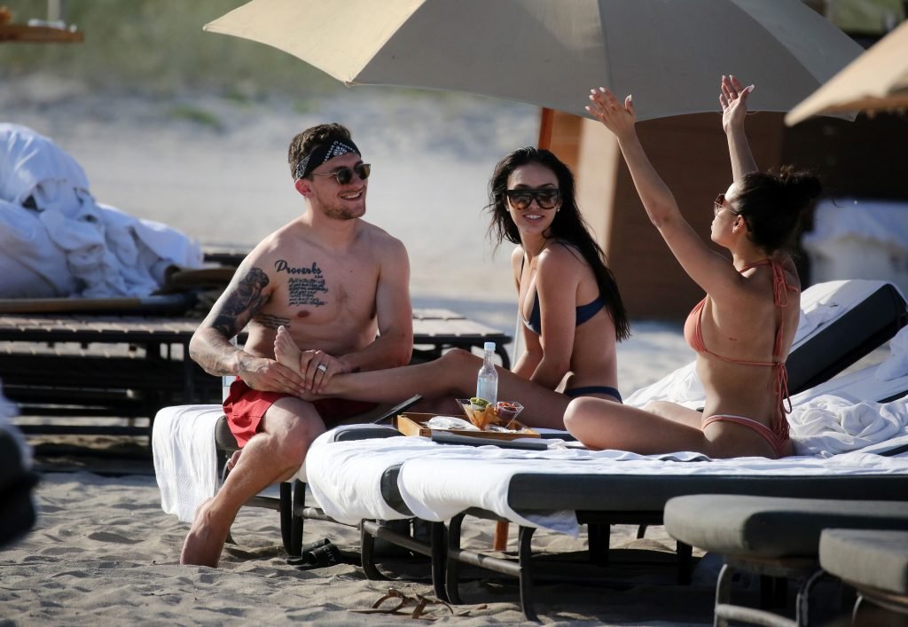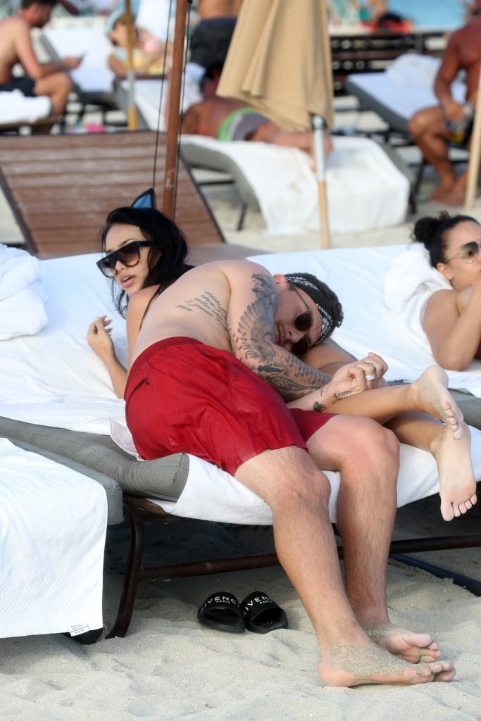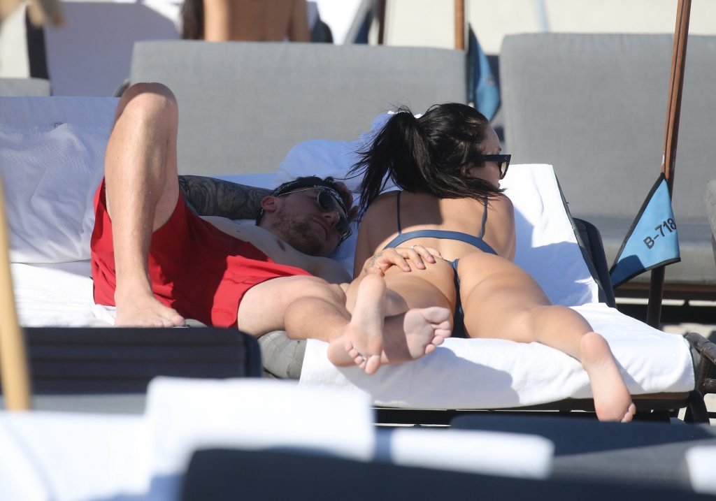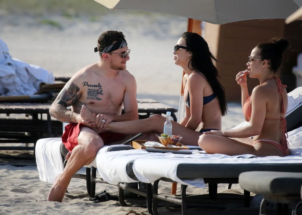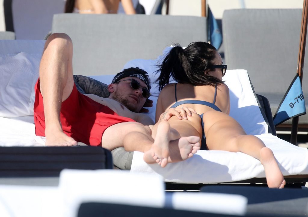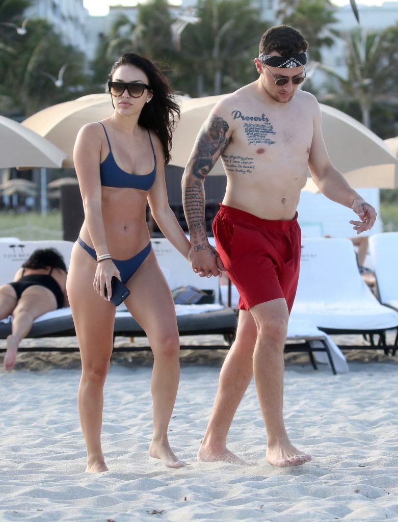 Johnny Manziel y su prometida modelo Bre Tiesi, en bikini, muestran sus cuerpos en la playa y mucho PDA en Miami, 01/03/2018.
